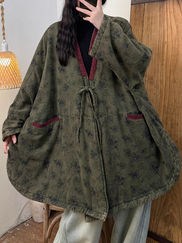 Ženski vintage zimski cvjetni kaput s V-izrezom