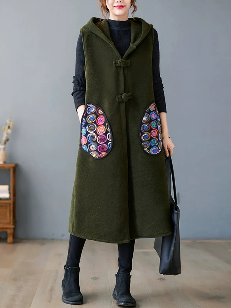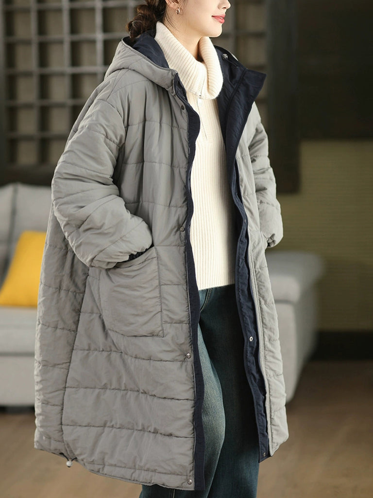 Ženski zimski kaput s kapuljačom u čistoj boji, s dvostrukim nošenjem