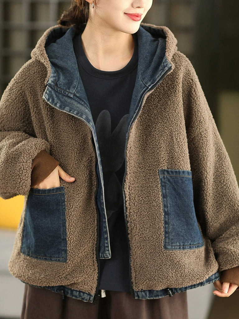 Ženski zimski kaput od flisa s kapuljačom, dvostrano nošenje