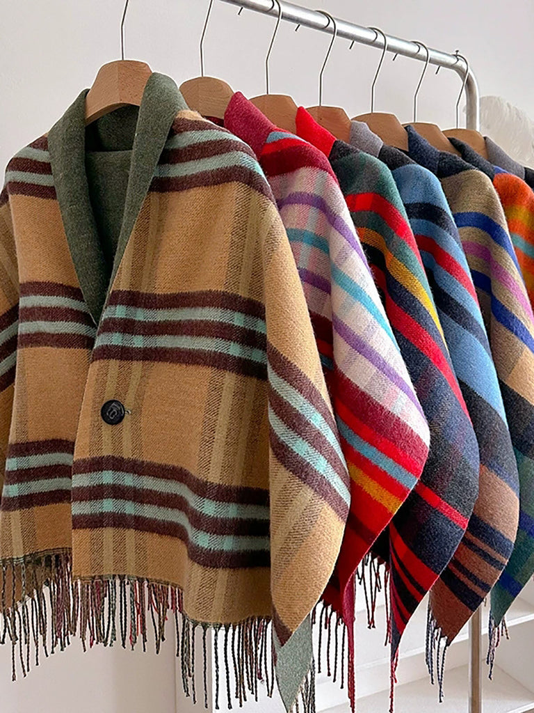 Zimski šal s kariranim prugama i resicama