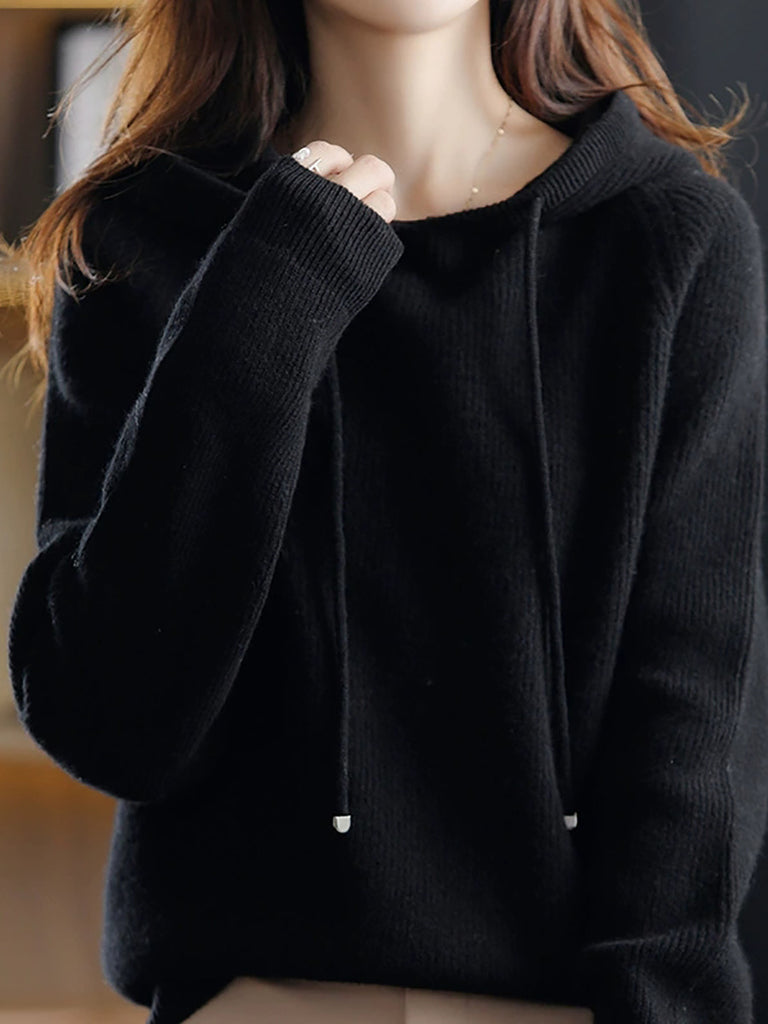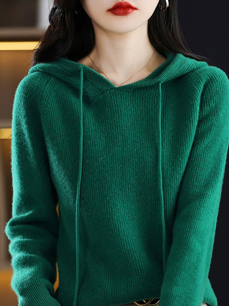 Ženski jesenski ležerni pulover s kapuljačom u čistim bojama