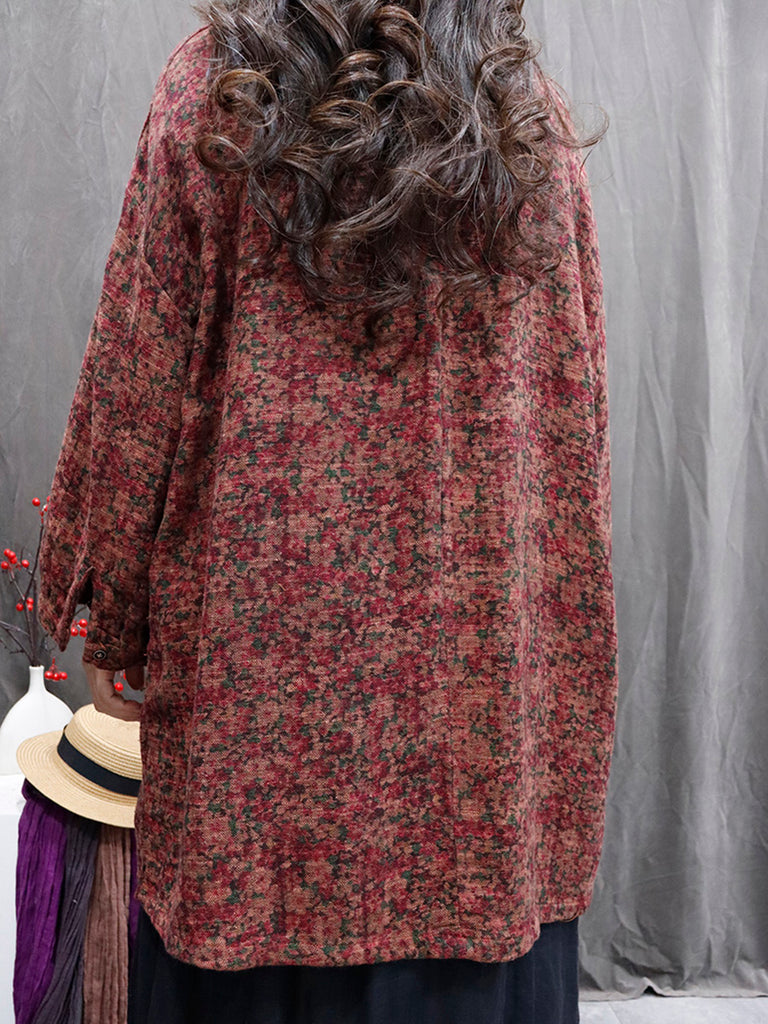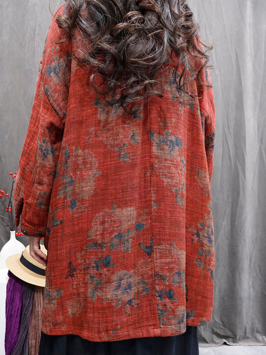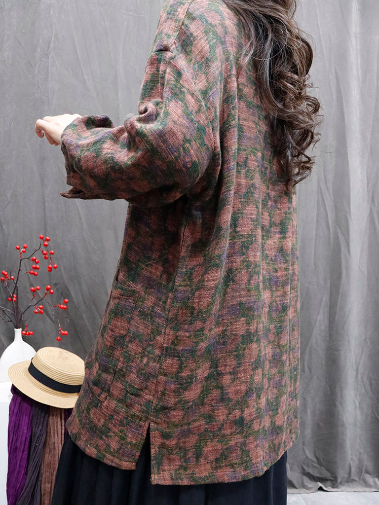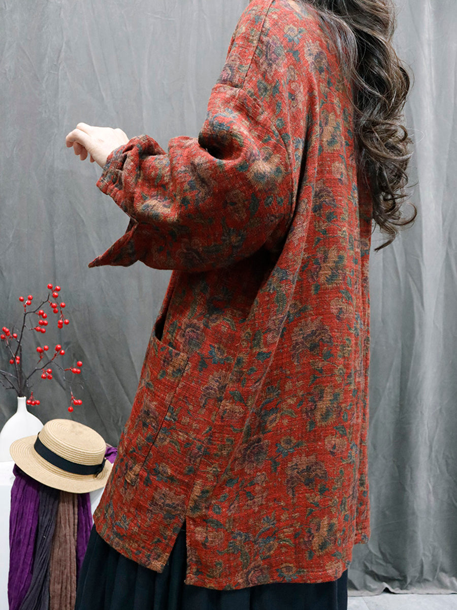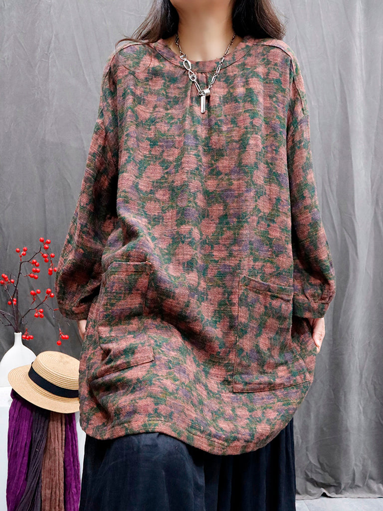 Ženska vintage jesenska cvjetna O-izrez bluza od 100% lana