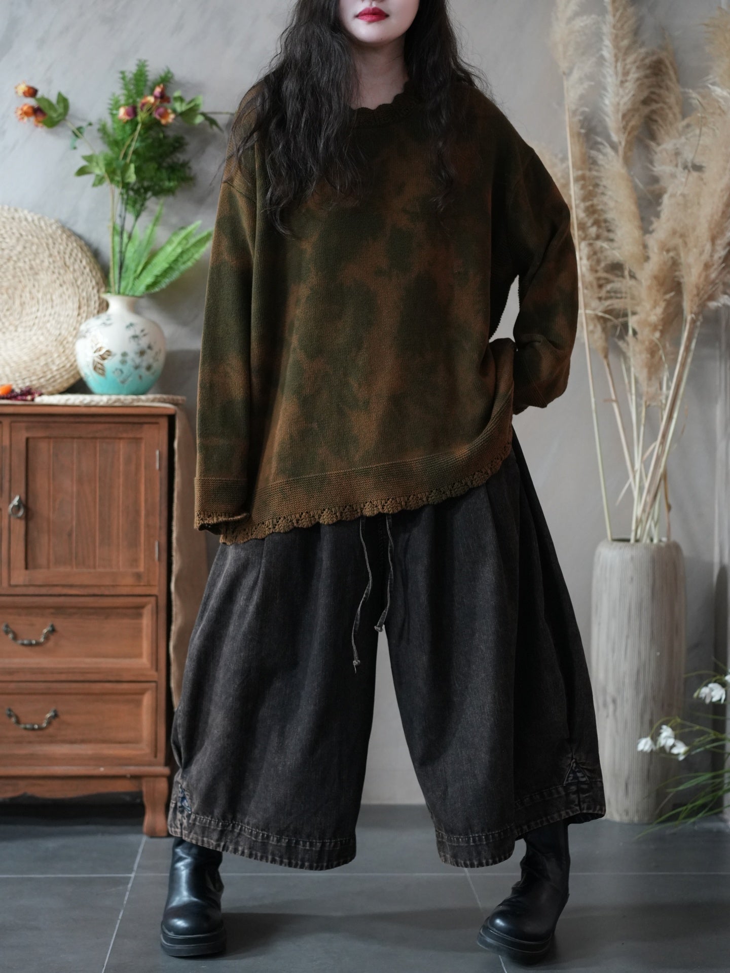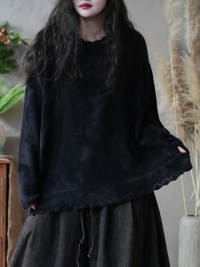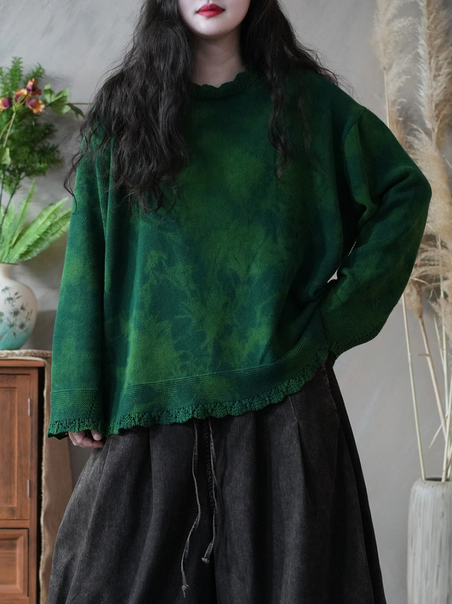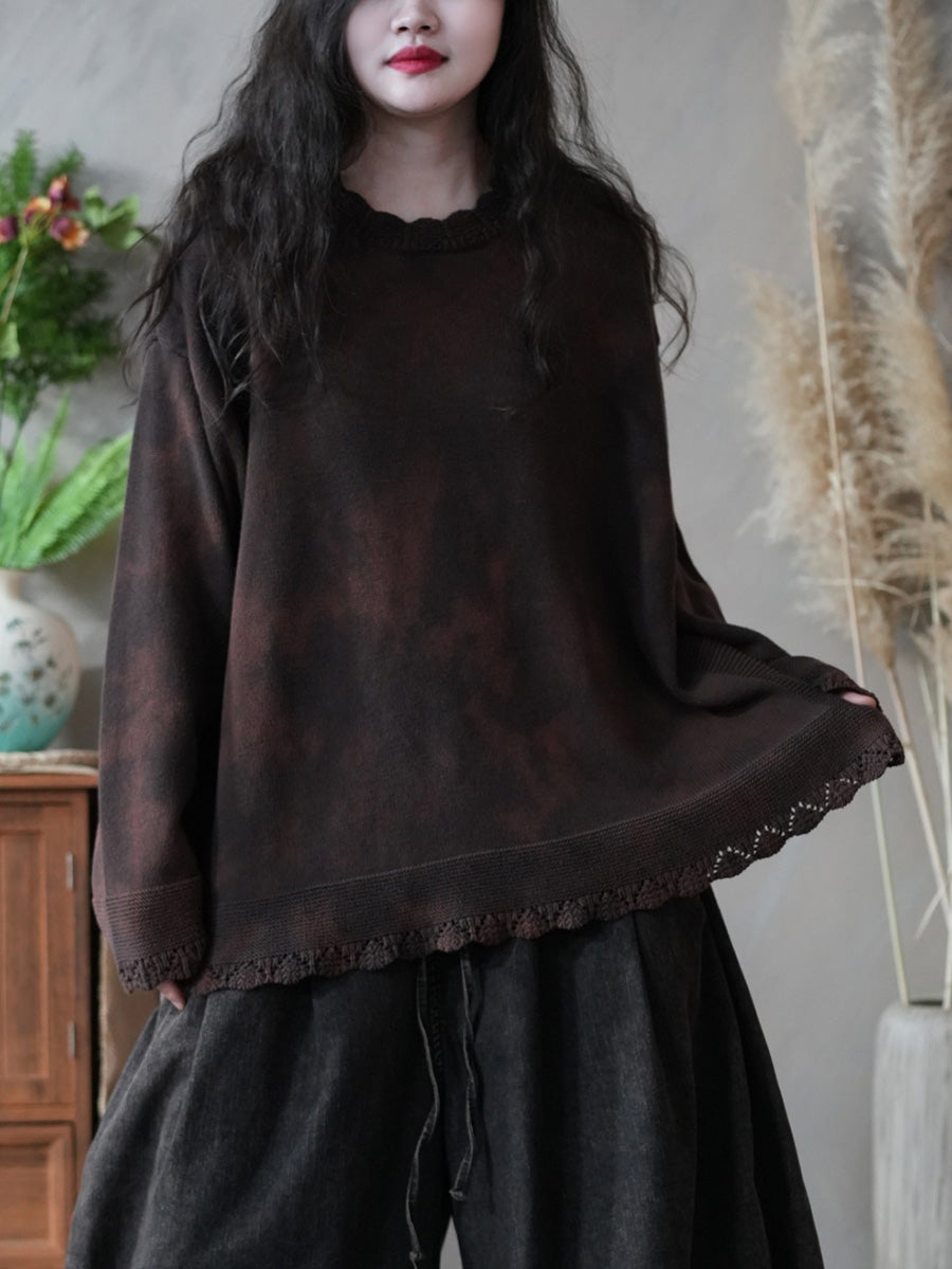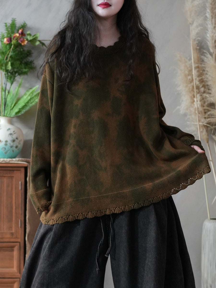 Ženski zimski retro pulover s O-izrezom i tie-dye uzorkom