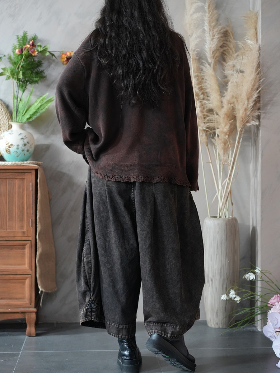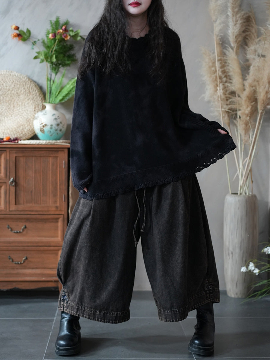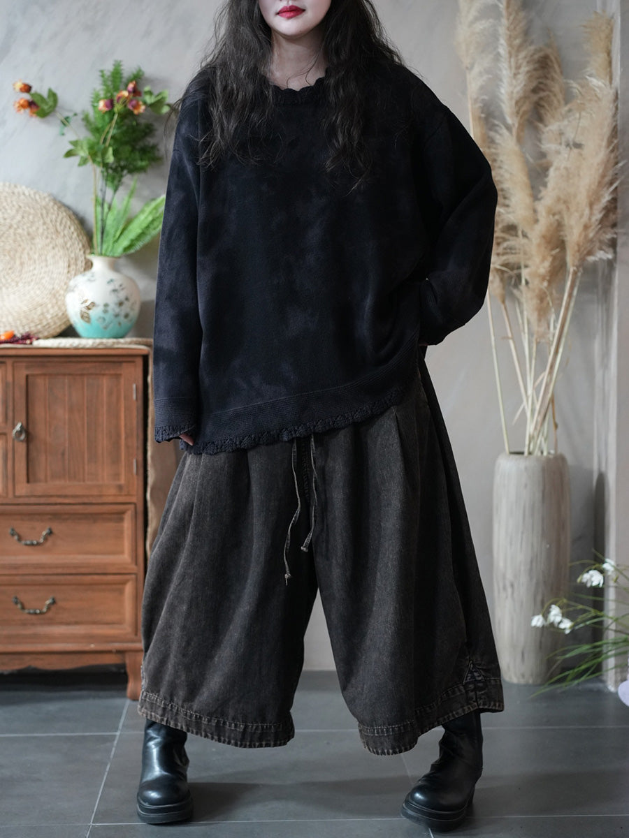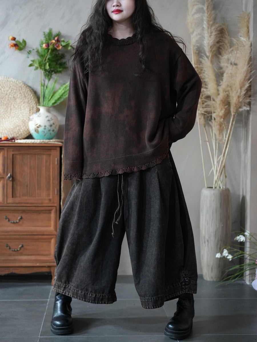 Ženski zimski retro pulover s O-izrezom i tie-dye uzorkom