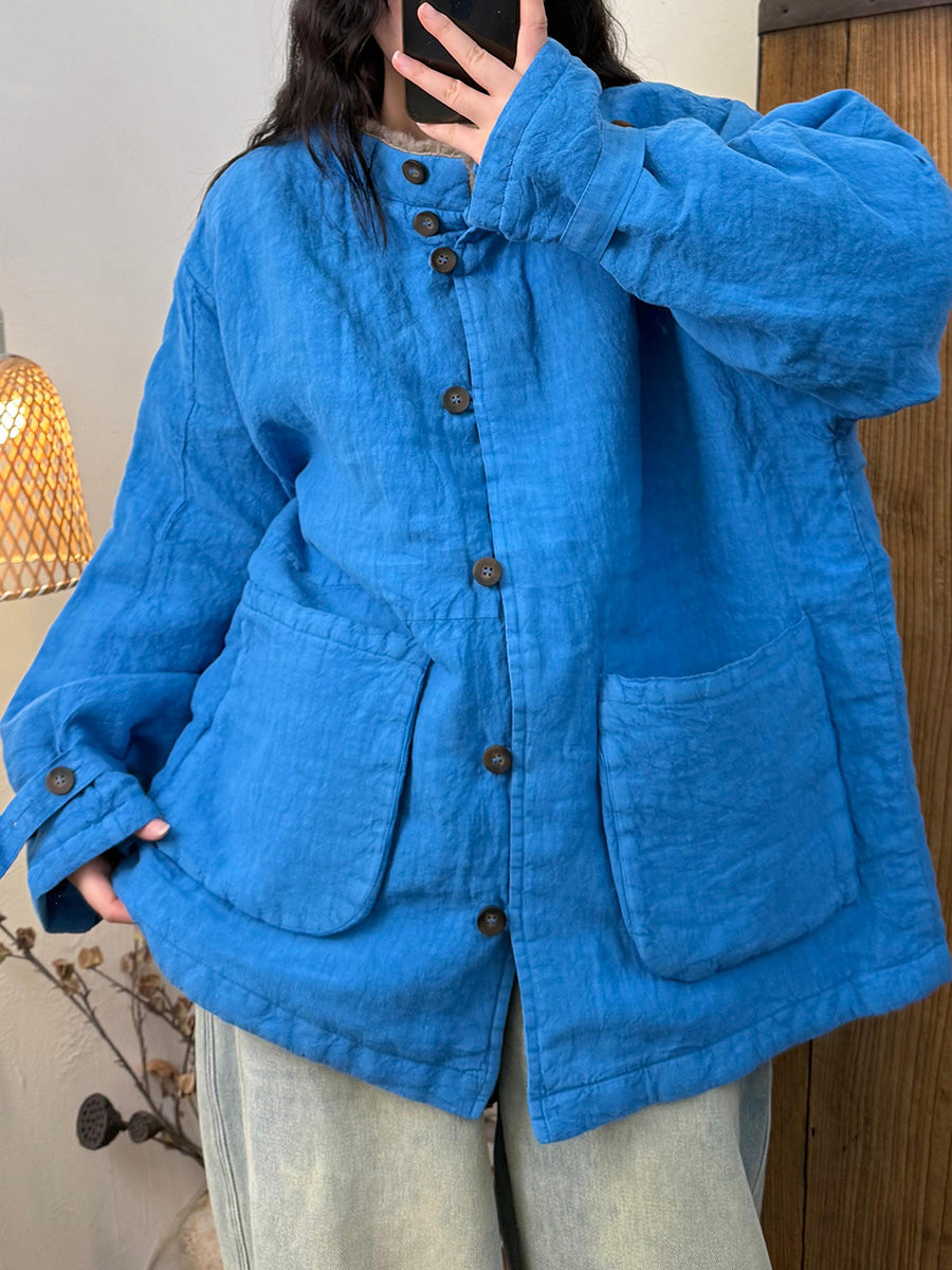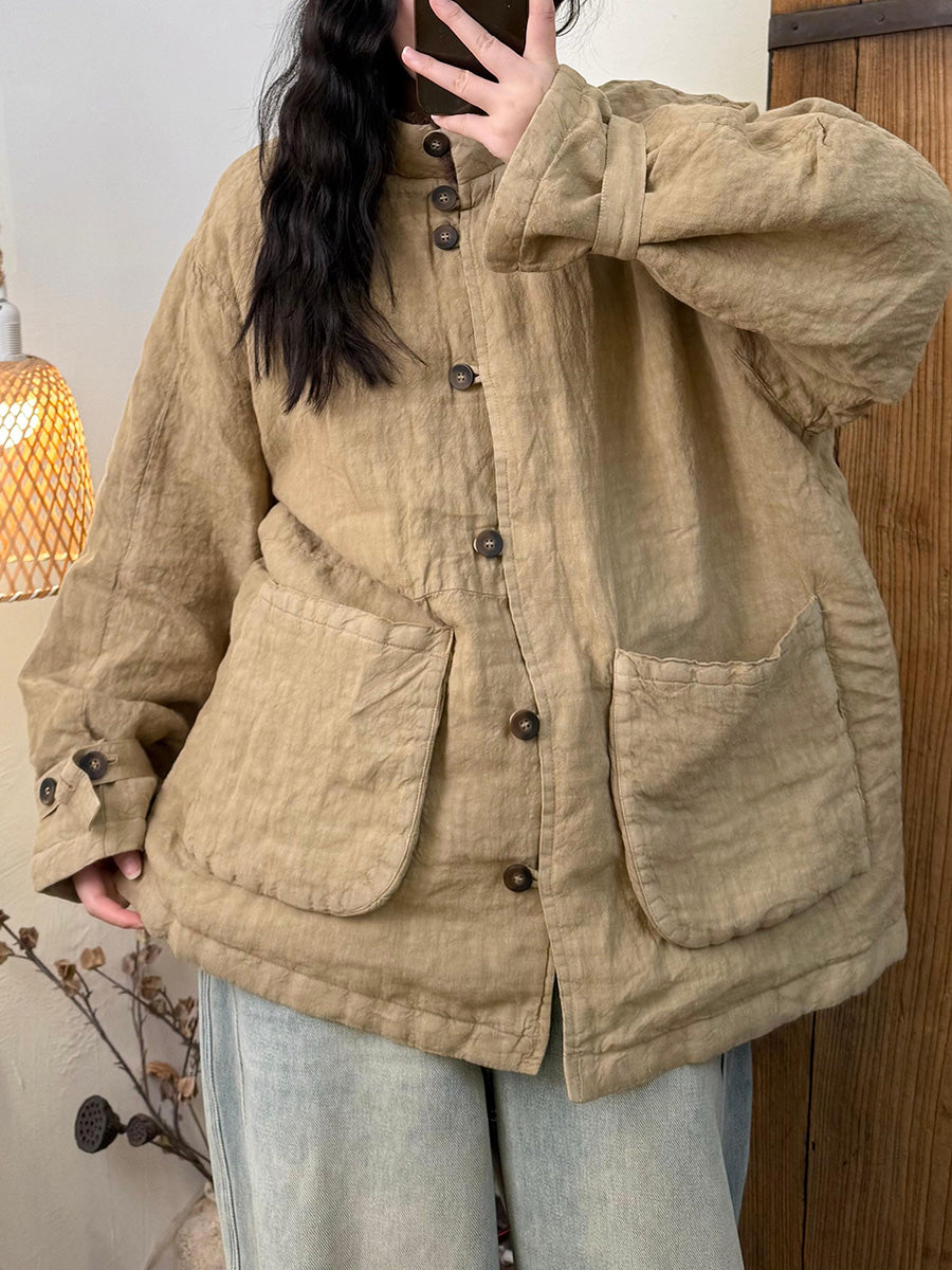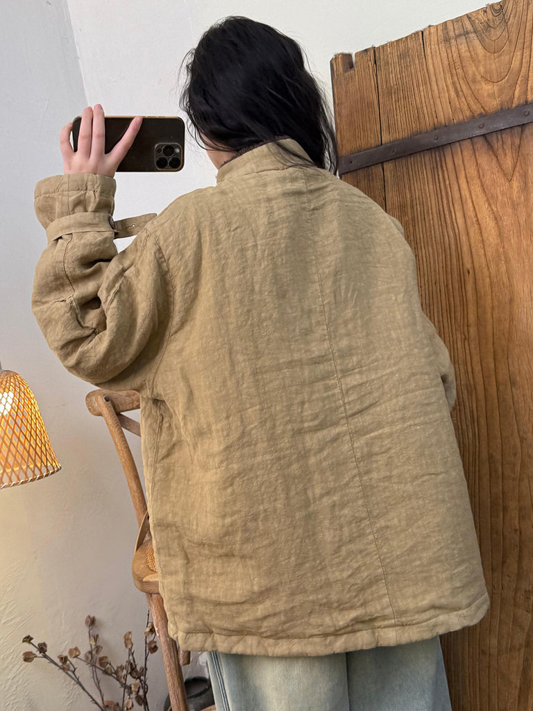 Ženski vintage zimski kaput od flisa s ovratnikom