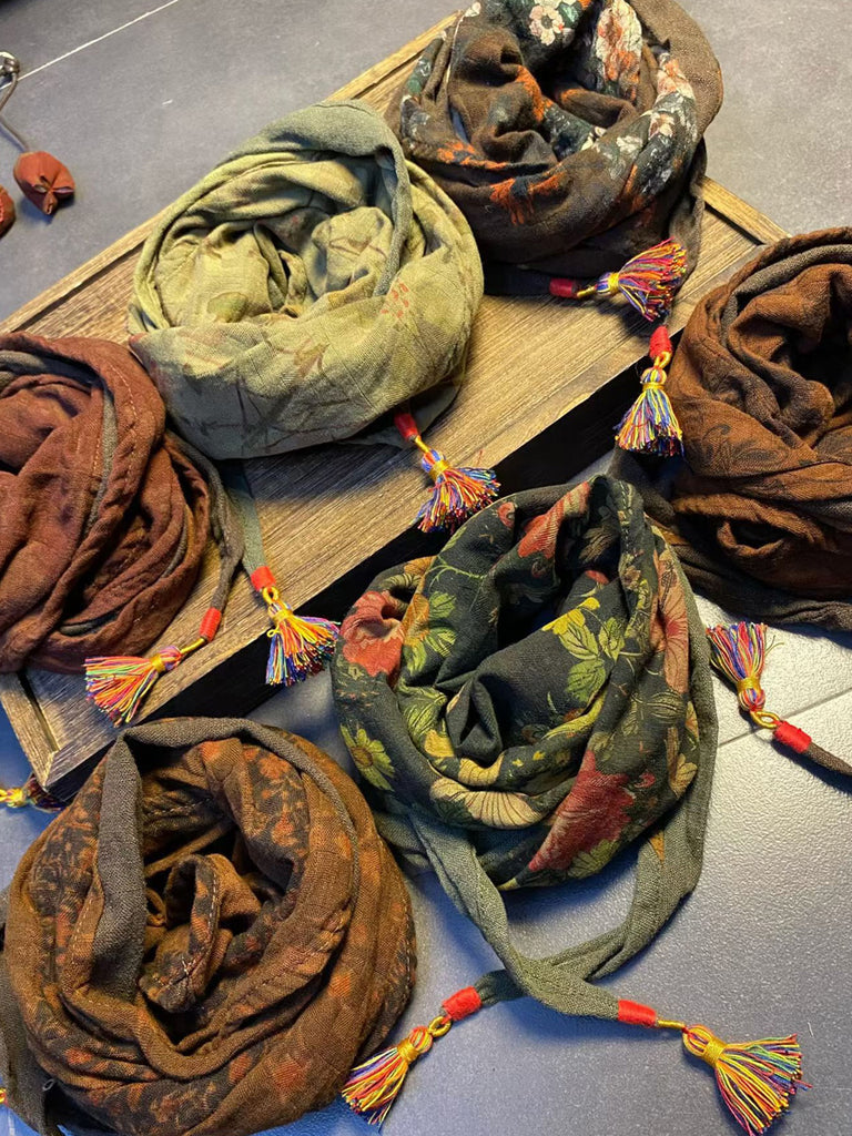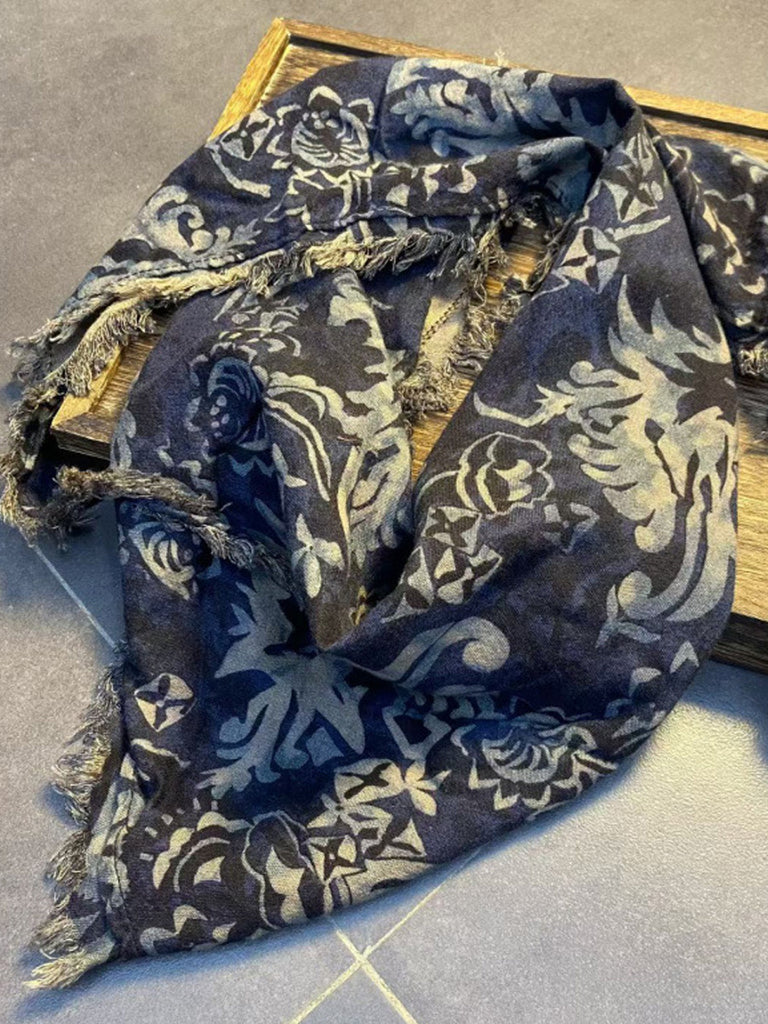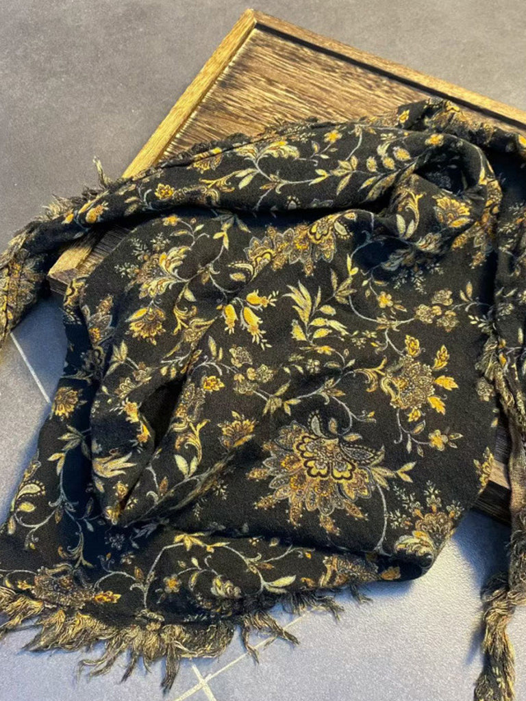 Ženski vintage šal s cvjetnim trokutom i neobrađenim rubom