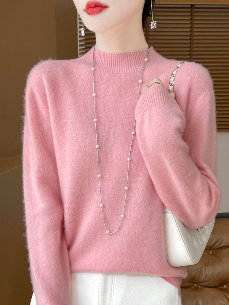 Ženski zimski ležerni pulover s polu-rolkom u čistim bojama