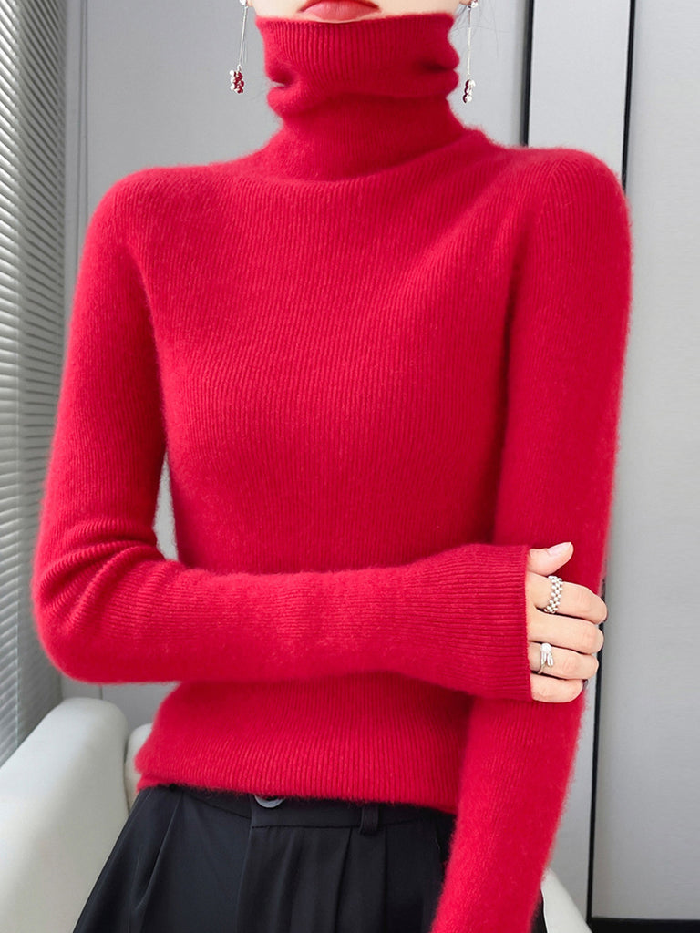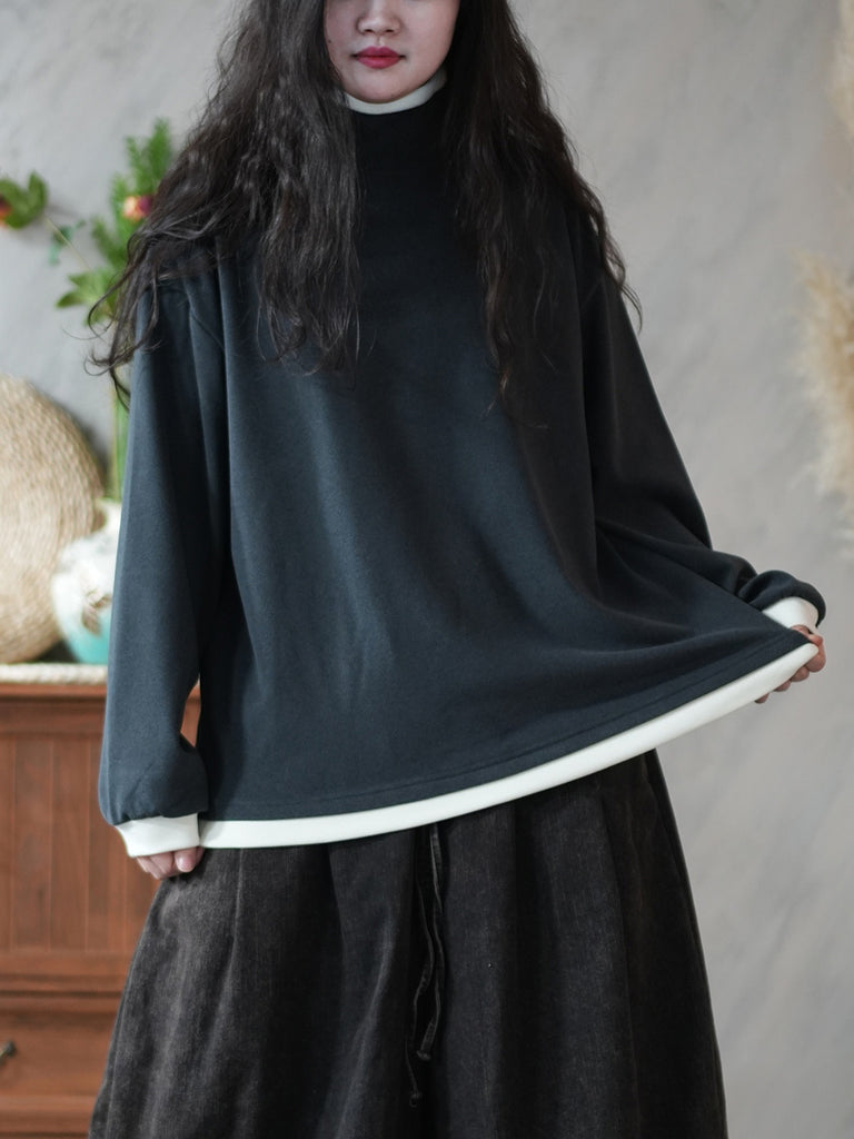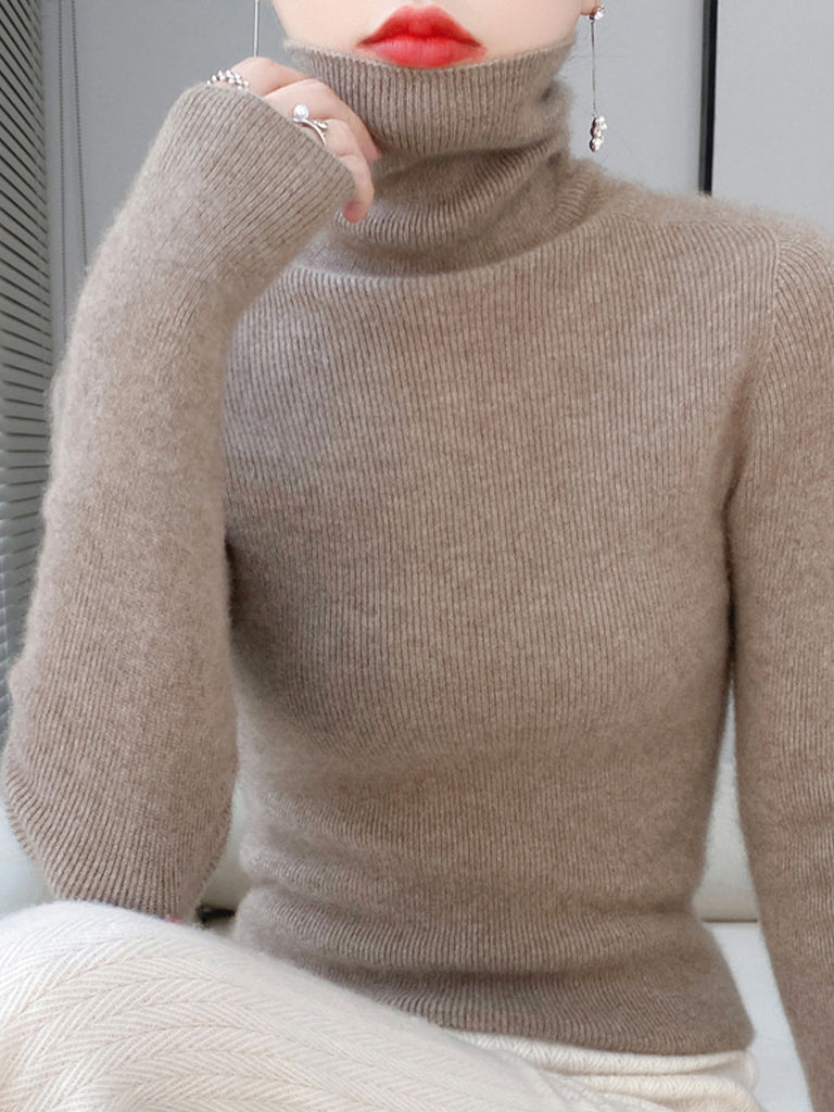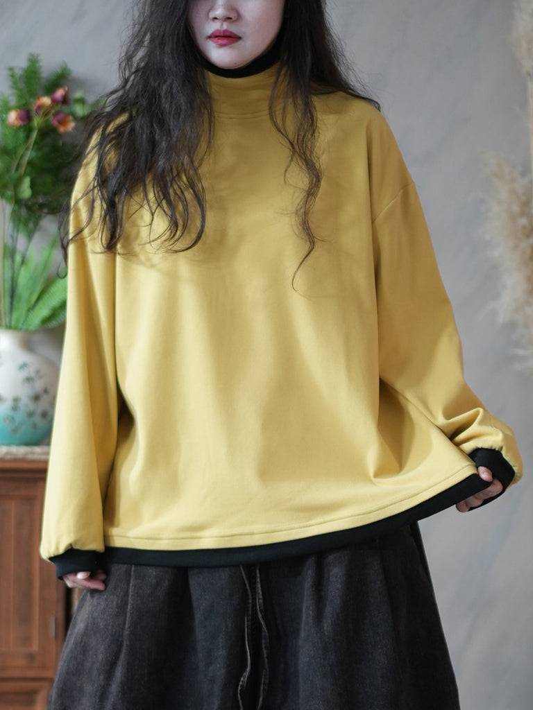 Ženski jesenski ležerni pulover s dolčevitom u čistoj boji