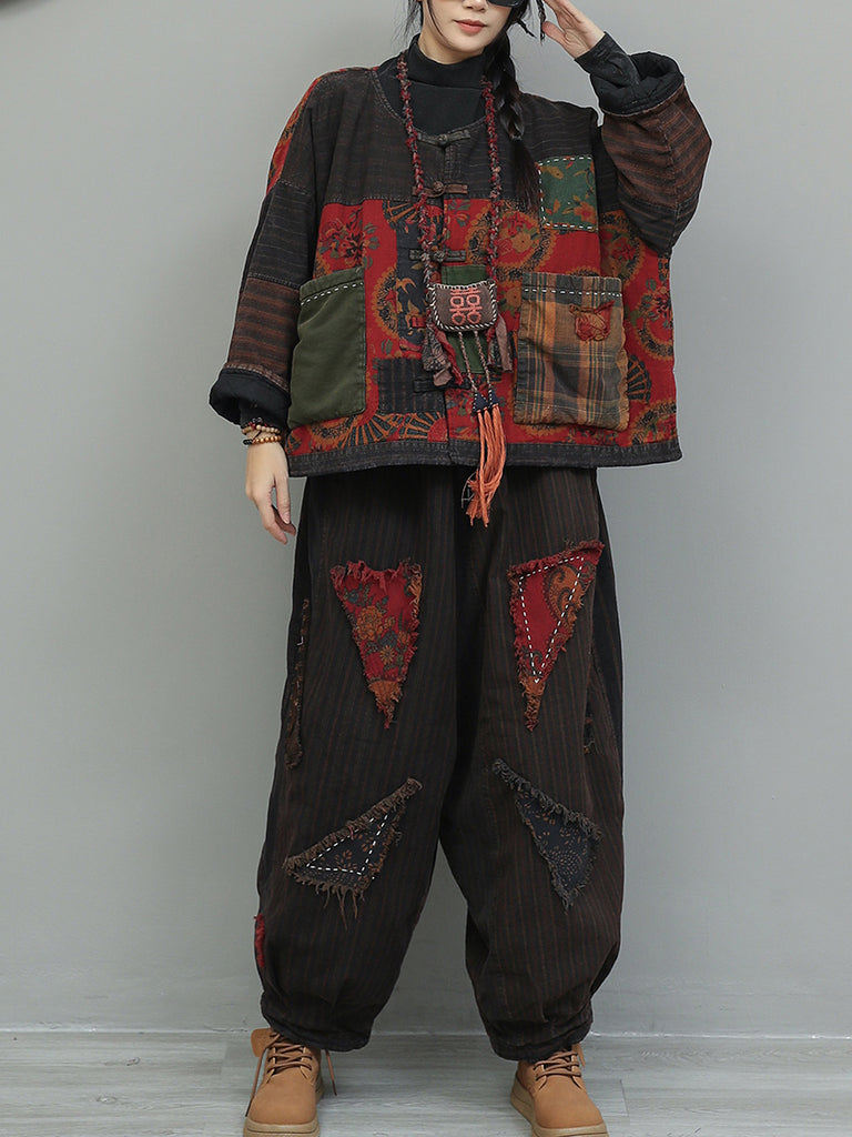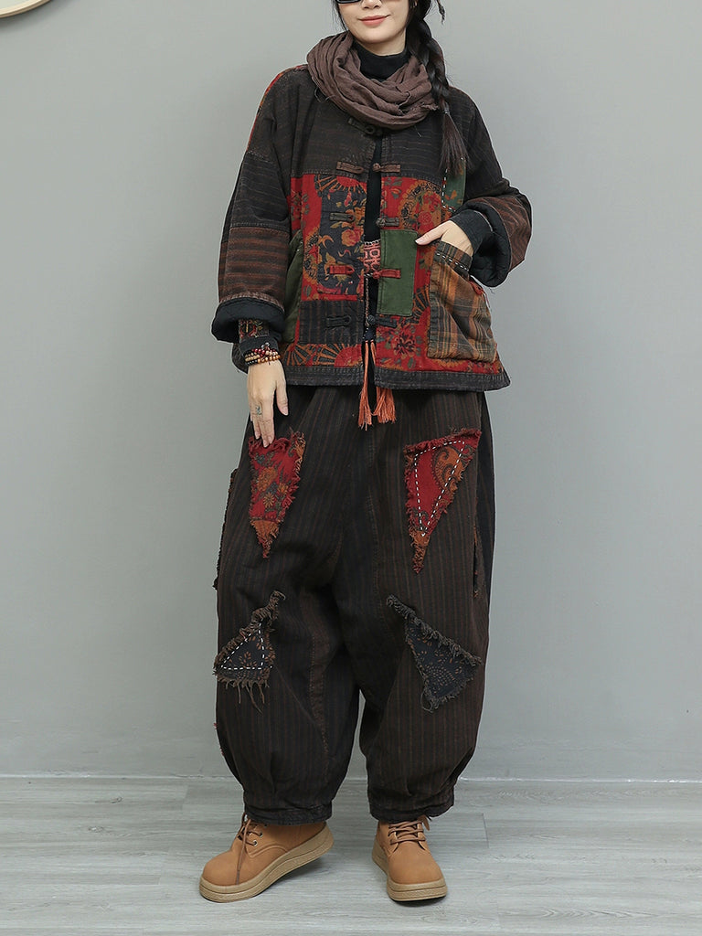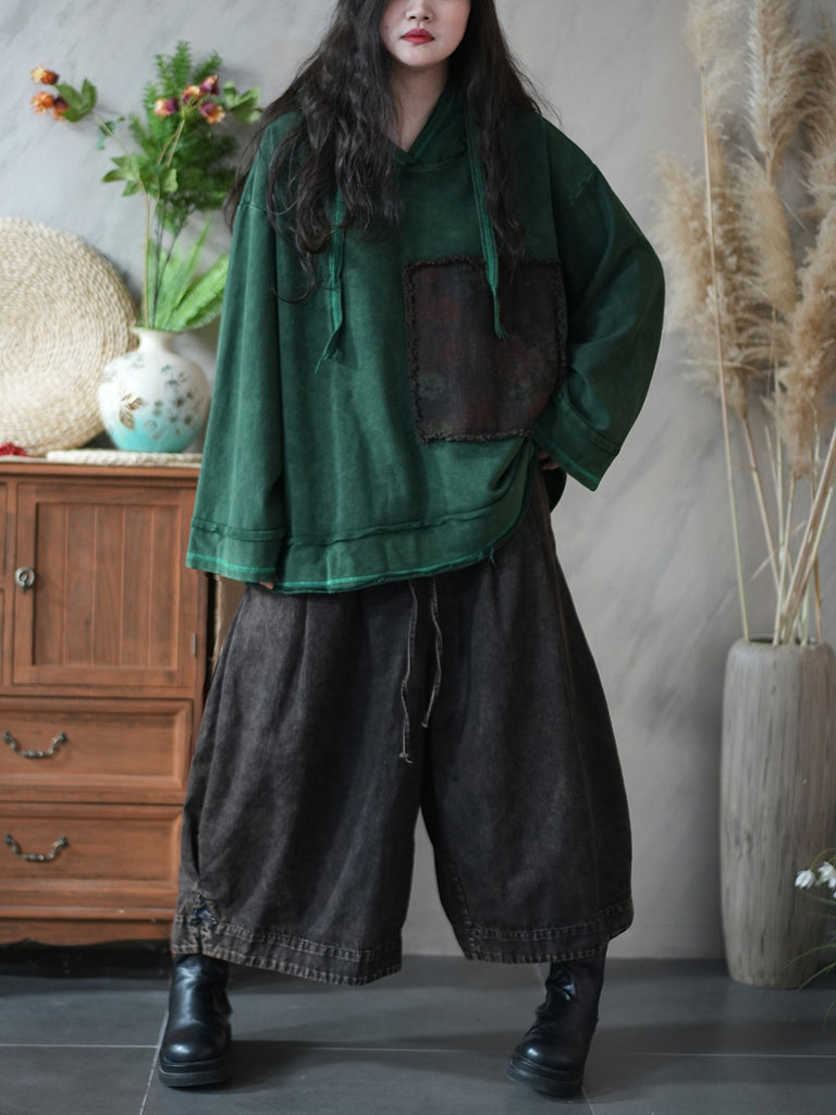 Ženska zimska vintage patchwork majica s kapuljačom od 100% pamuka