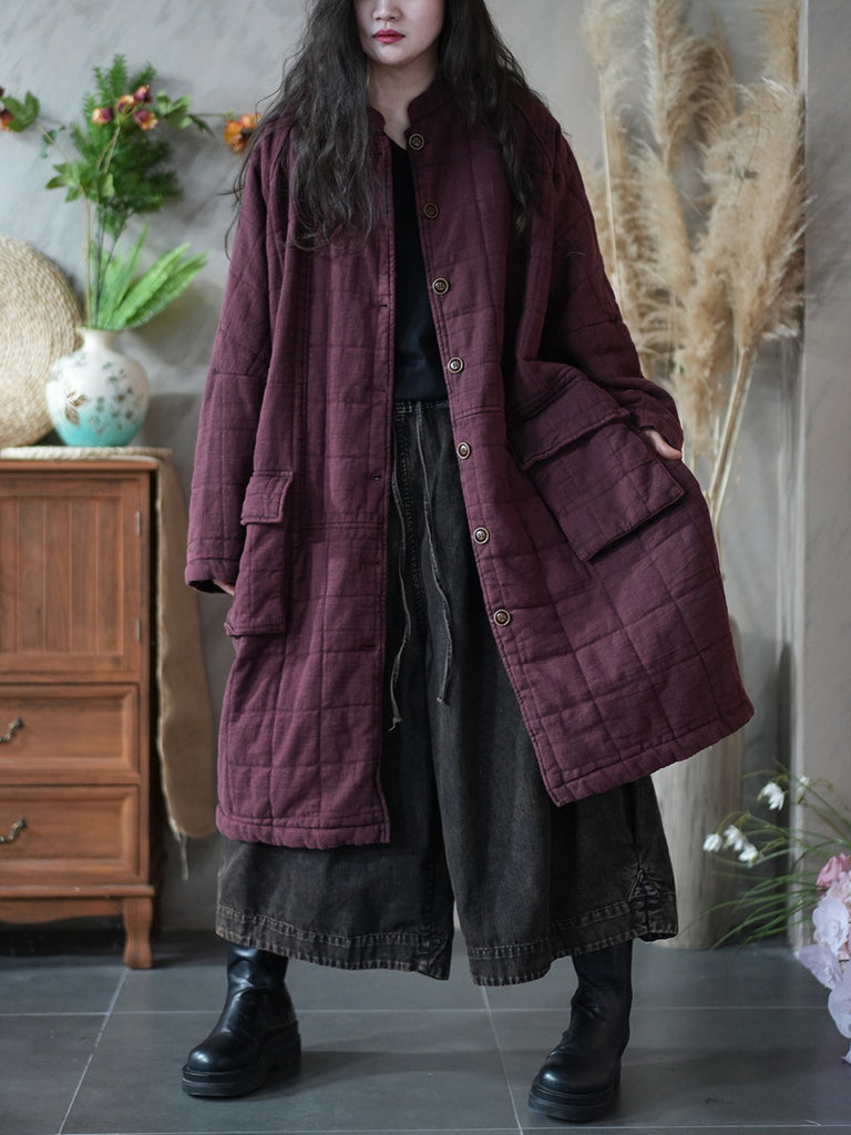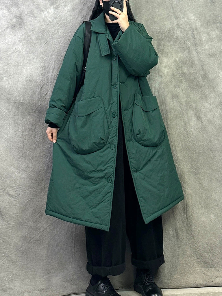 Ženski retro zimski kaput s ovratnikom u čistoj boji, podstavljeni