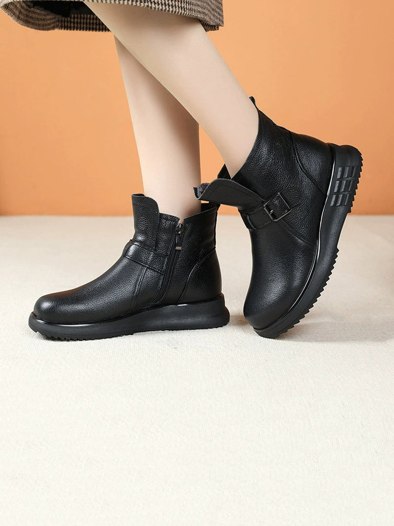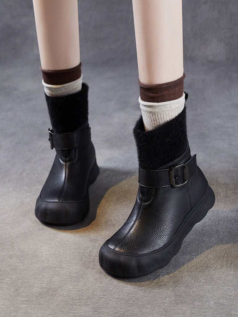 Ženske gležnjače od prave kože s platformom i flis podstavom
