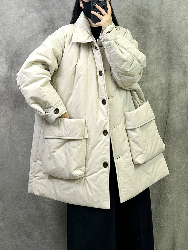Ženski zimski kaput s ovratnikom u čistoj boji