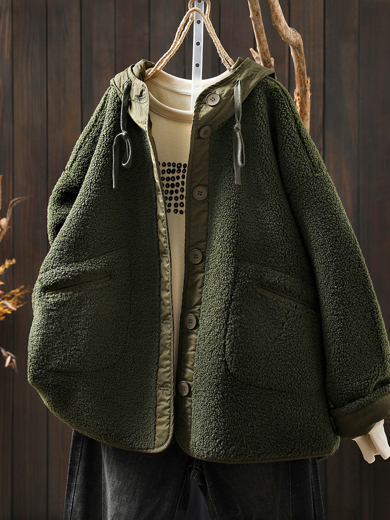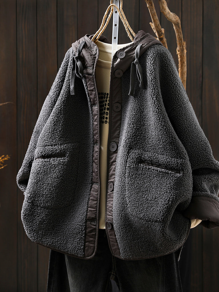 Ženski zimski ležerni kaput s kapuljačom od čistog flisa