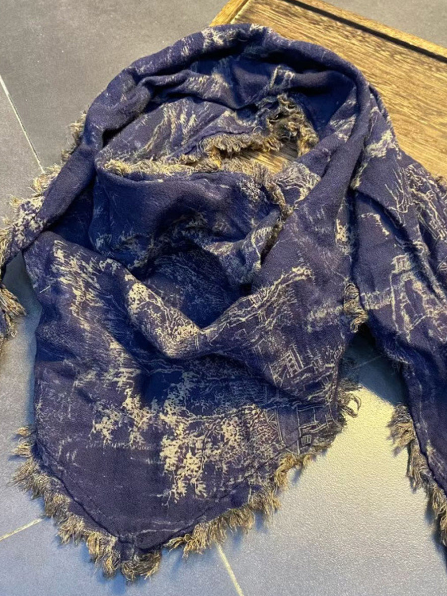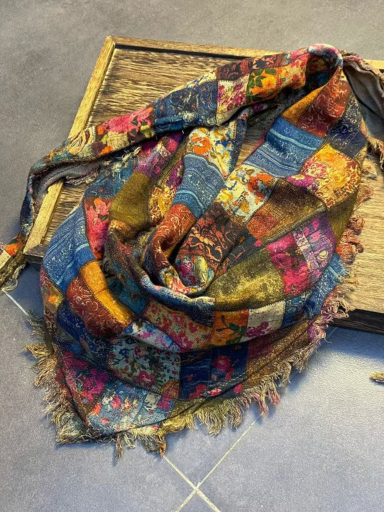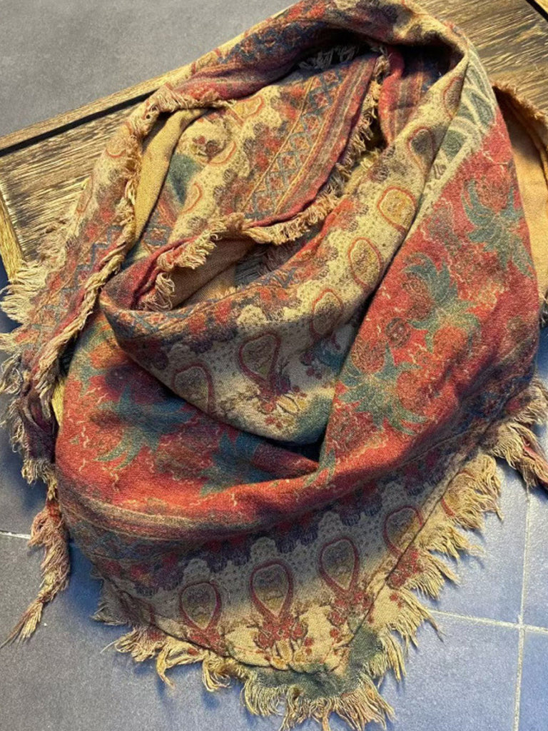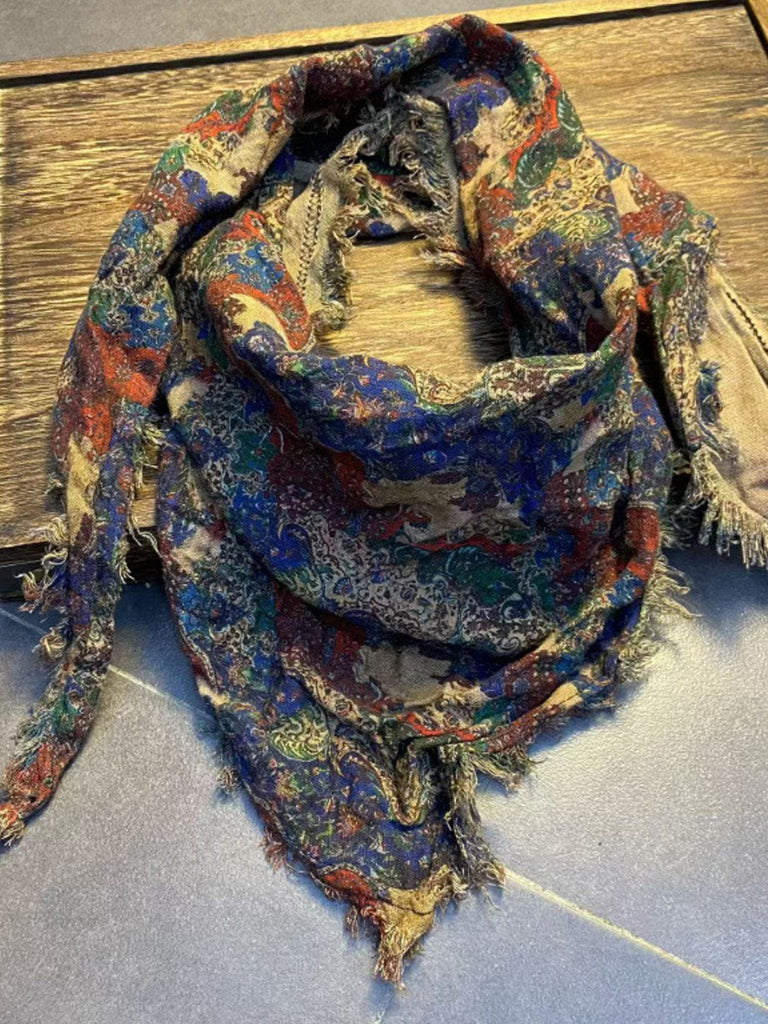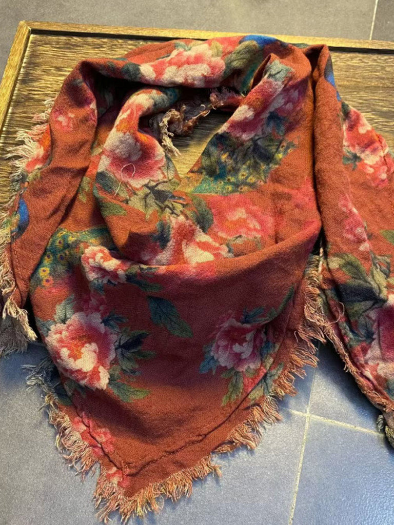 Ženski vintage šal s cvjetnim trokutom i neobrađenim rubom