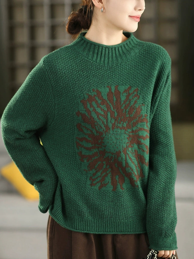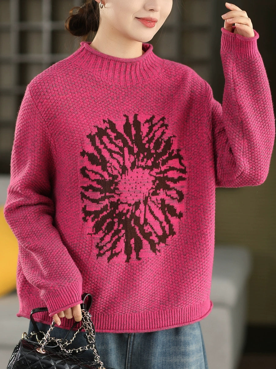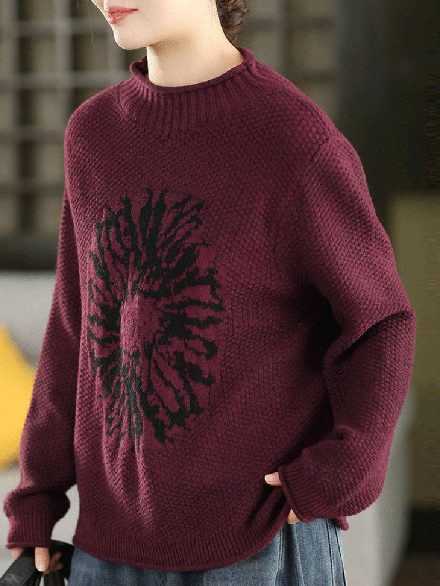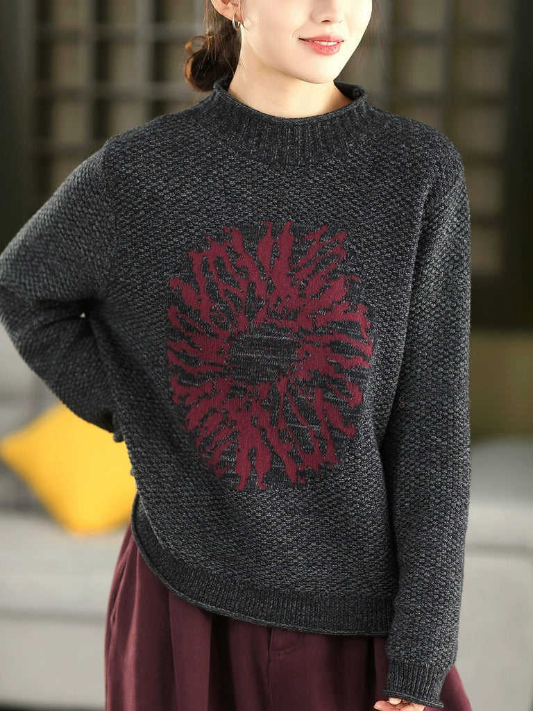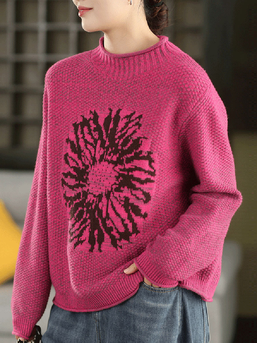 Ženski jesenski umjetnički cvjetni pulover s polu-rolkom
