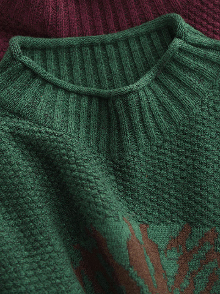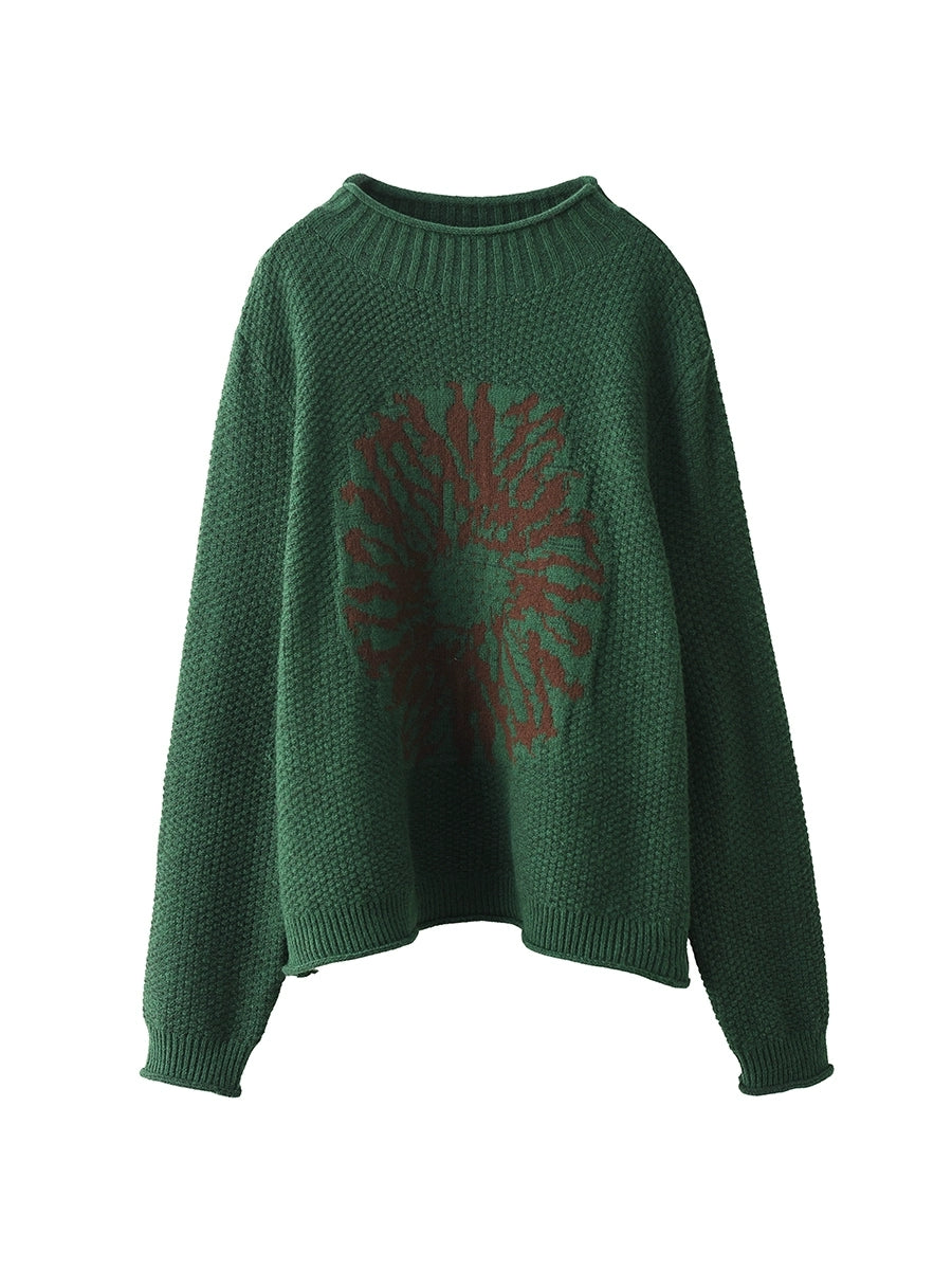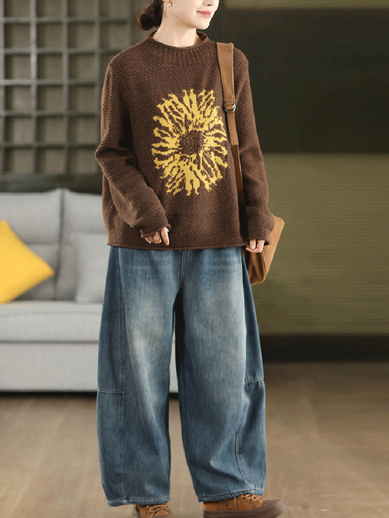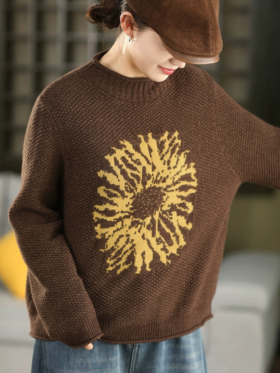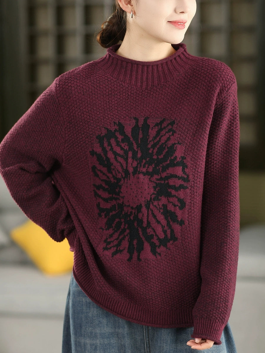 Ženski jesenski umjetnički cvjetni pulover s polu-rolkom