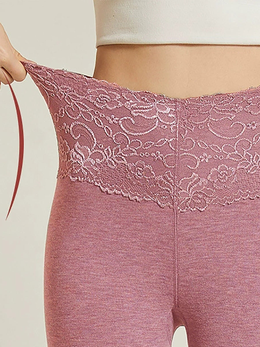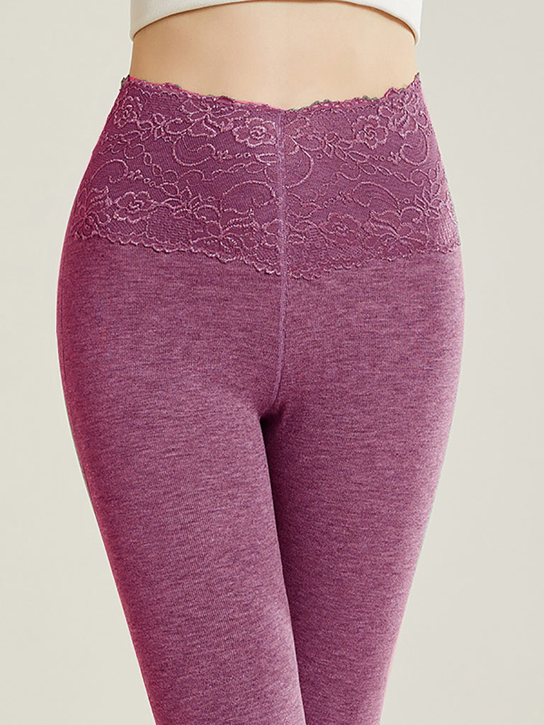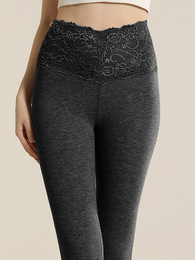 Ženske zimske tople tajice visokog struka od čipke čiste boje