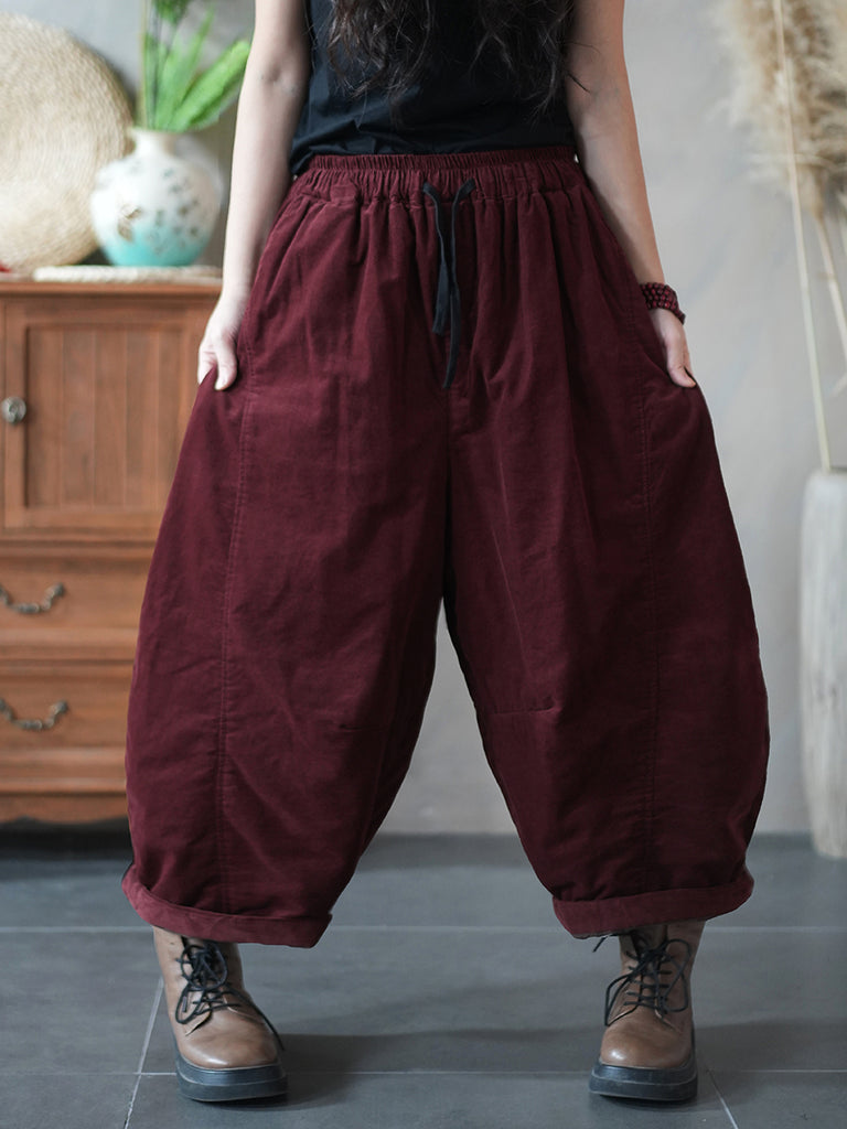 Ženske zimske retro podstavljene hlače u čistoj boji