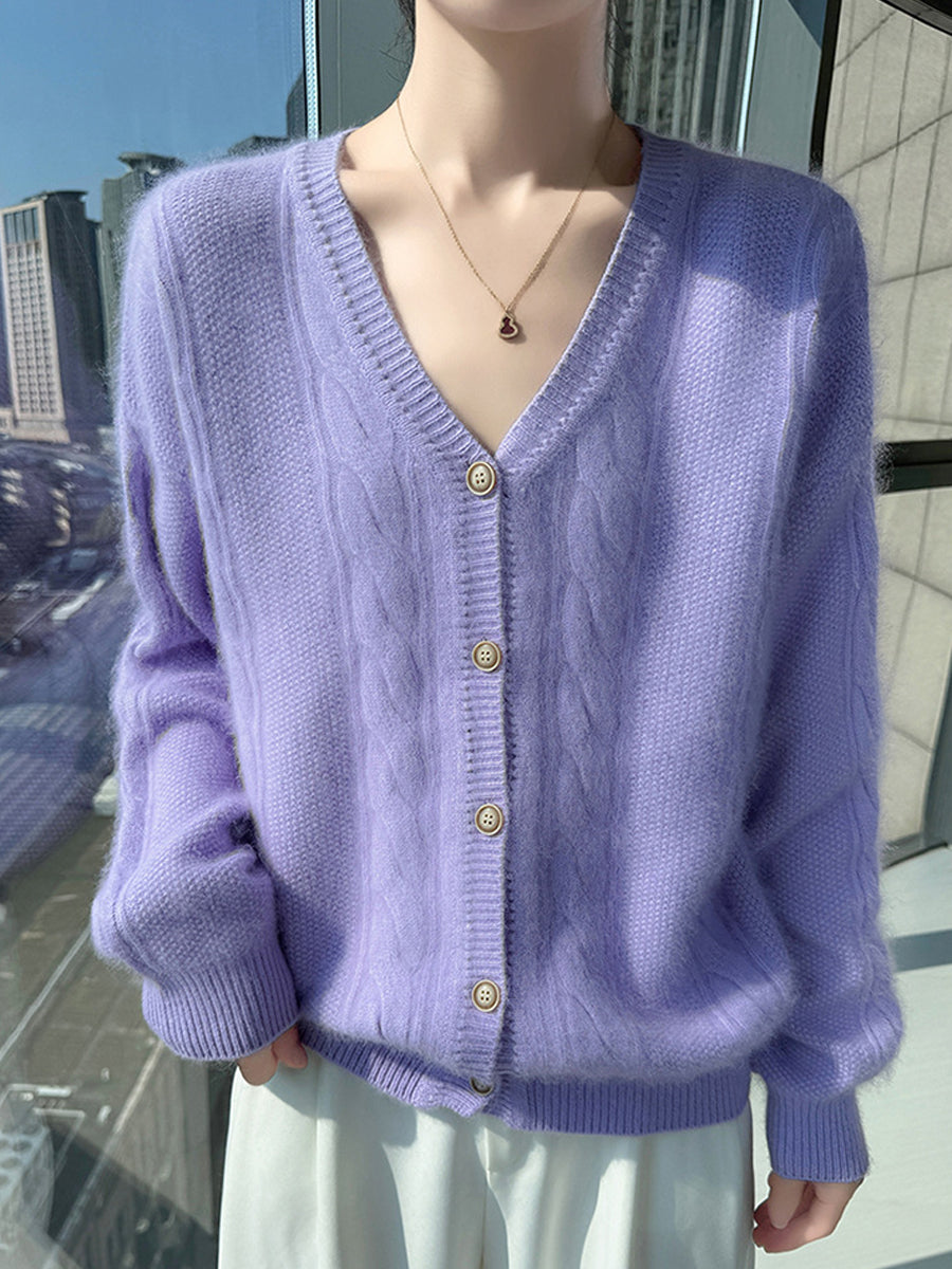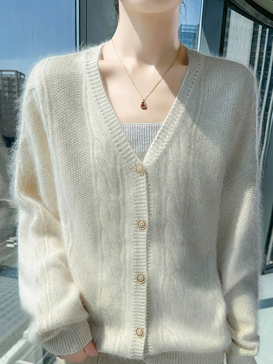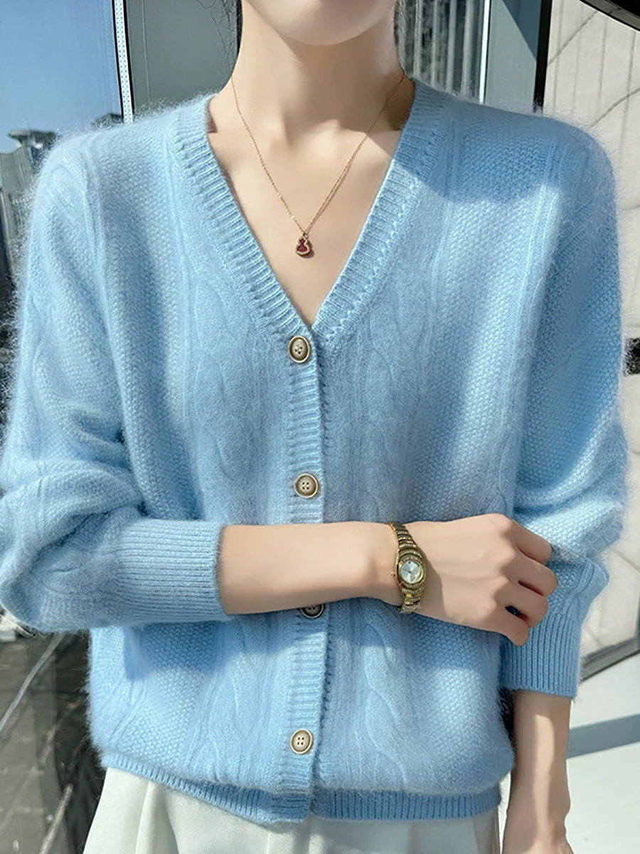 Ženski jesenski ležerni pulover s V-izrezom u čistoj boji