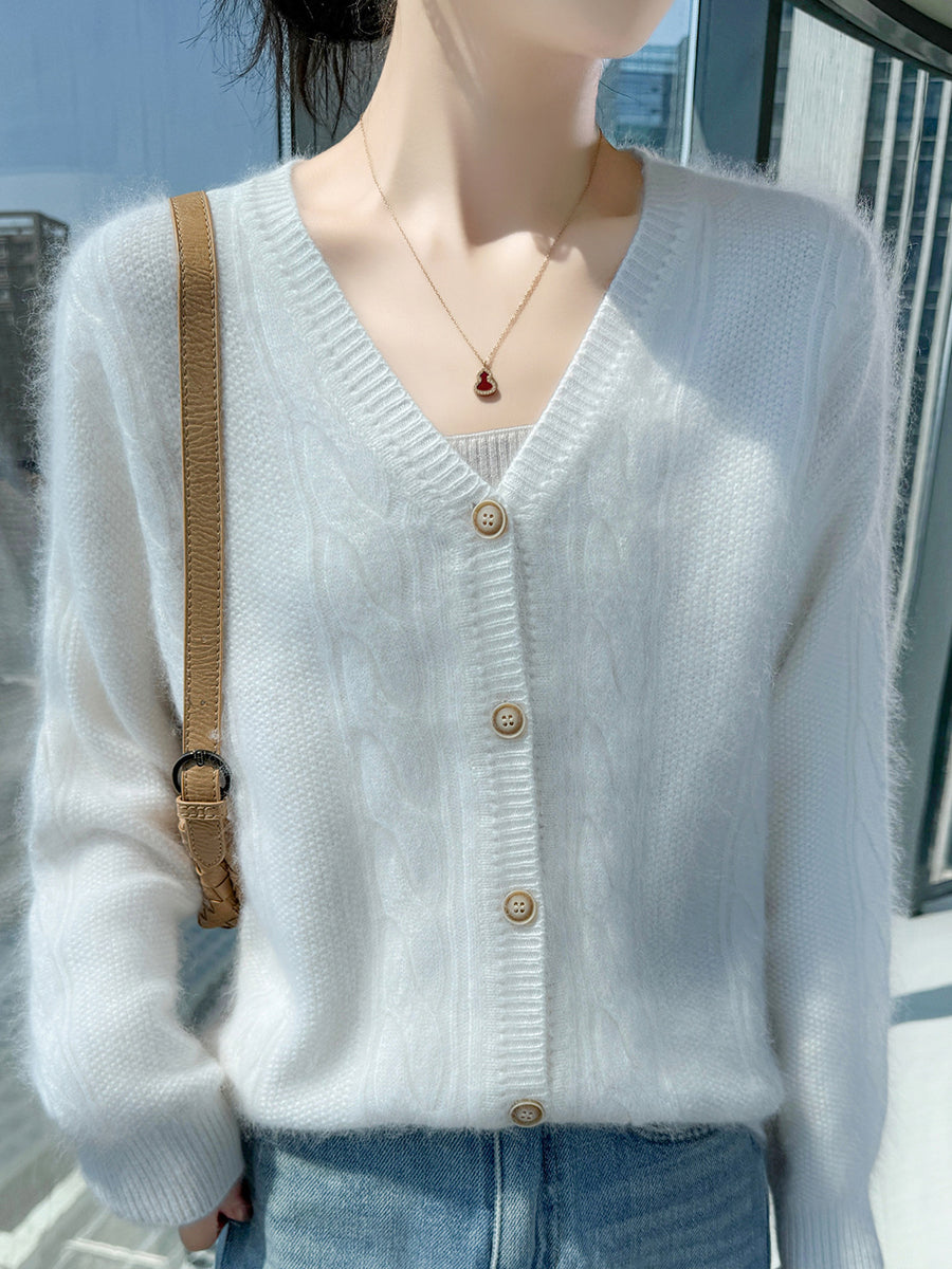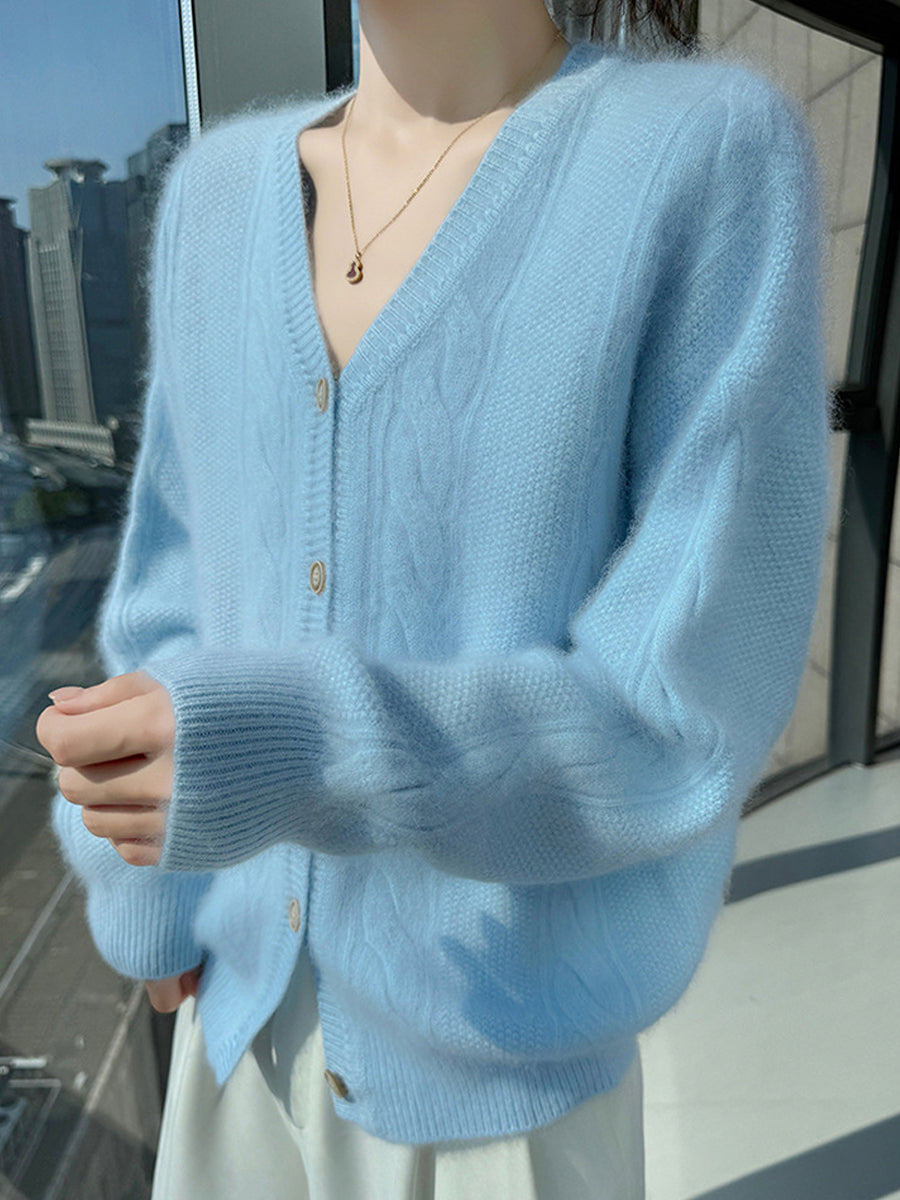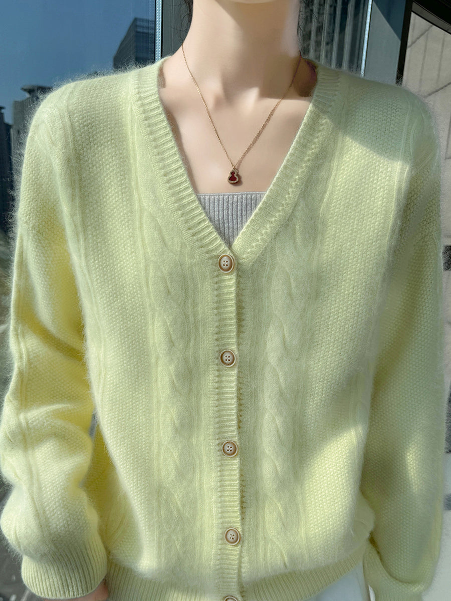 Ženski jesenski ležerni pulover s V-izrezom u čistoj boji