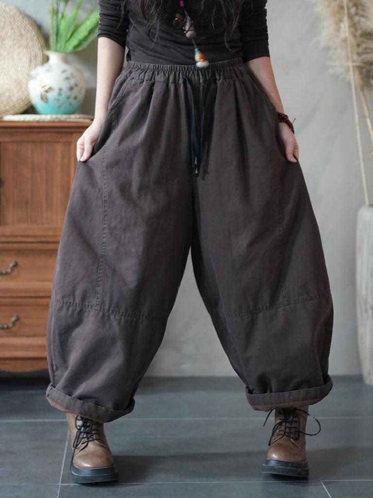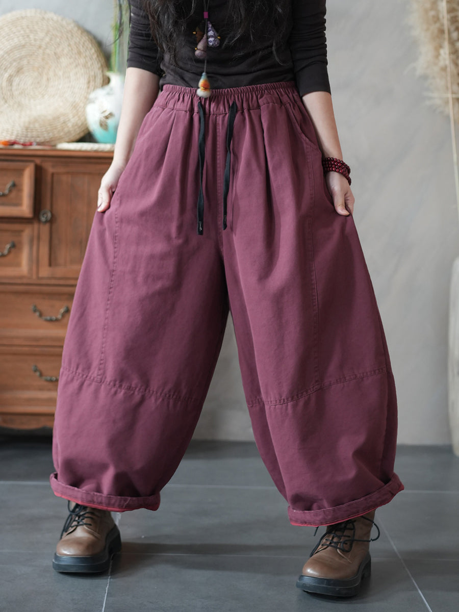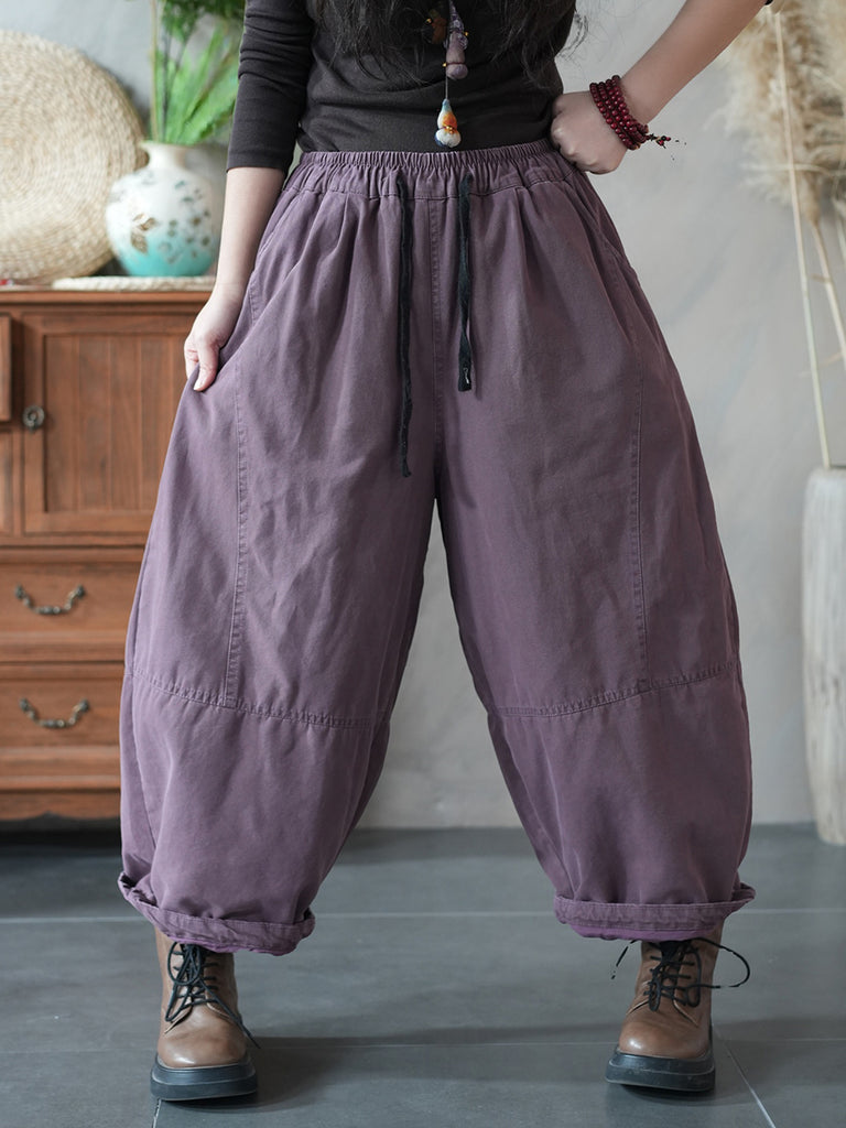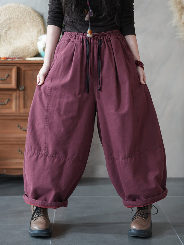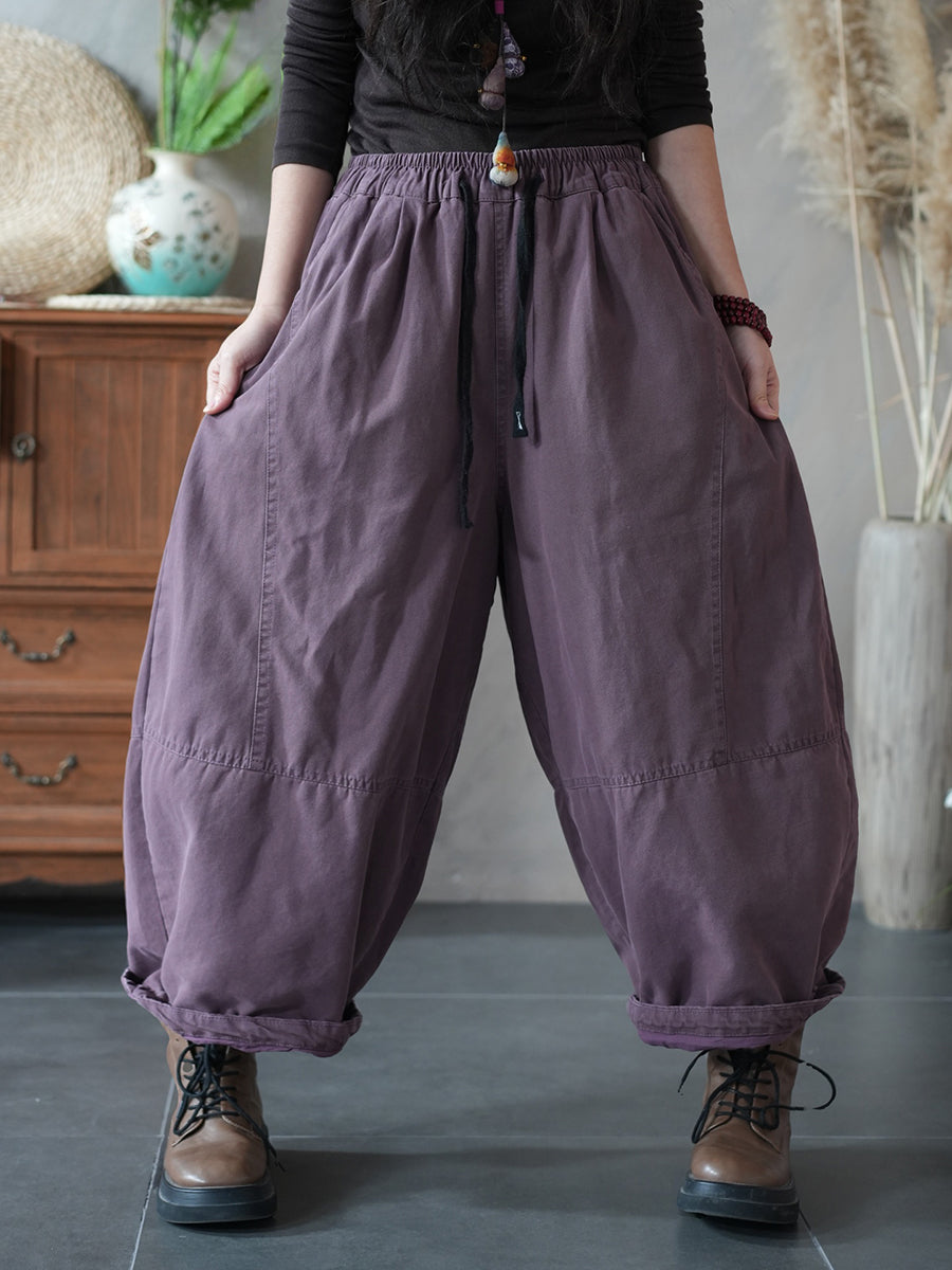 Ženske zimske retro harem hlače od 100% pamuka, čiste boje