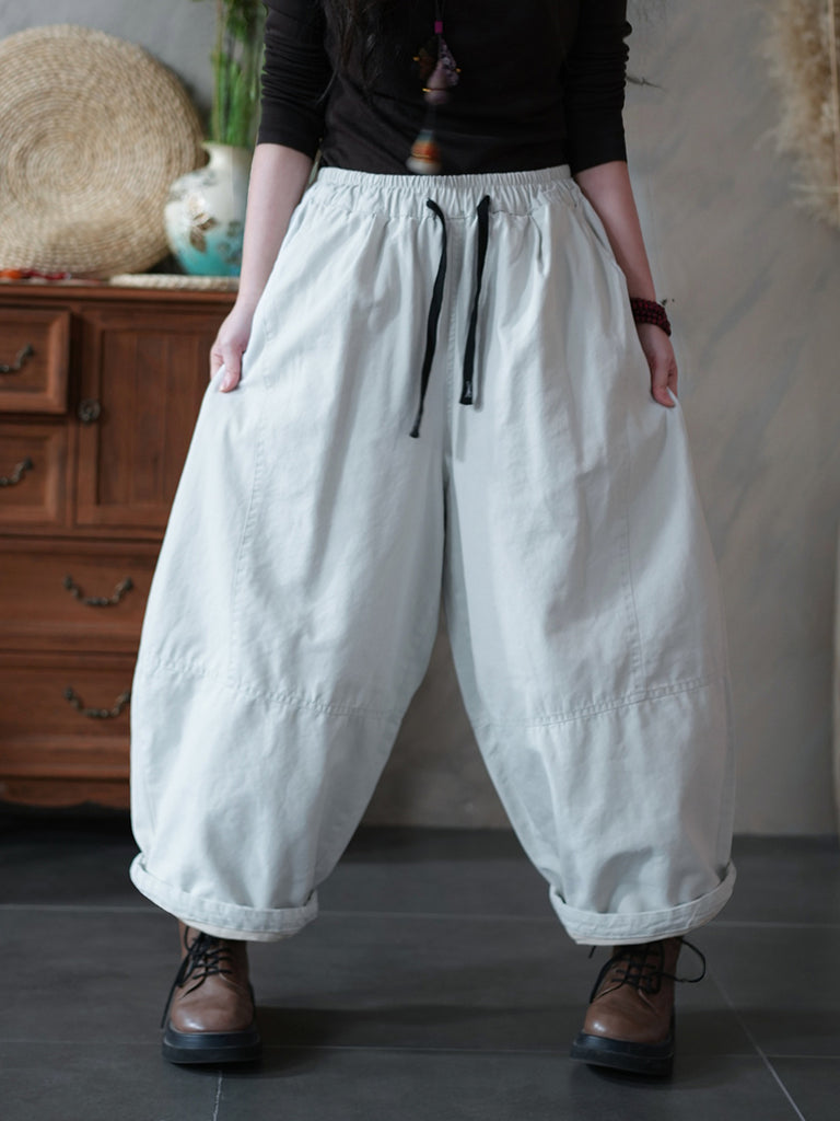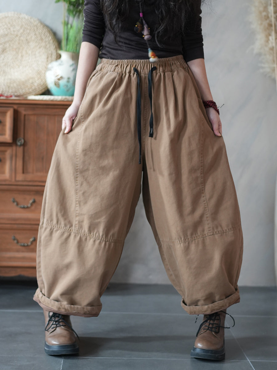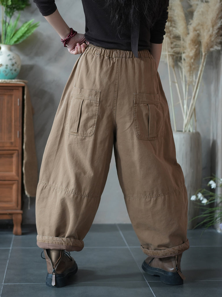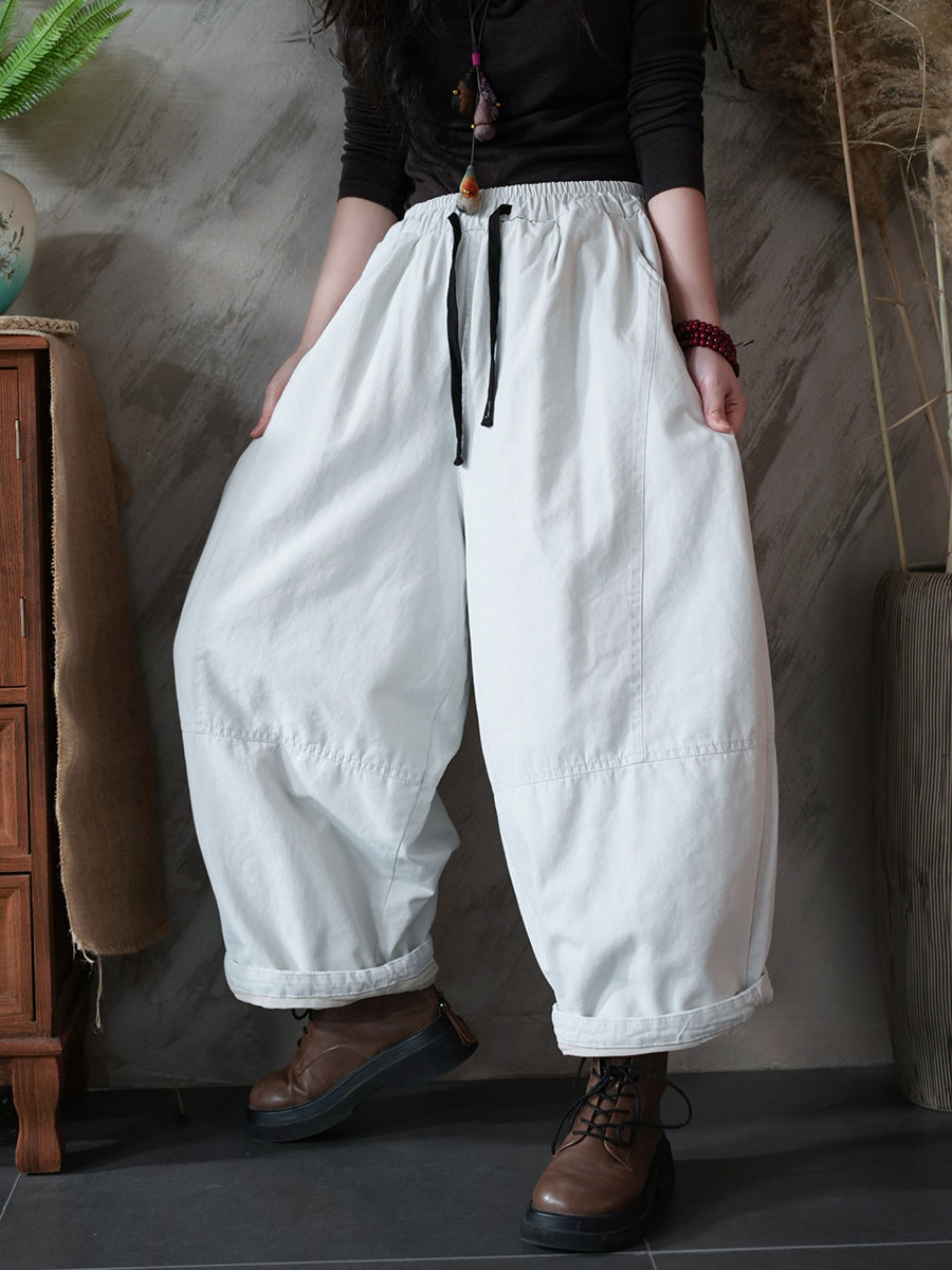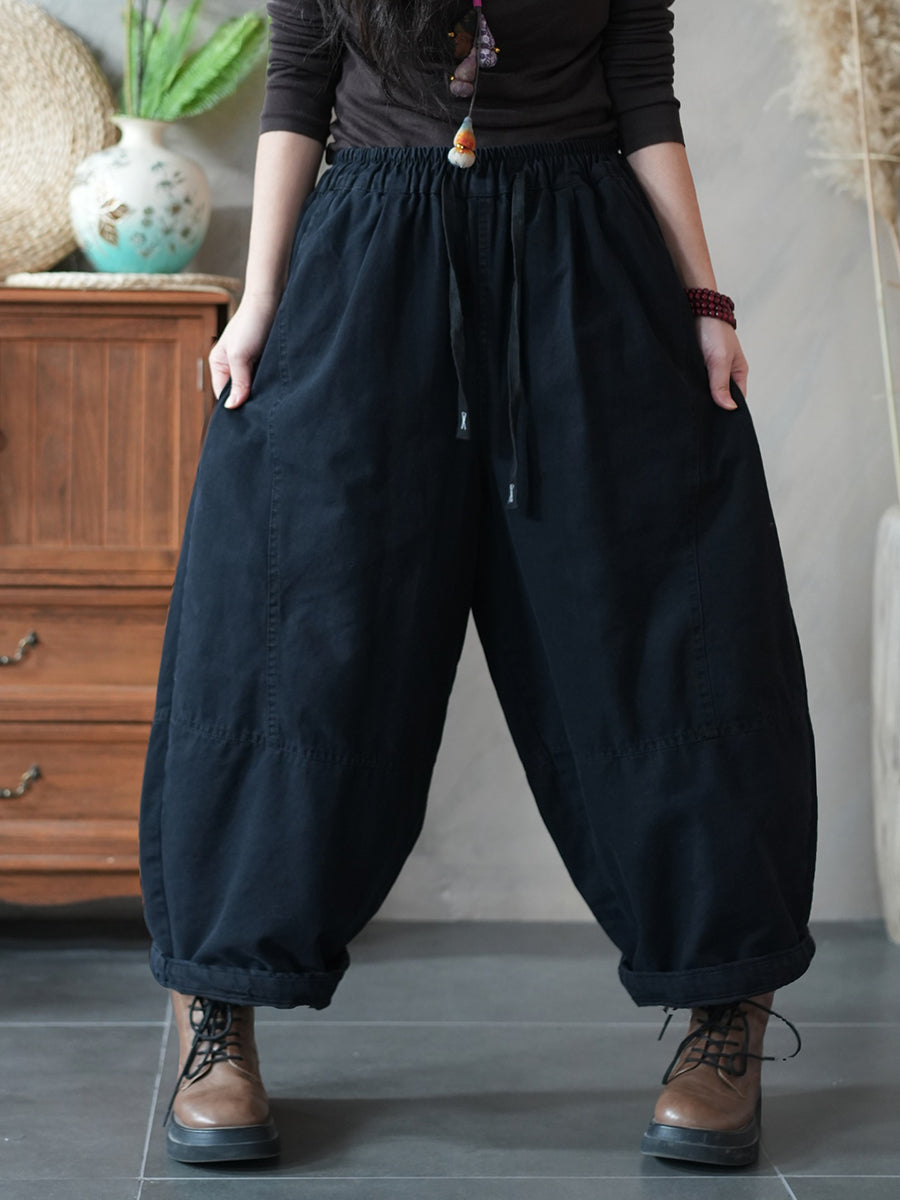 Ženske zimske retro harem hlače od 100% pamuka, čiste boje