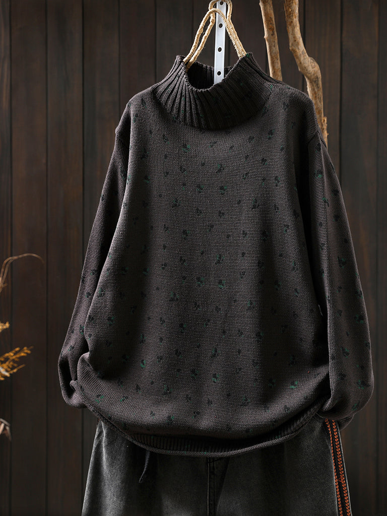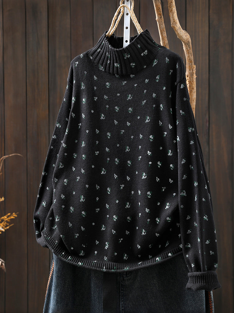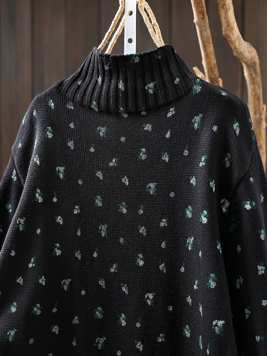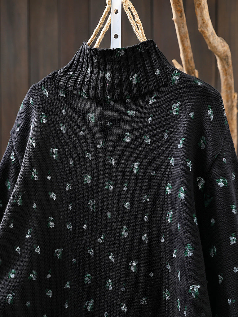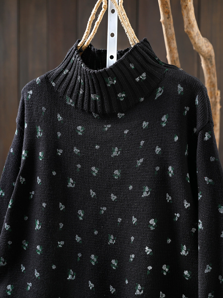 Ženski jesenski umjetnički cvjetni pulover s polu-rolkom