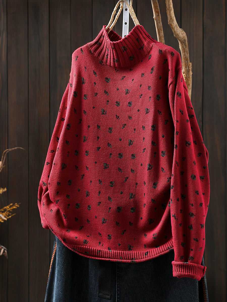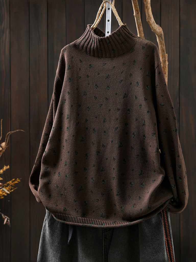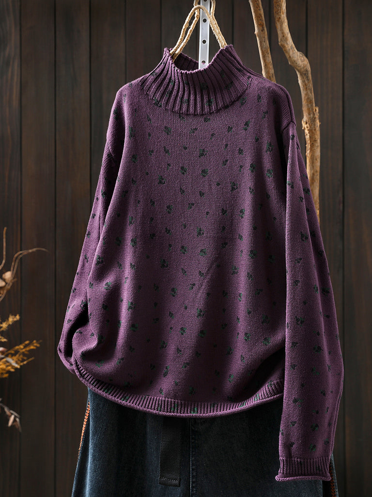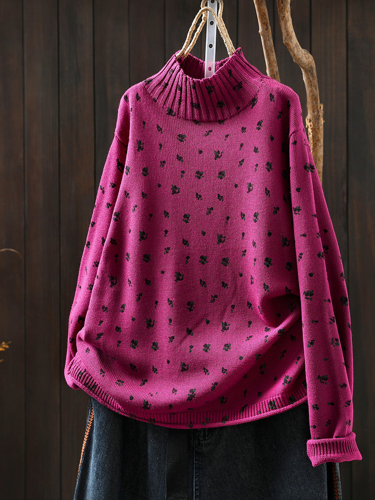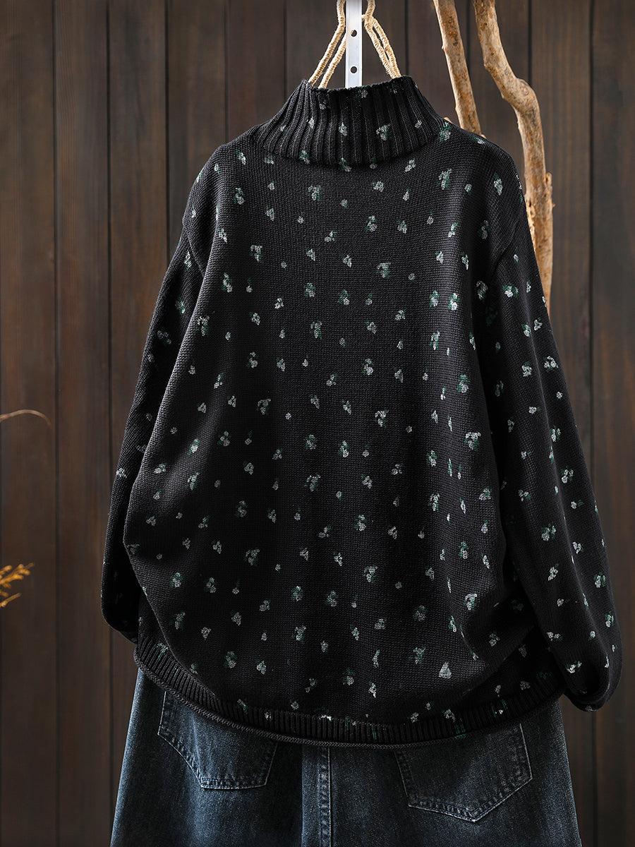 Ženski jesenski umjetnički cvjetni pulover s polu-rolkom