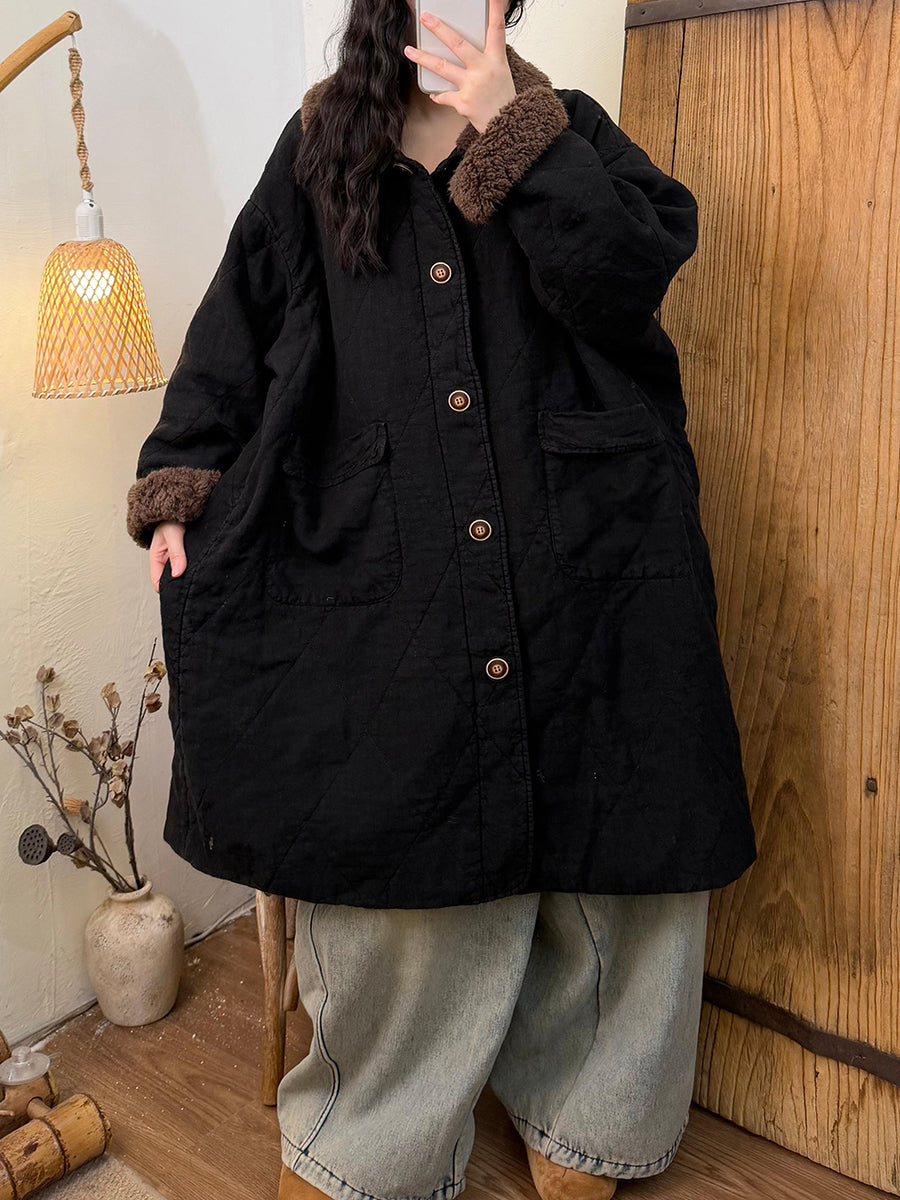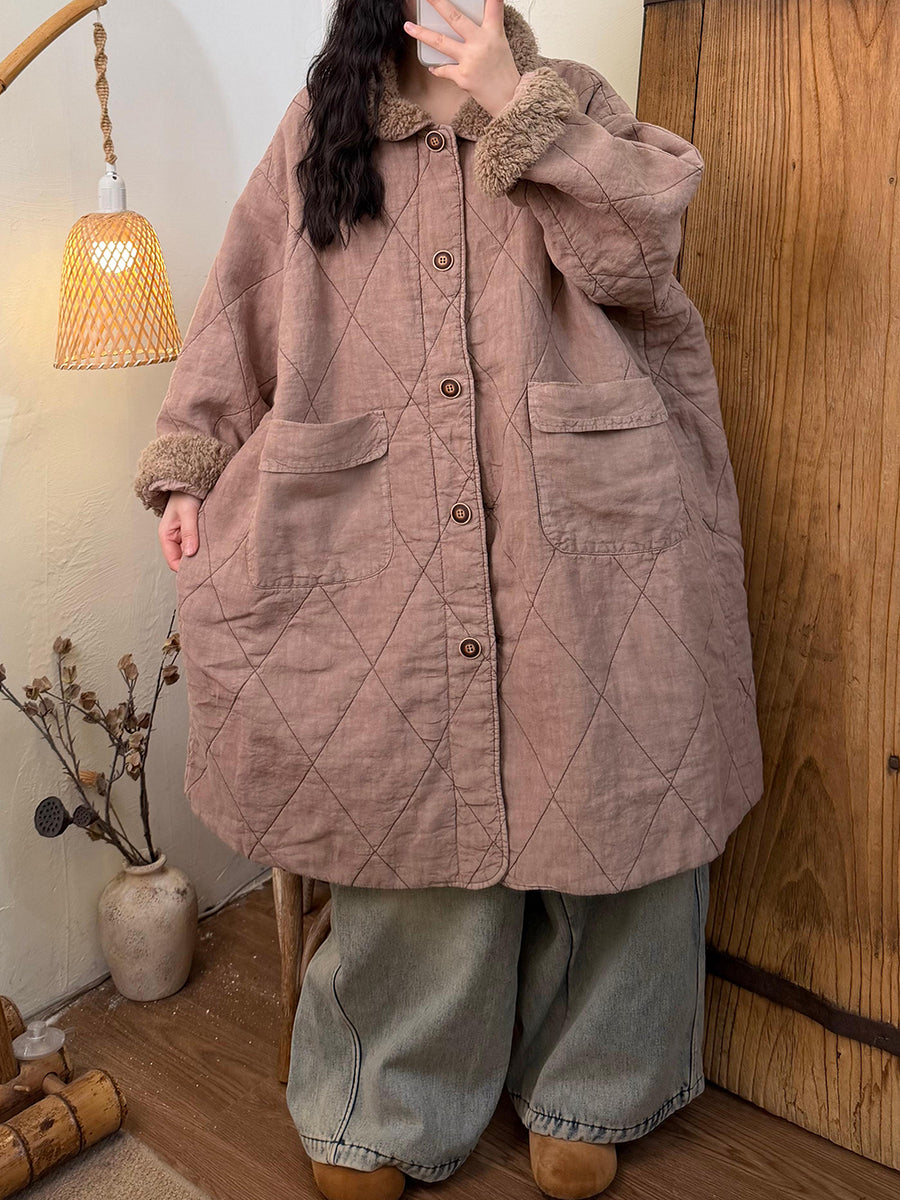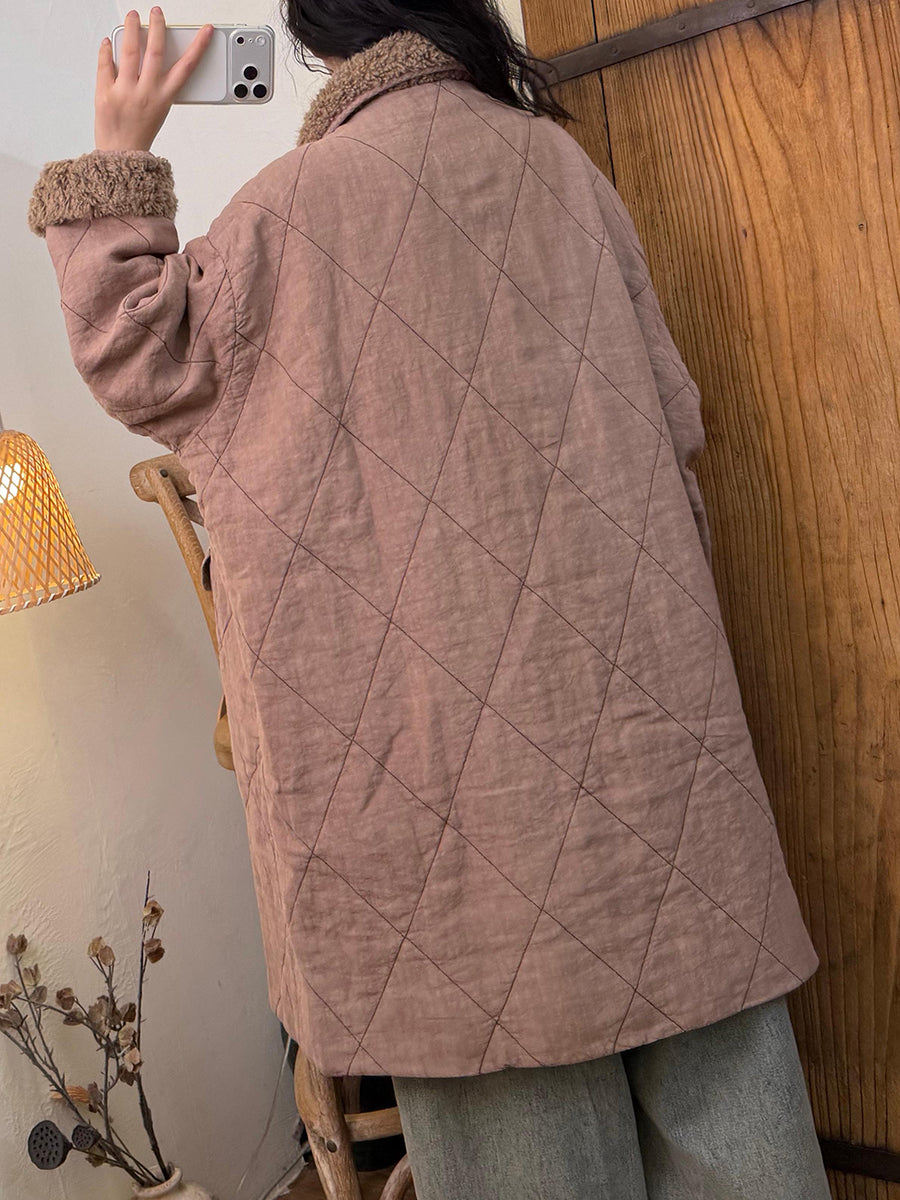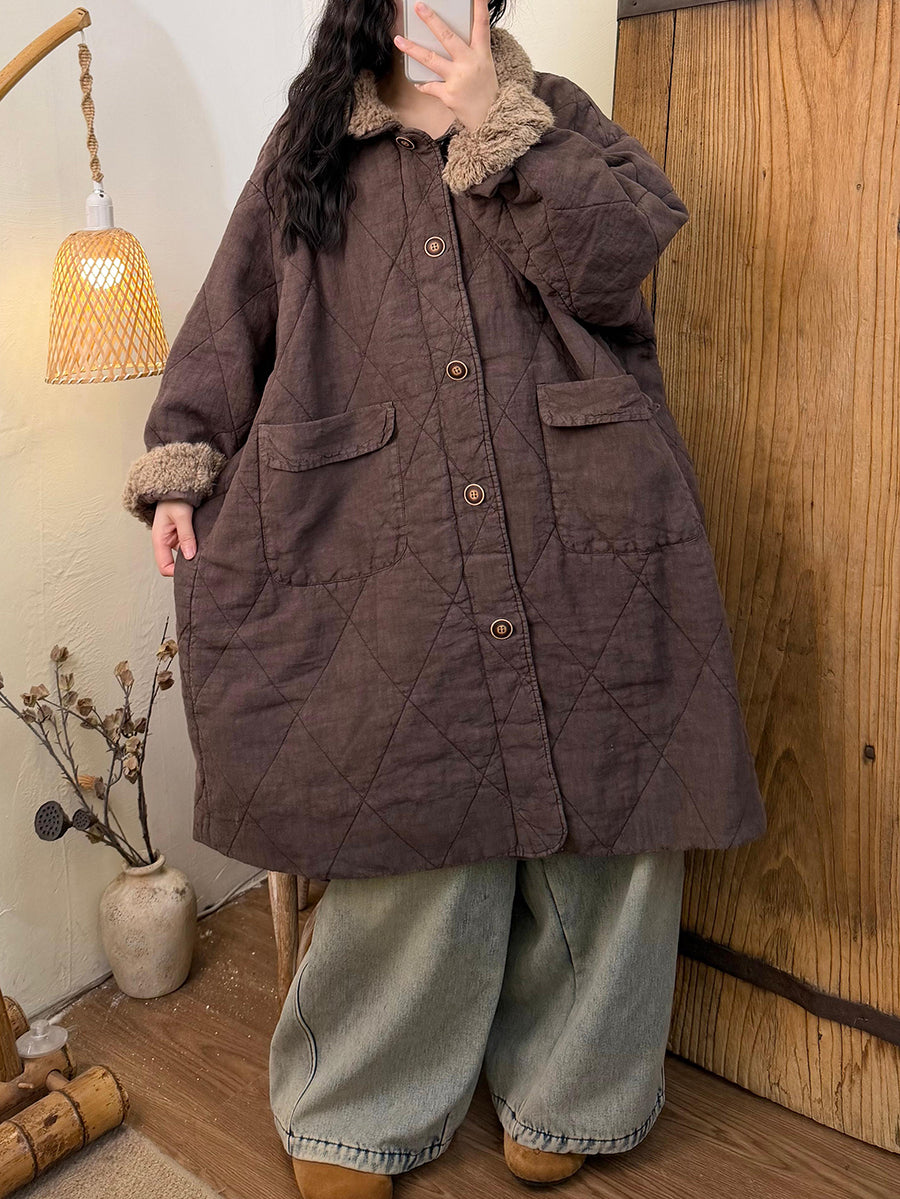 Ženski zimski karirani kaput od flisa s odloženim ovratnikom
