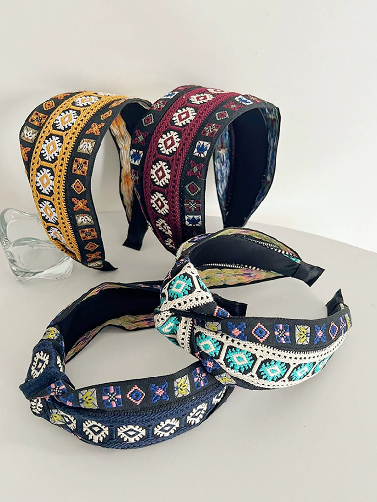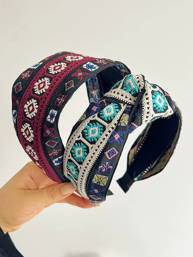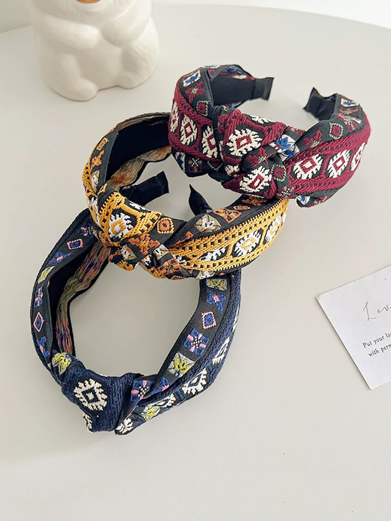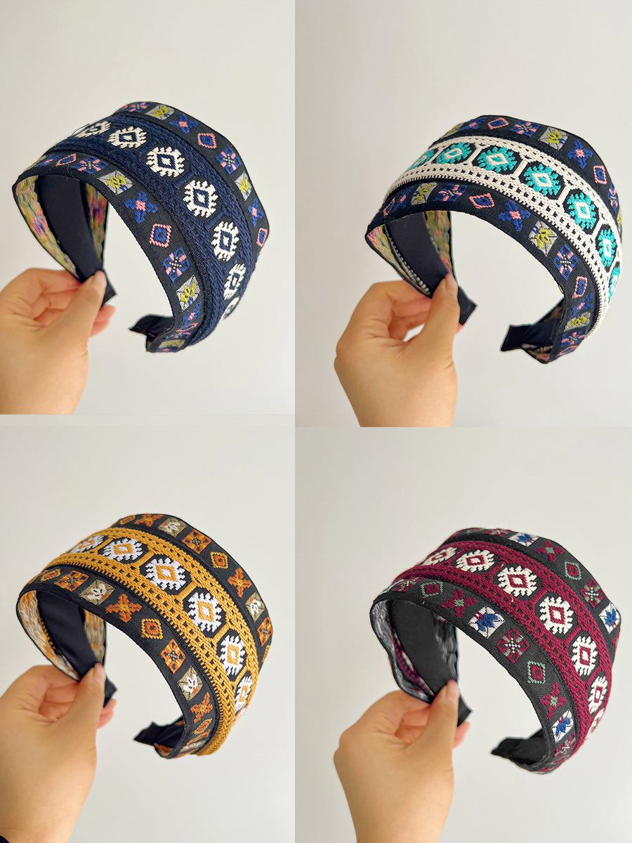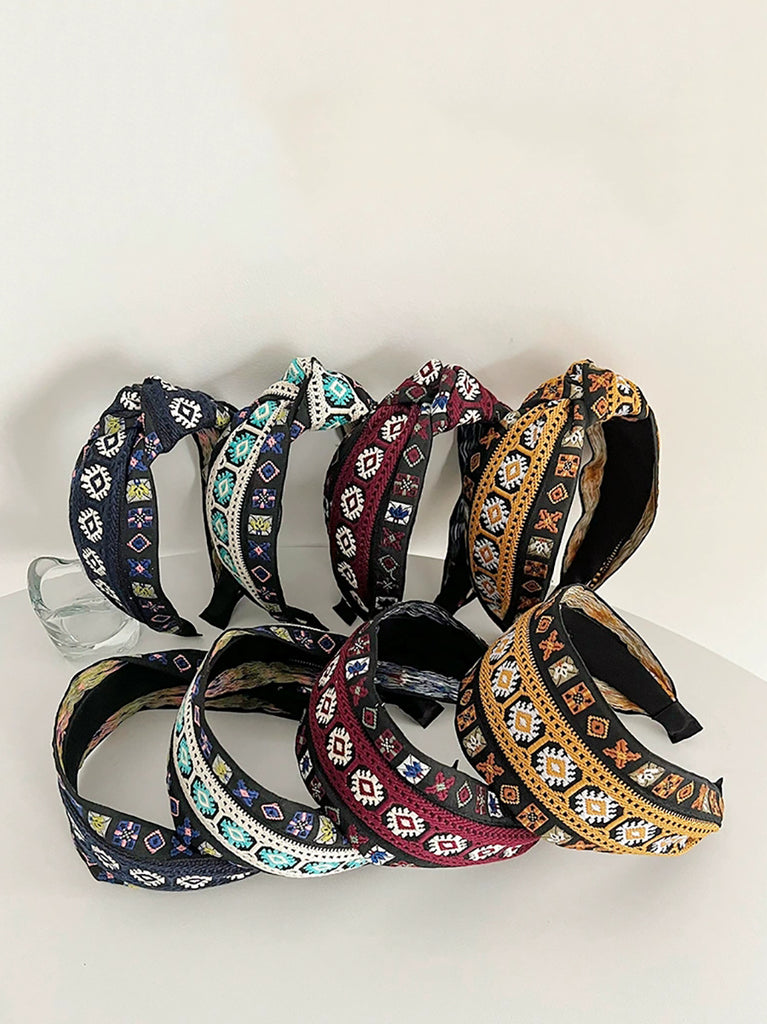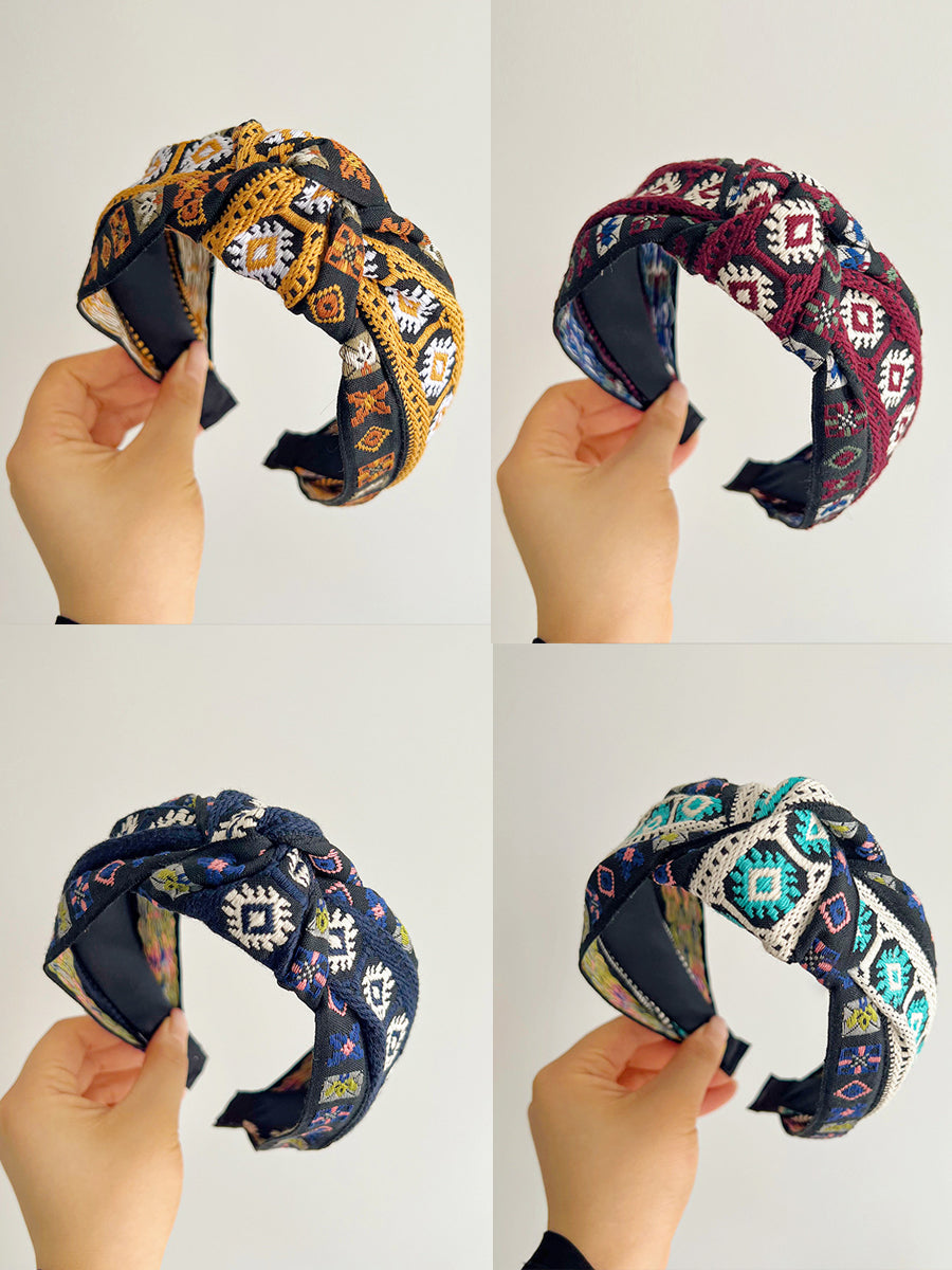 Pletena široka traka za kosu od 4 komada s umjetničkim cvjetnim uzorkom