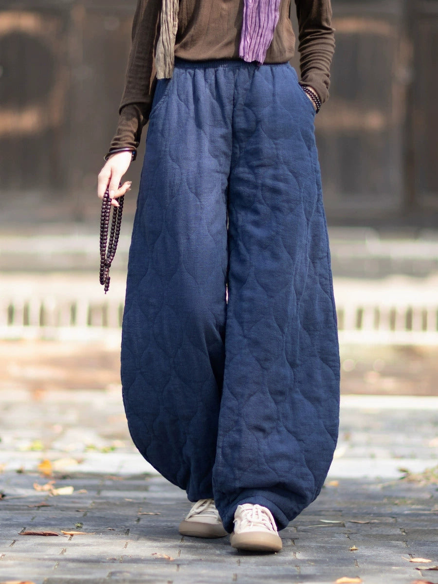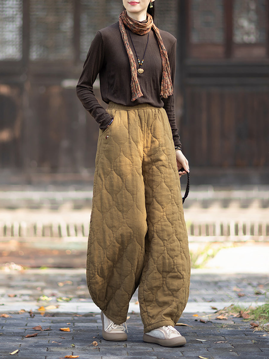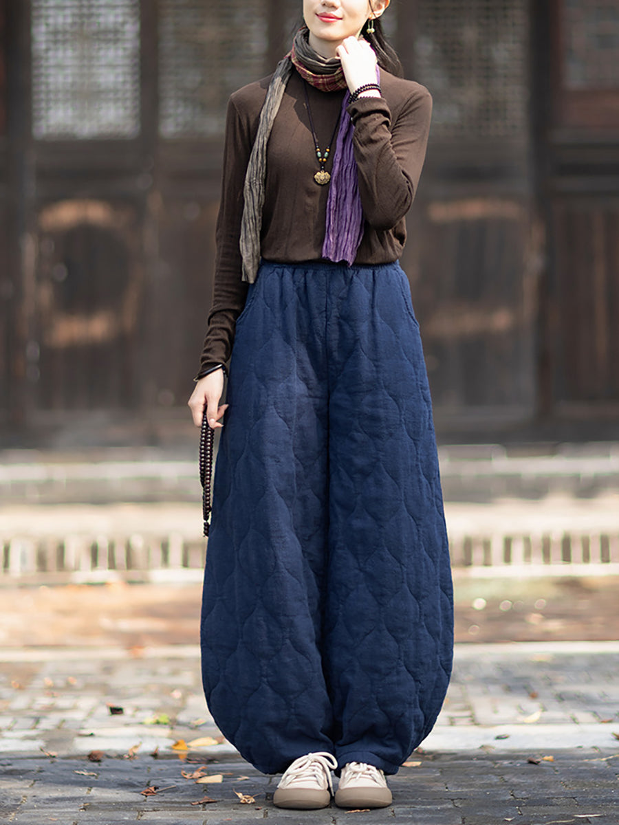 Ženske zimske retro podstavljene hlače u čistoj boji