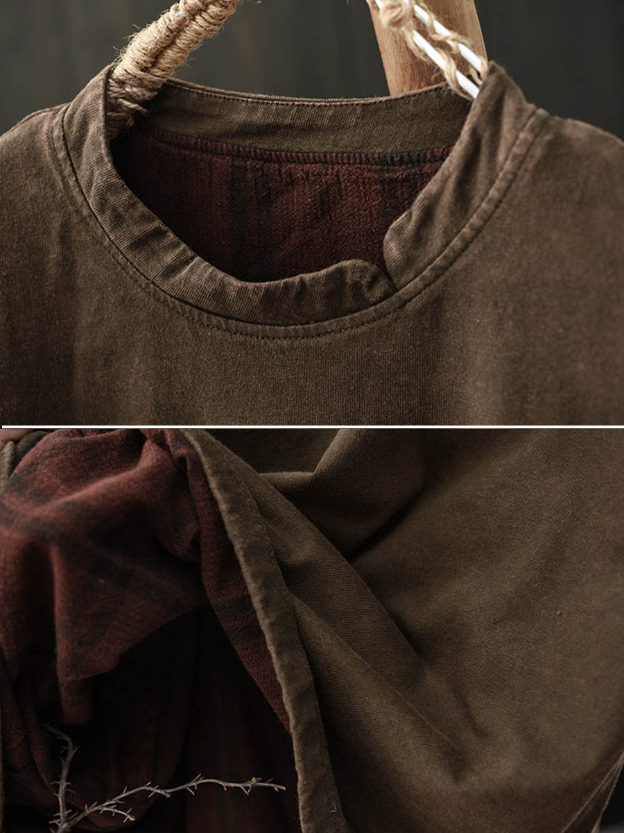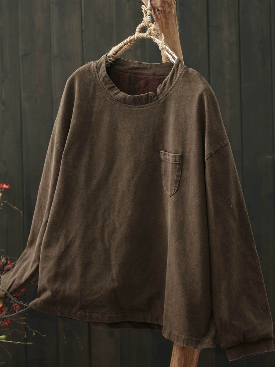 Ženska umjetnička jesenska pamučna bluza s O-izrezom u čistoj boji