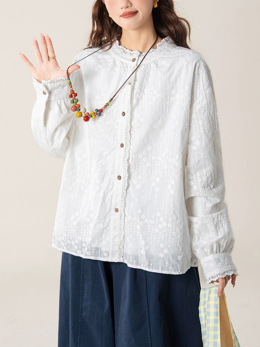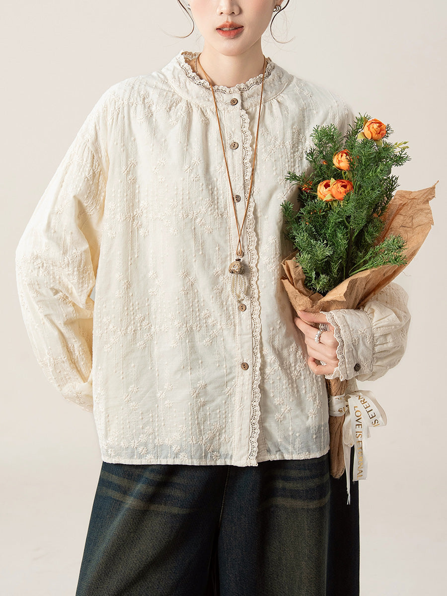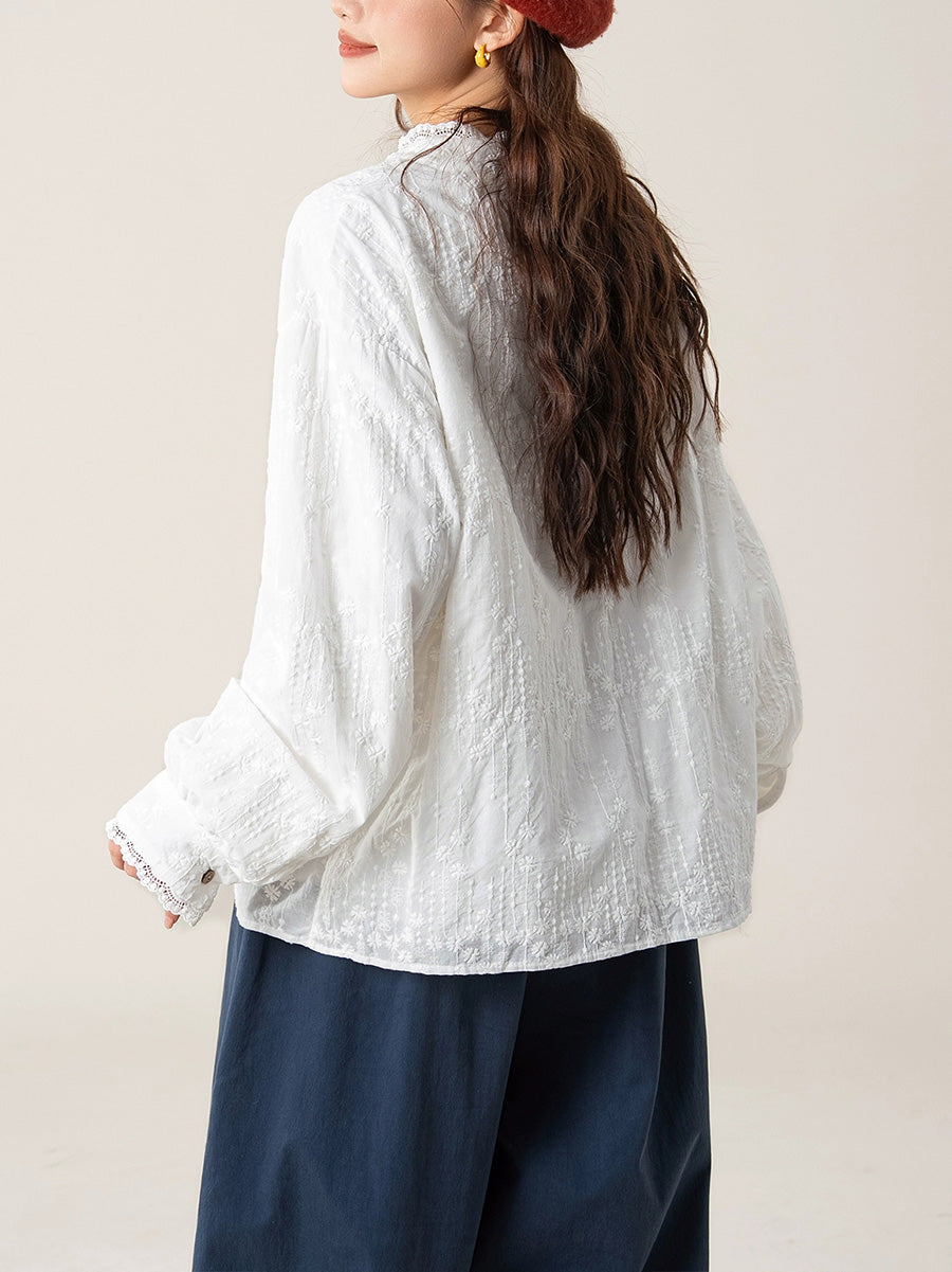 Ženska umjetnička jesenska košulja s ovratnikom i vezom