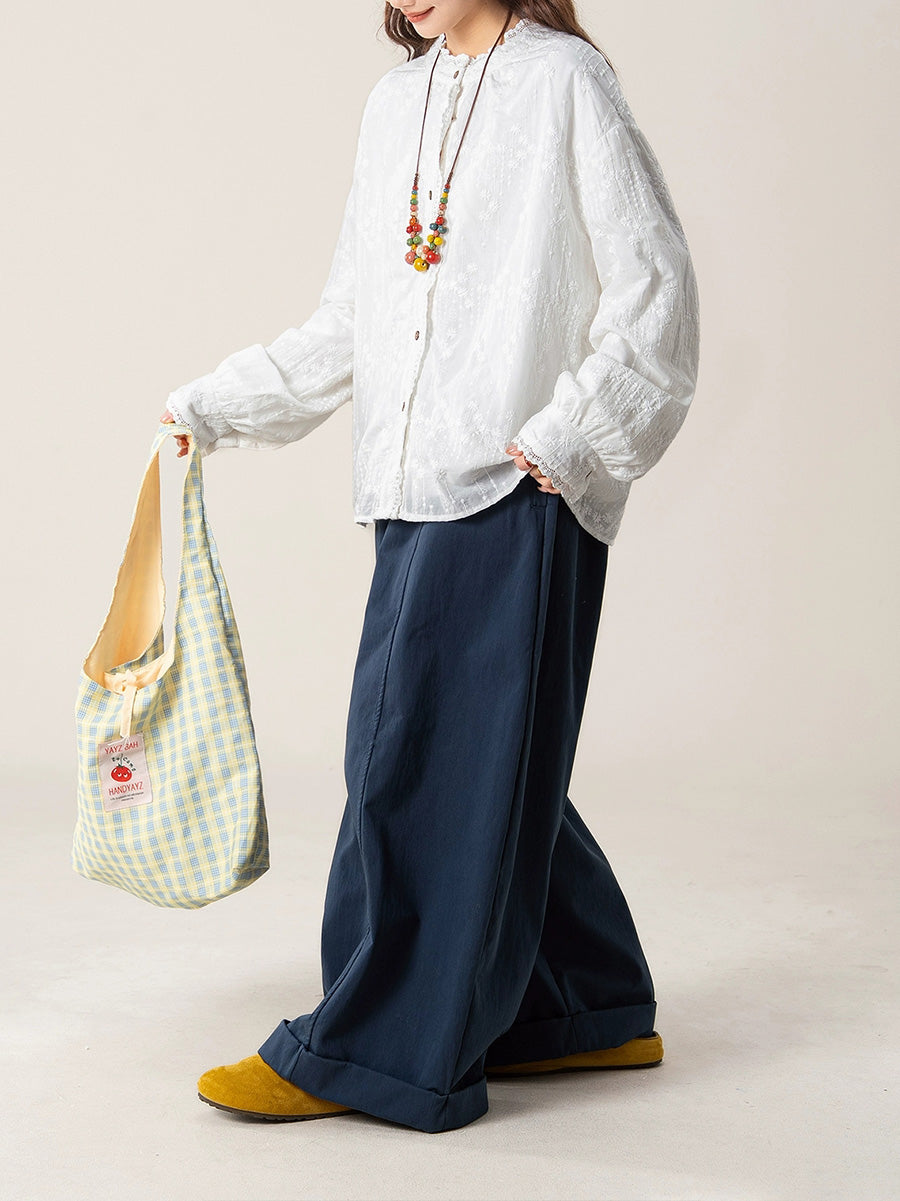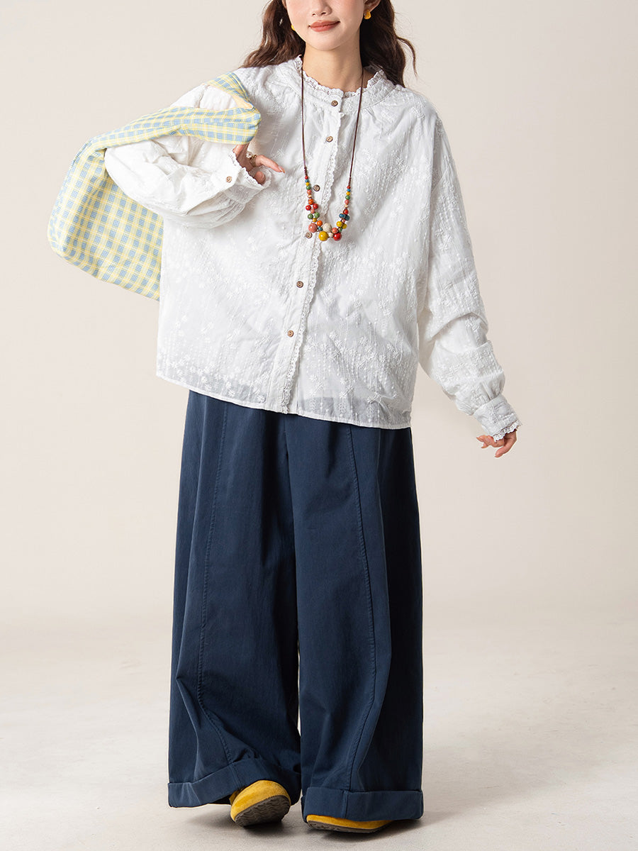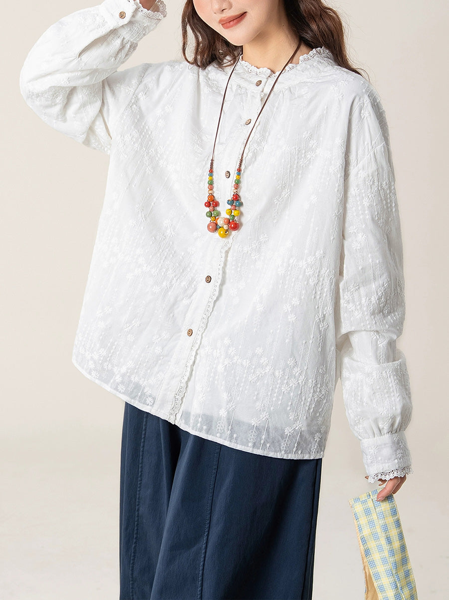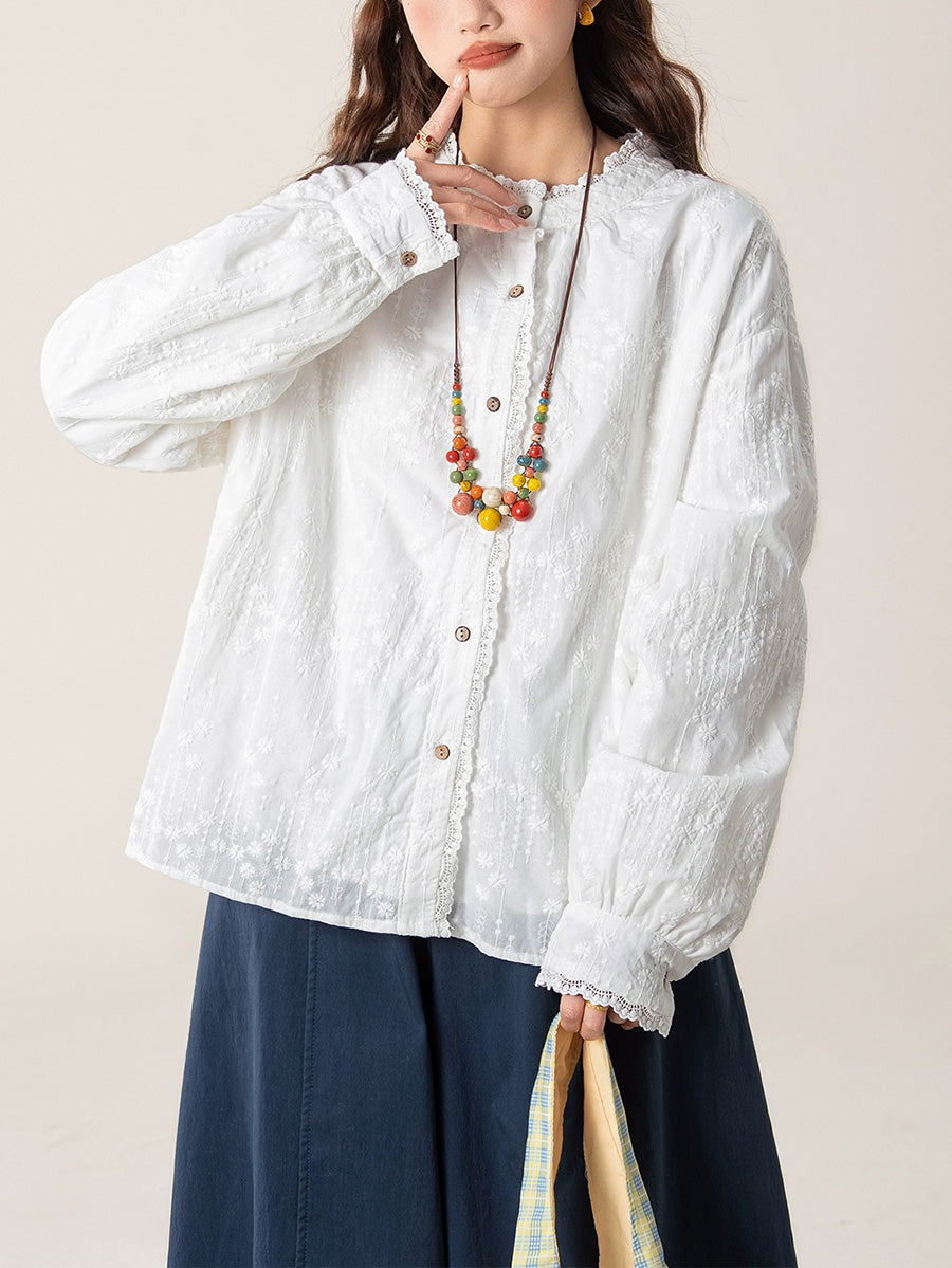 Ženska umjetnička jesenska košulja s ovratnikom i vezom