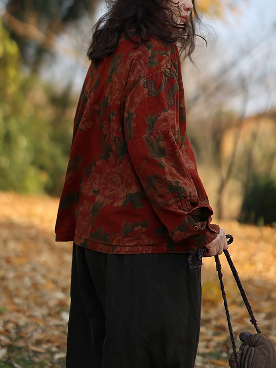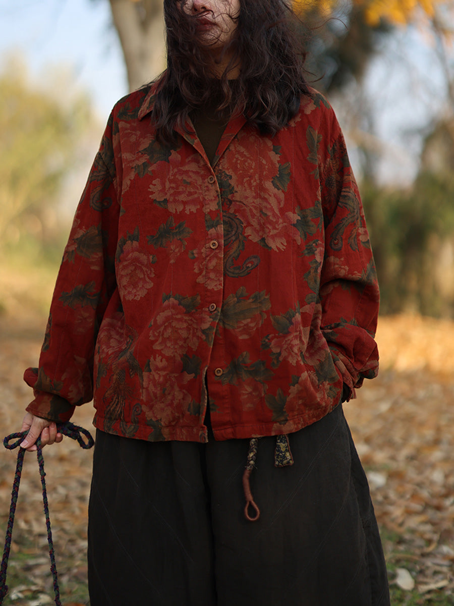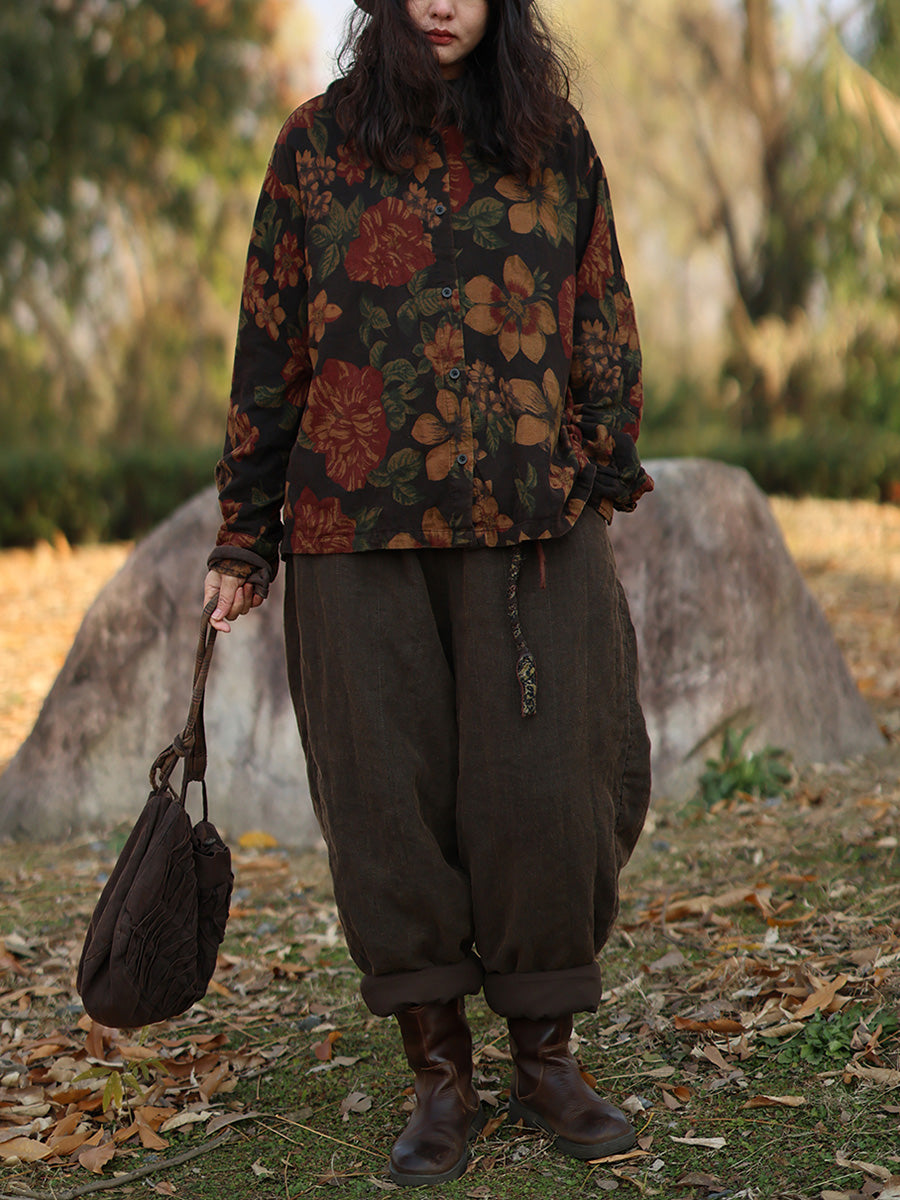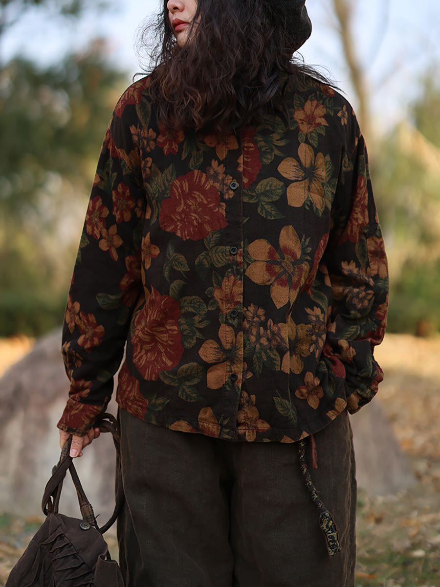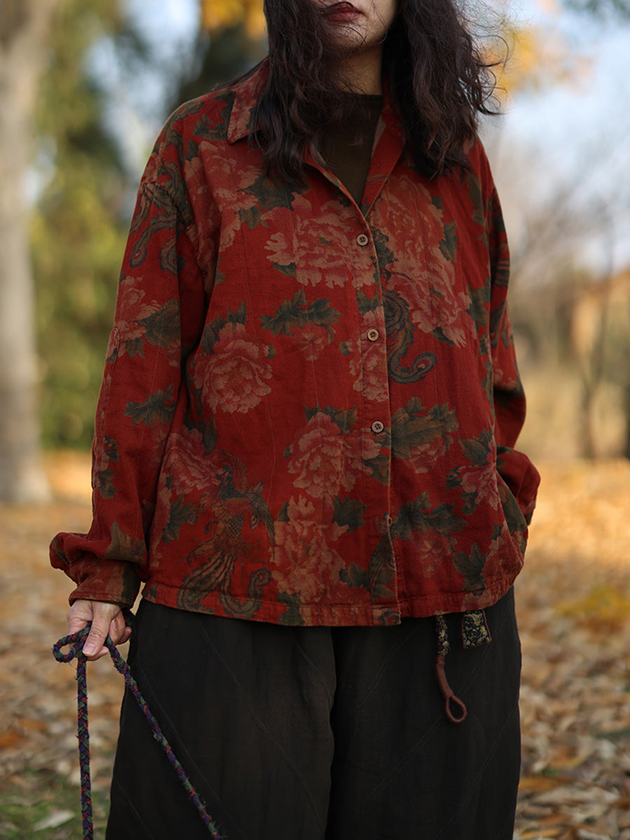 Ženska vintage jesenska košulja s ovratnikom i cvjetnim uzorkom, 100% pamuk