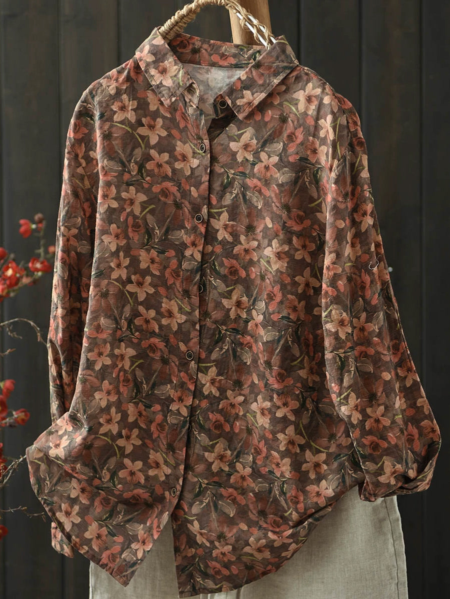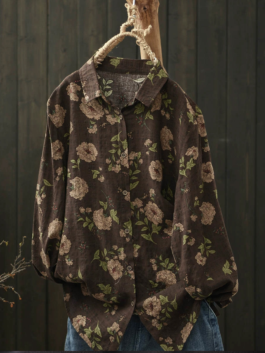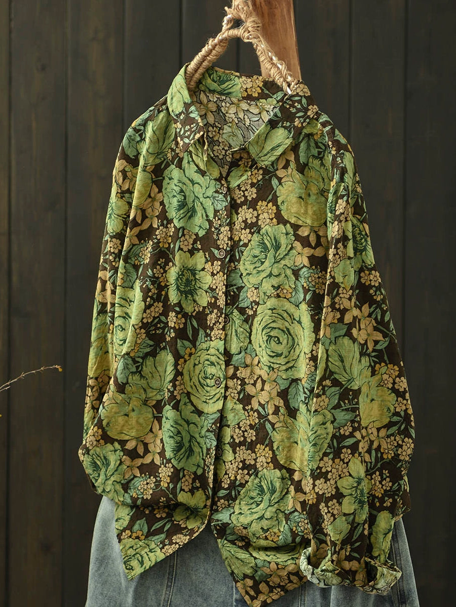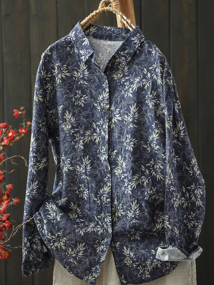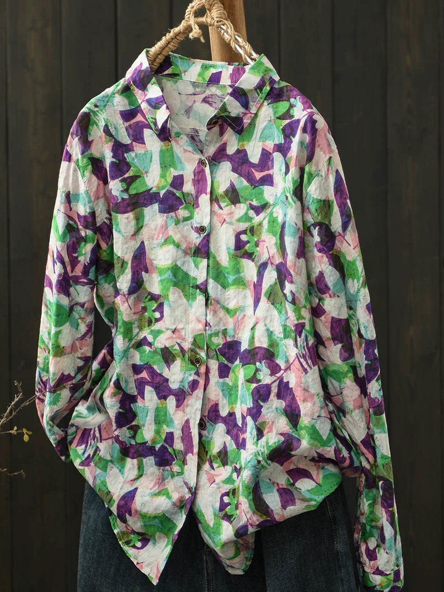 Ženska umjetnička pamučna bluza s ovratnikom i proljetnim cvijećem