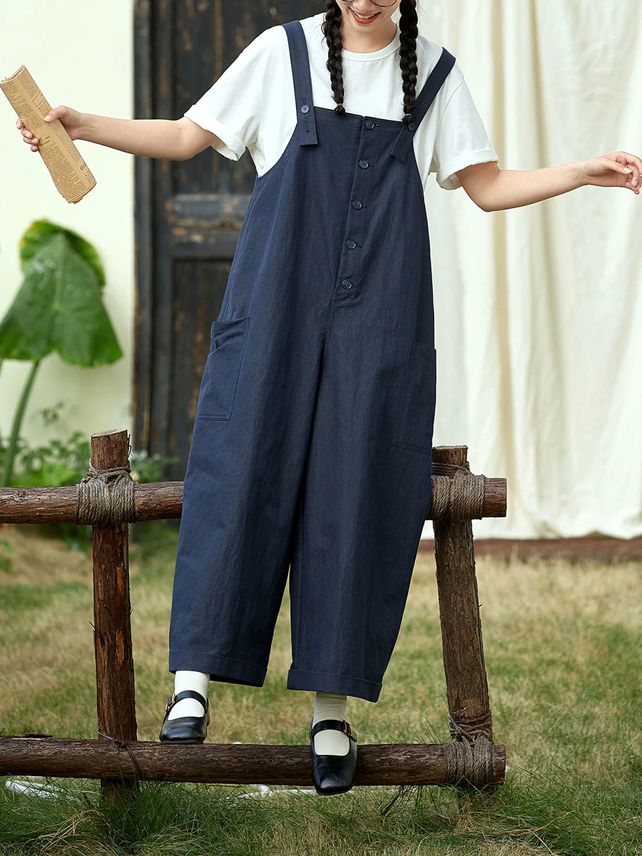 Ženski ležerni proljetni pamučni kombinezoni čistih boja