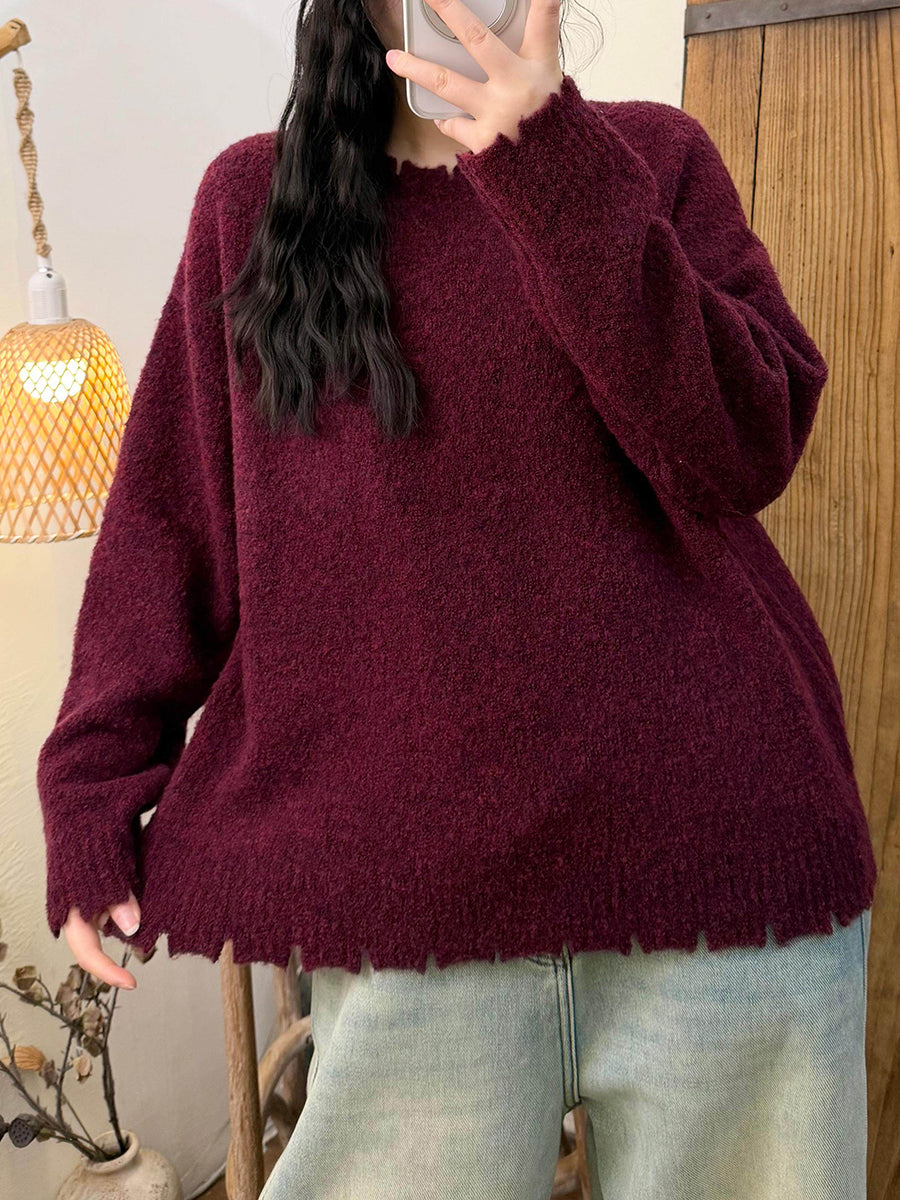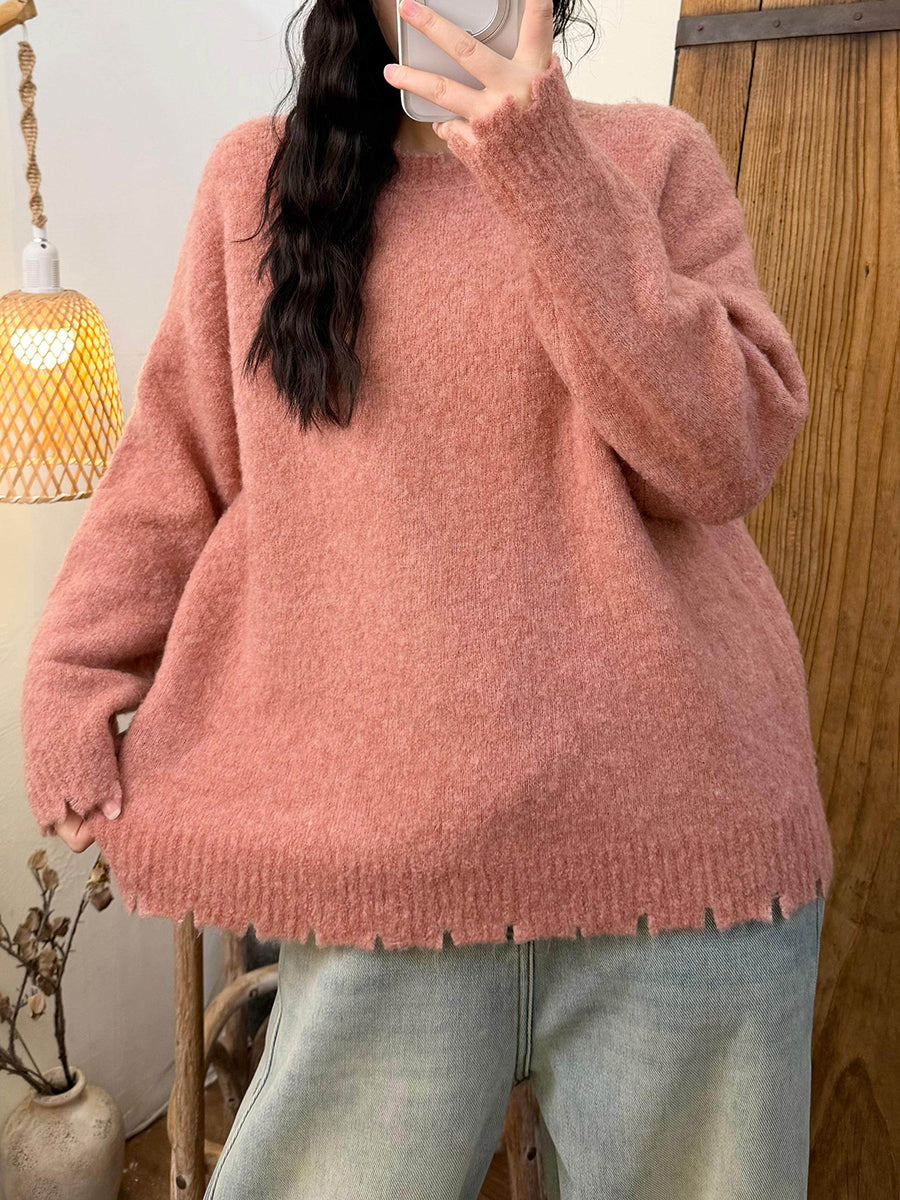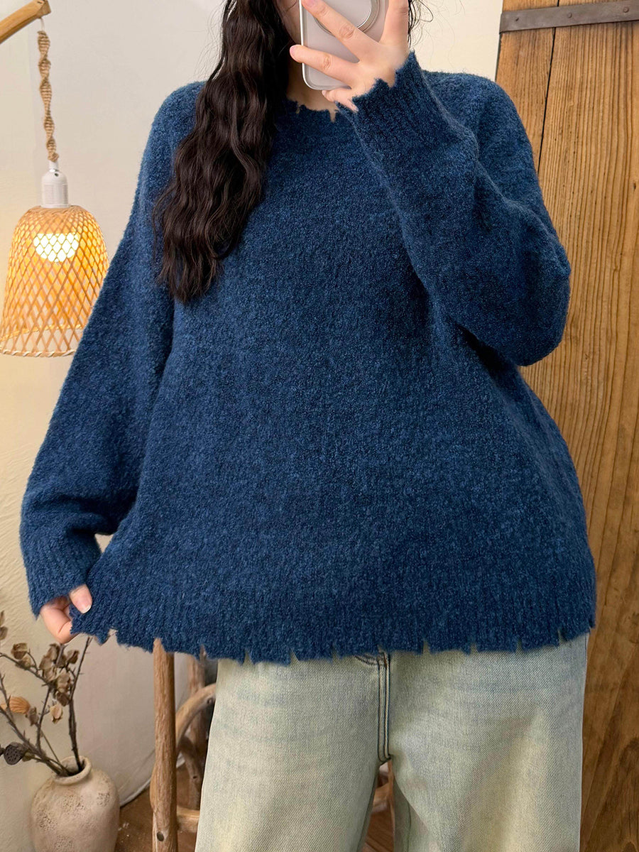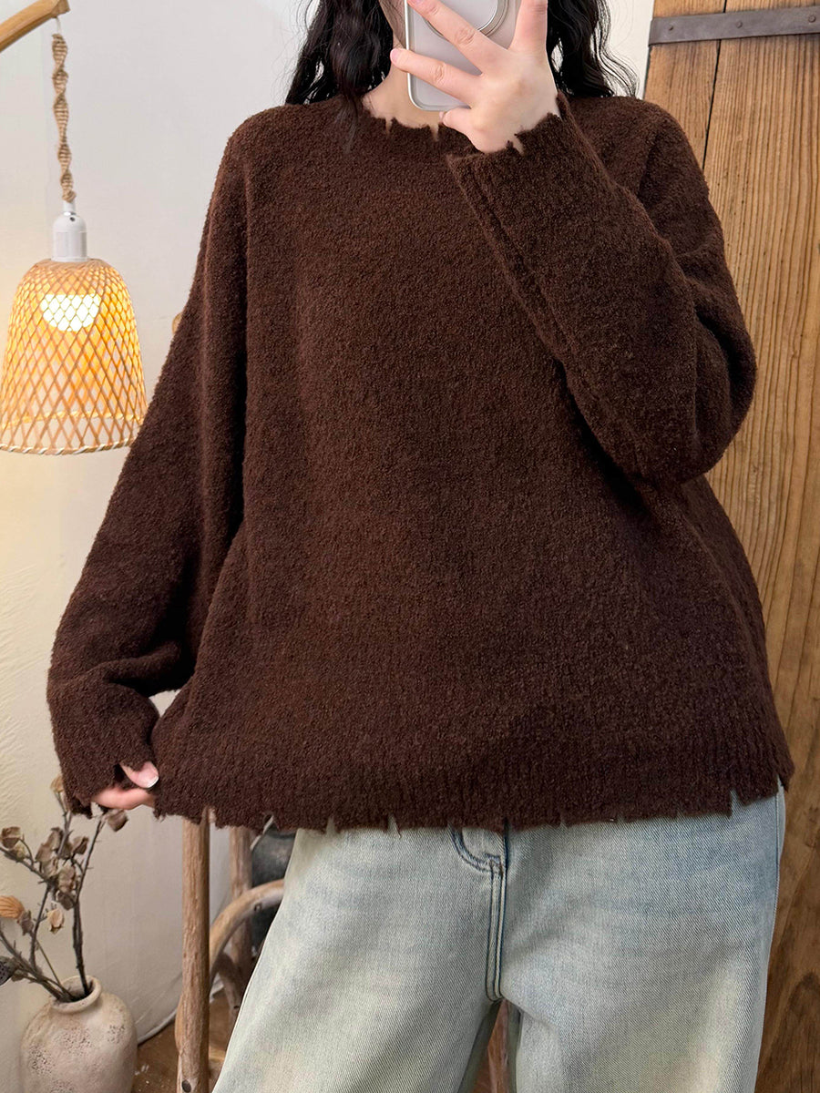 Ženski zimski retro pulover s O-izrezom u čistoj boji