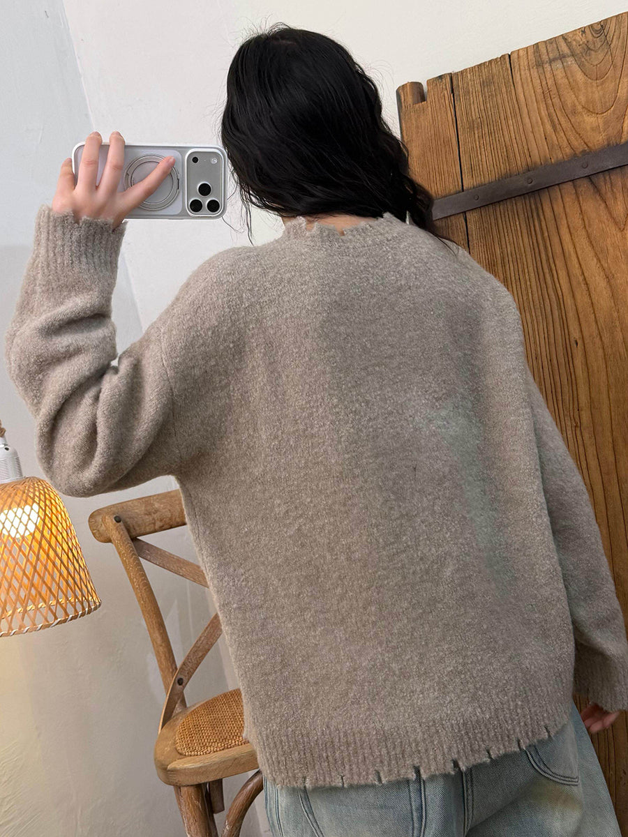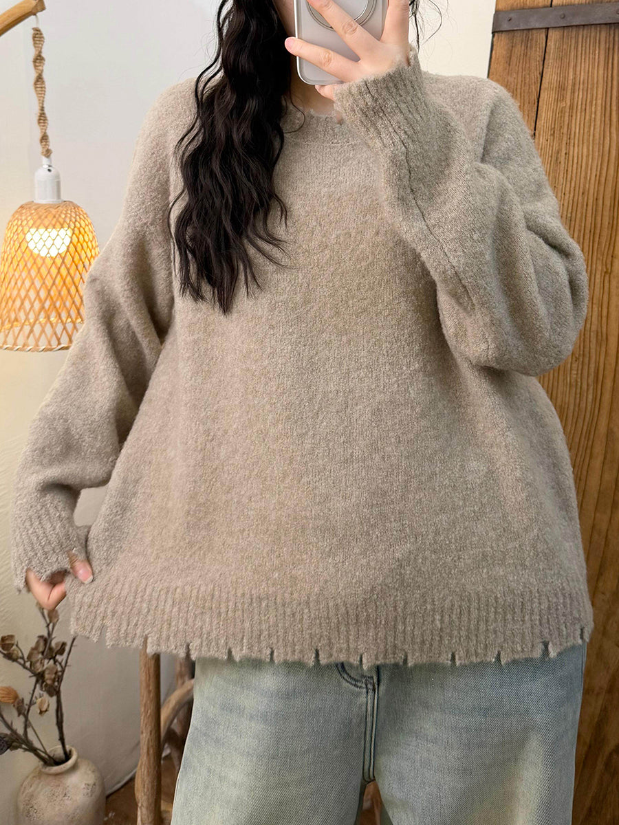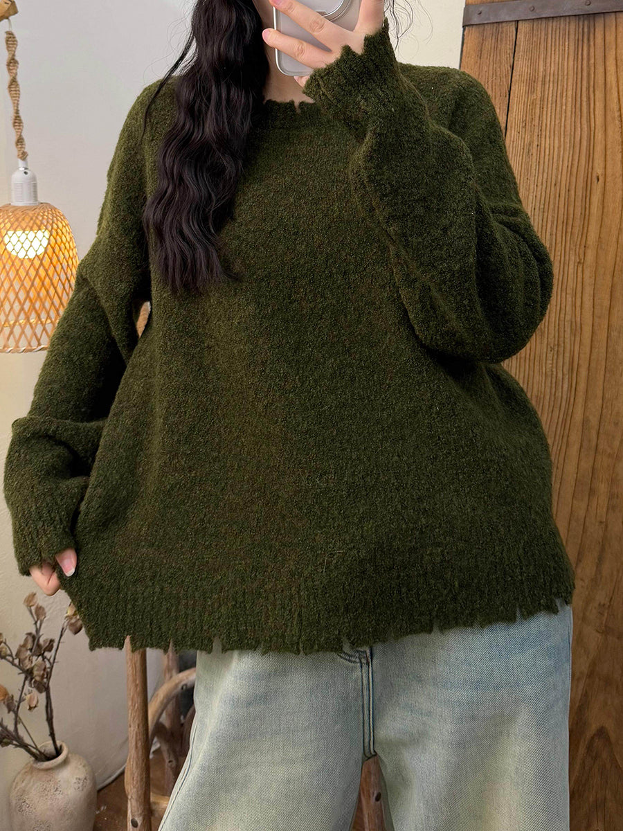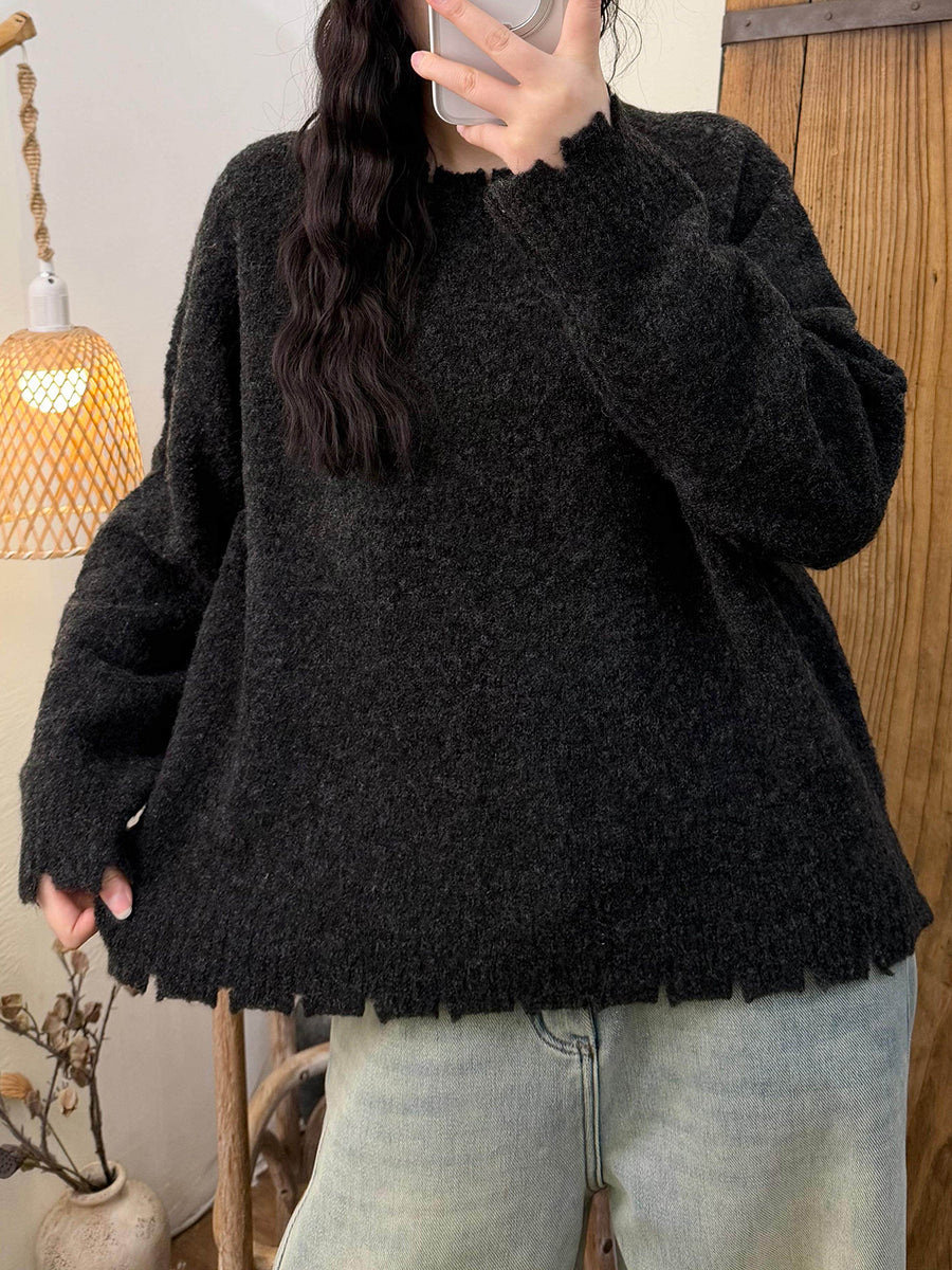 Ženski zimski retro pulover s O-izrezom u čistoj boji