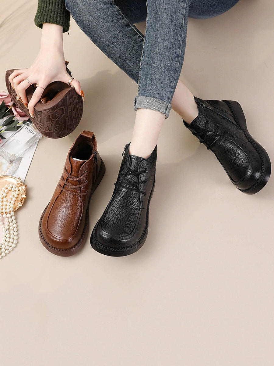 Ženske zimske čizme do gležnjeva od prave kože s flis podstavom