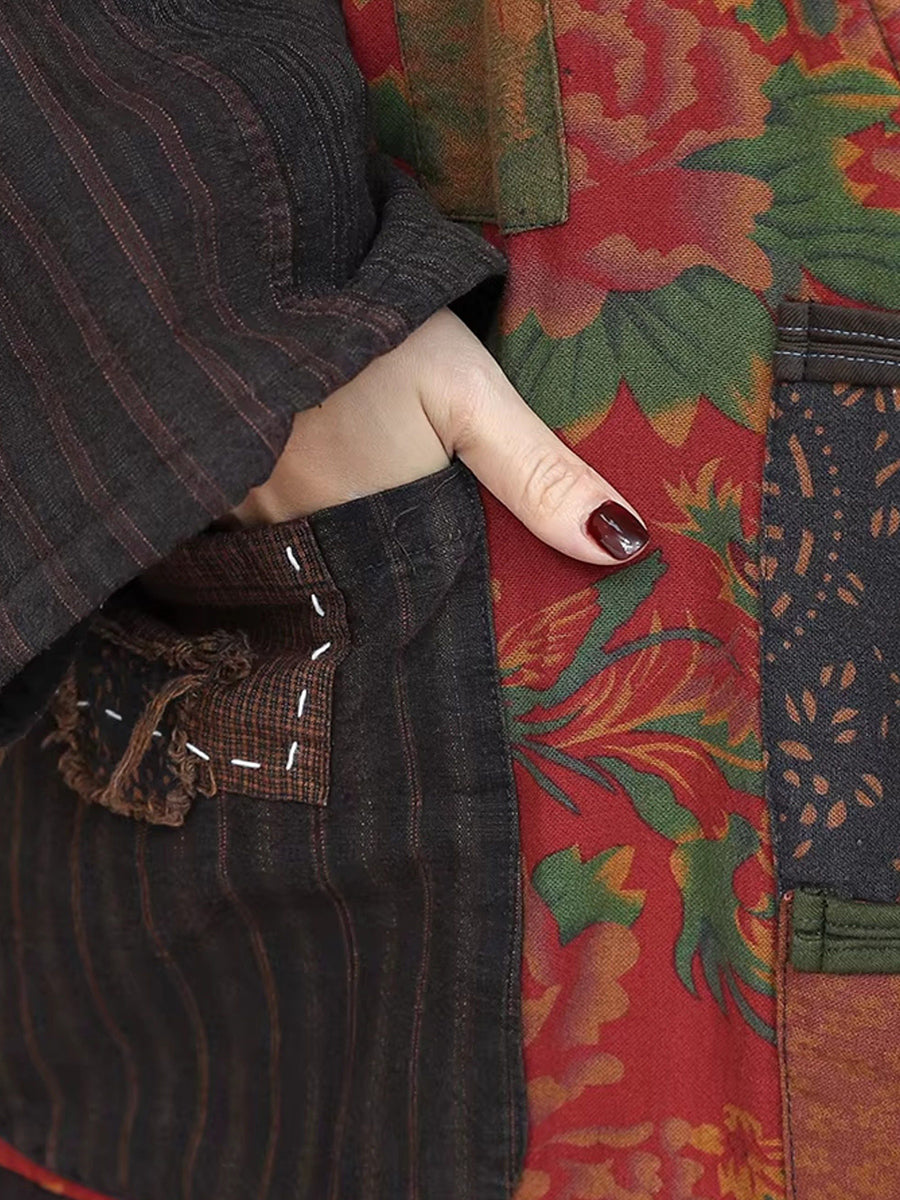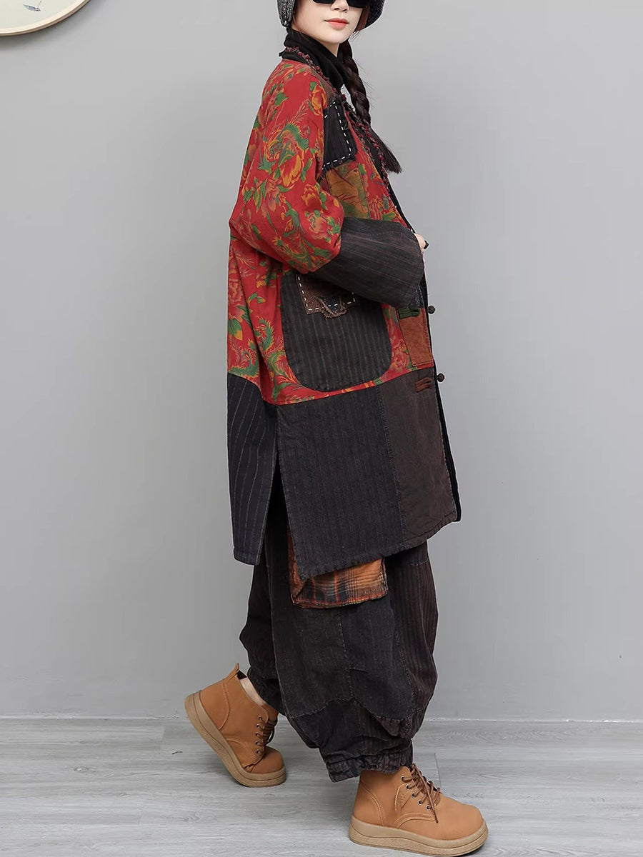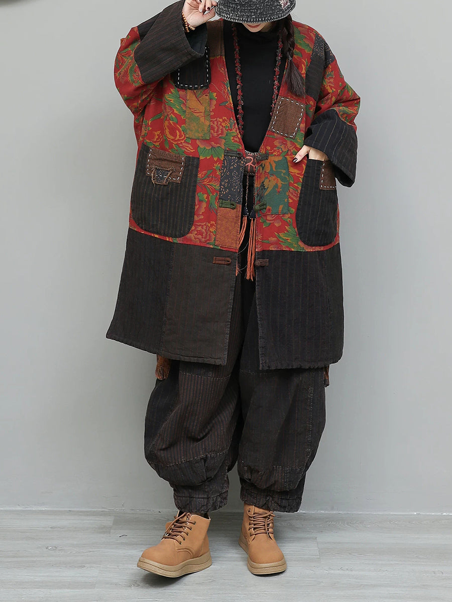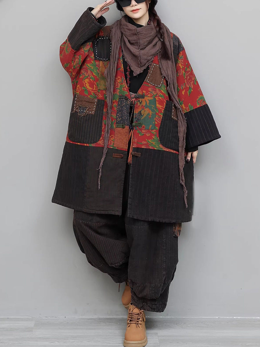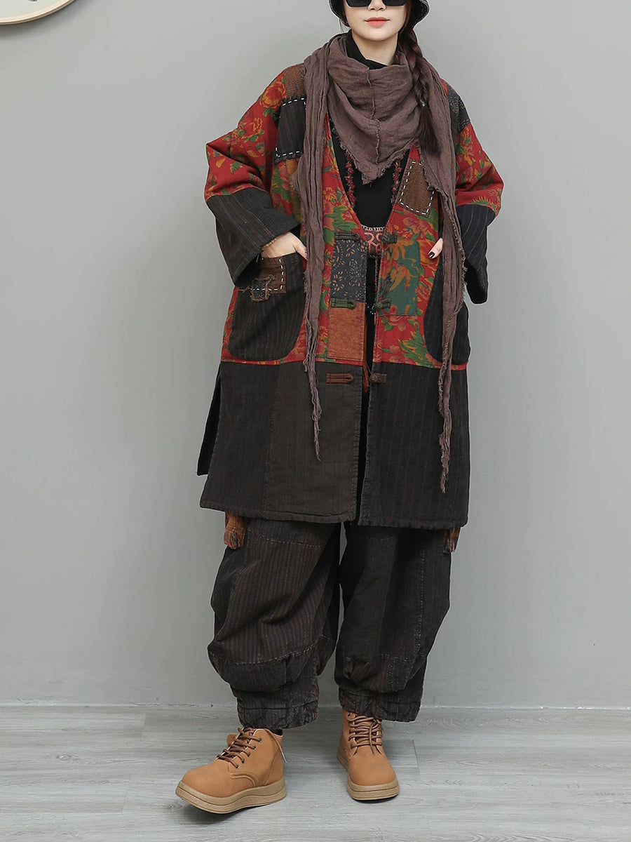 Ženska zimska odijela s etničkim zakrpama i V-izrezom s podstavom