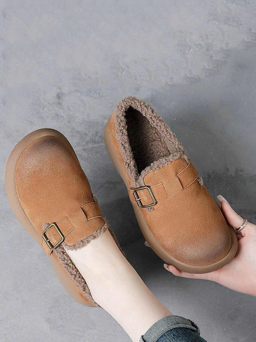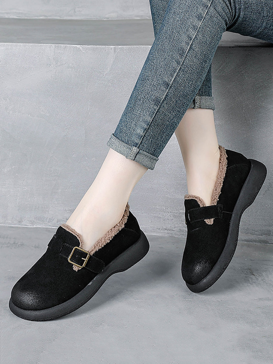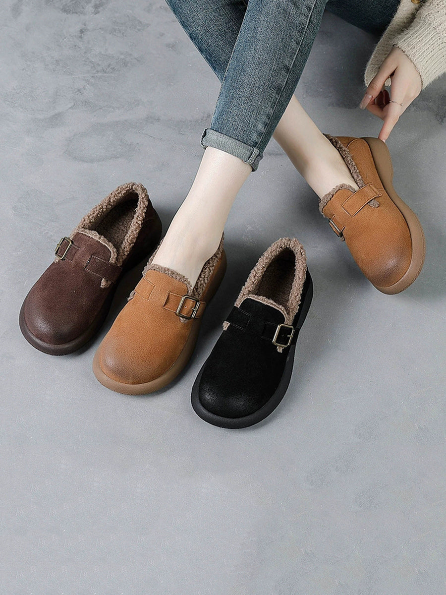 Ženske zimske cipele na platformu od prave kože s flis podstavom