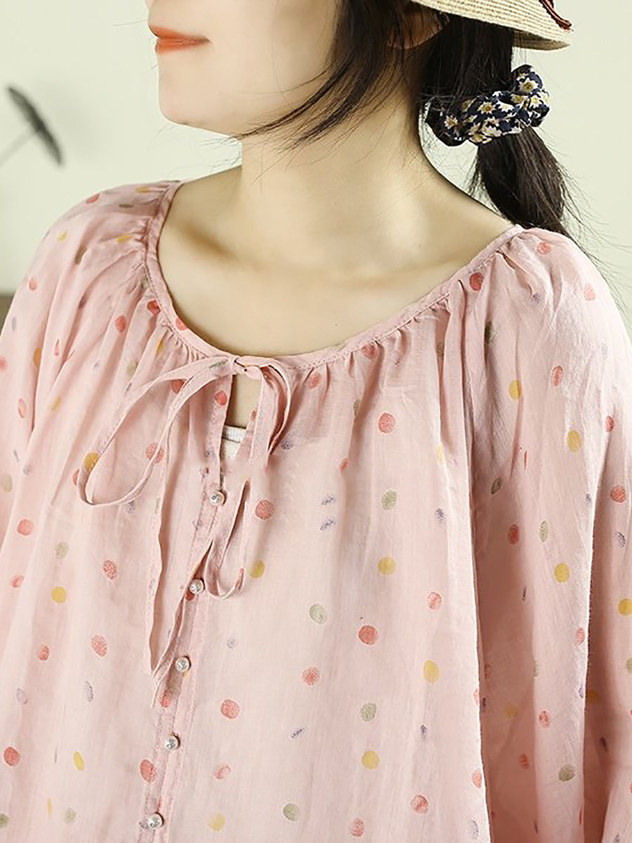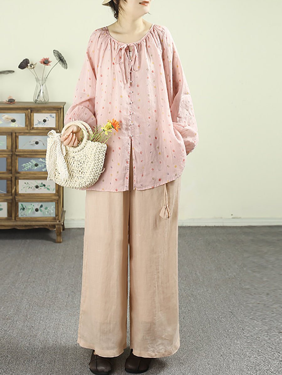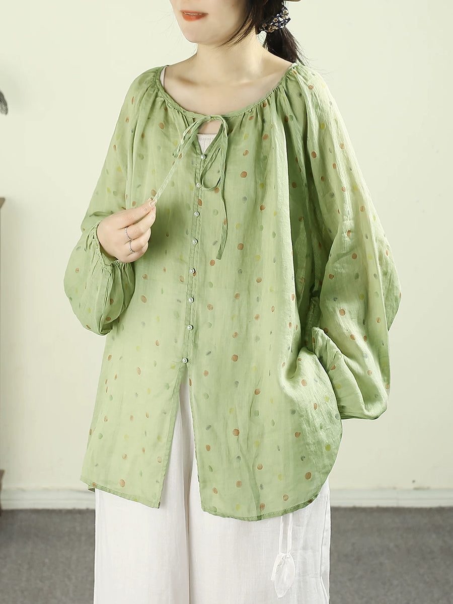 Ženska umjetnička proljetna košulja s O-izrezom od 100% ramije