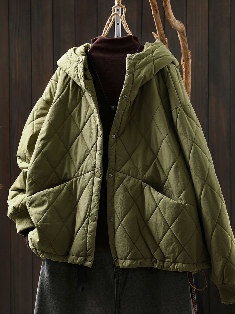 Ženska jesenska ležerna podstavljena jakna s kapuljačom u čistim bojama