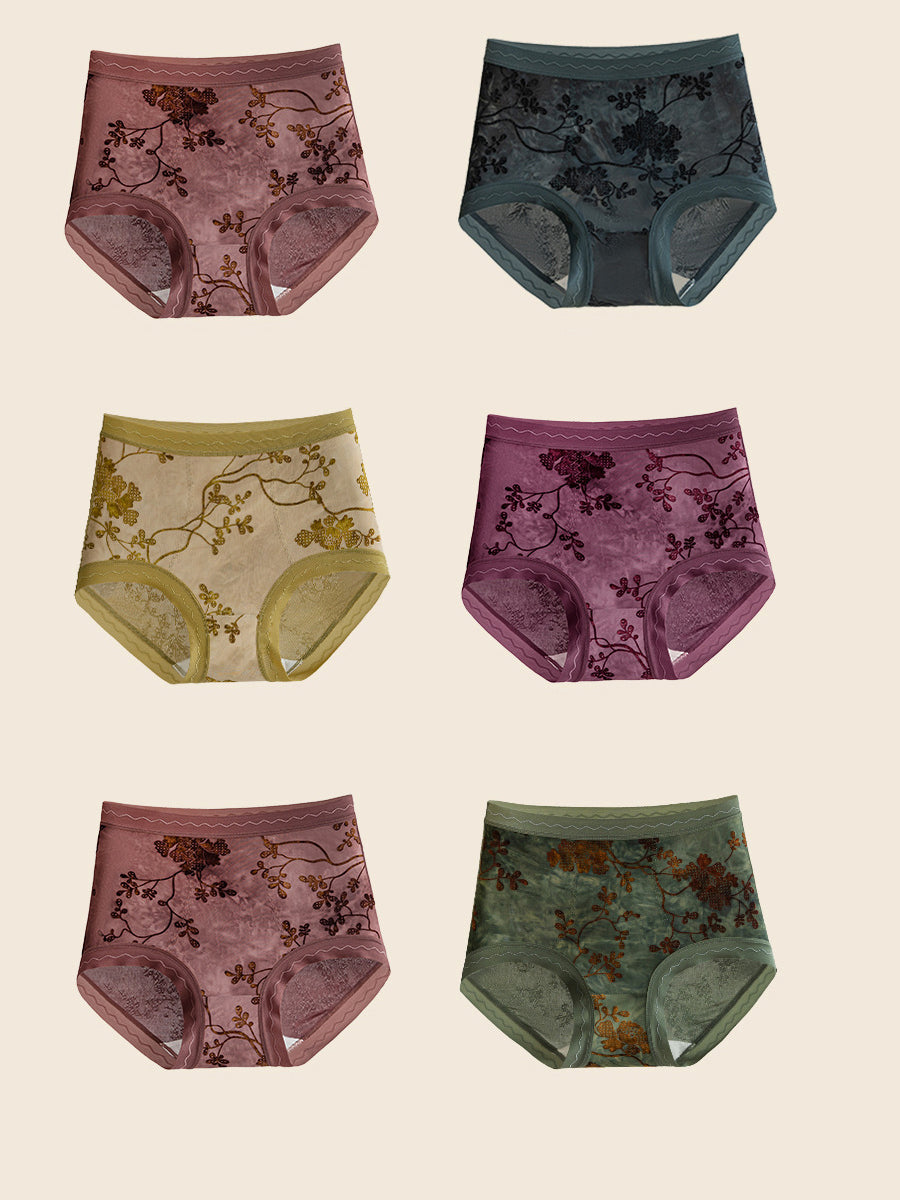 Žensko donje rublje visokog struka s cvjetnim žakard uzorkom, 6 komada