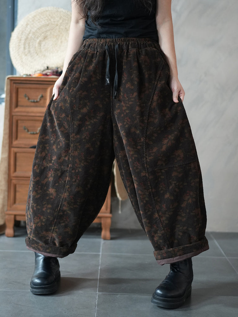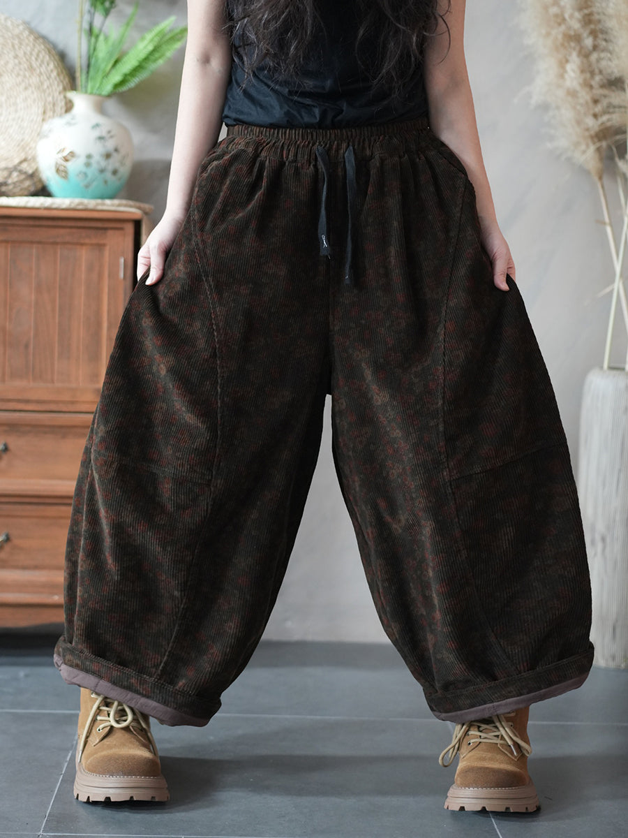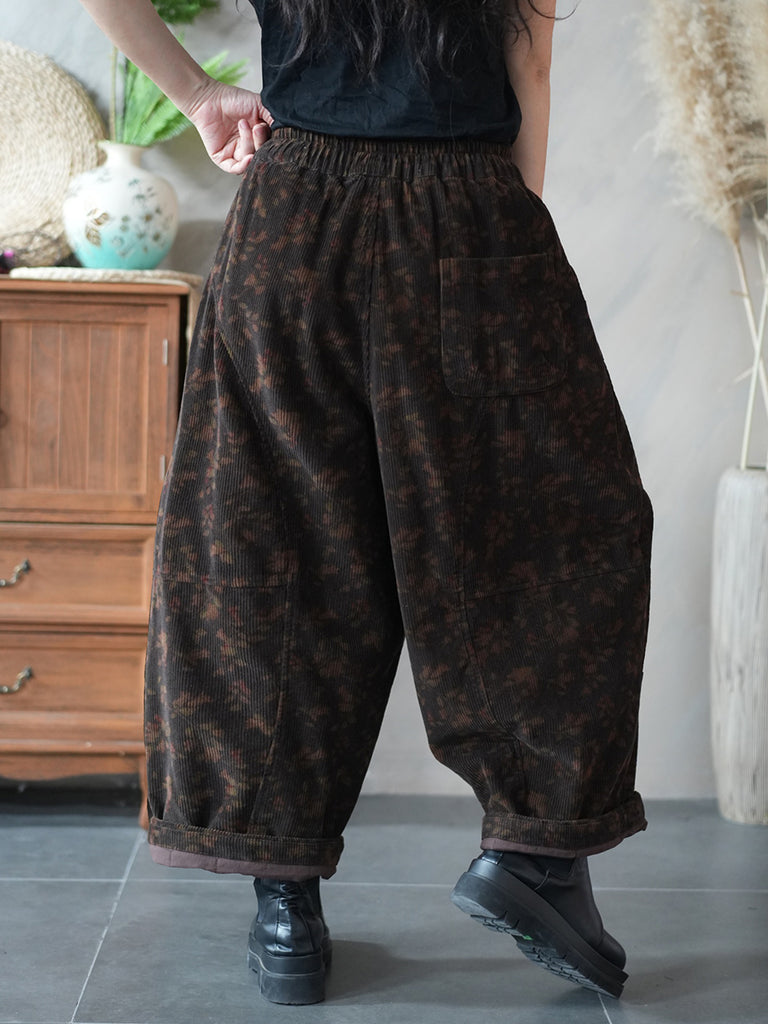 Ženske zimske retro cvjetne kordurojske harem hlače