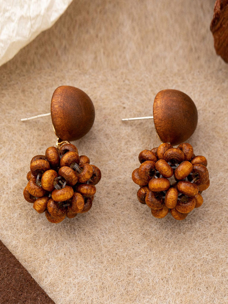Ženske vintage naušnice s cvijetom od drvenih perli s kvadratnim uzorkom