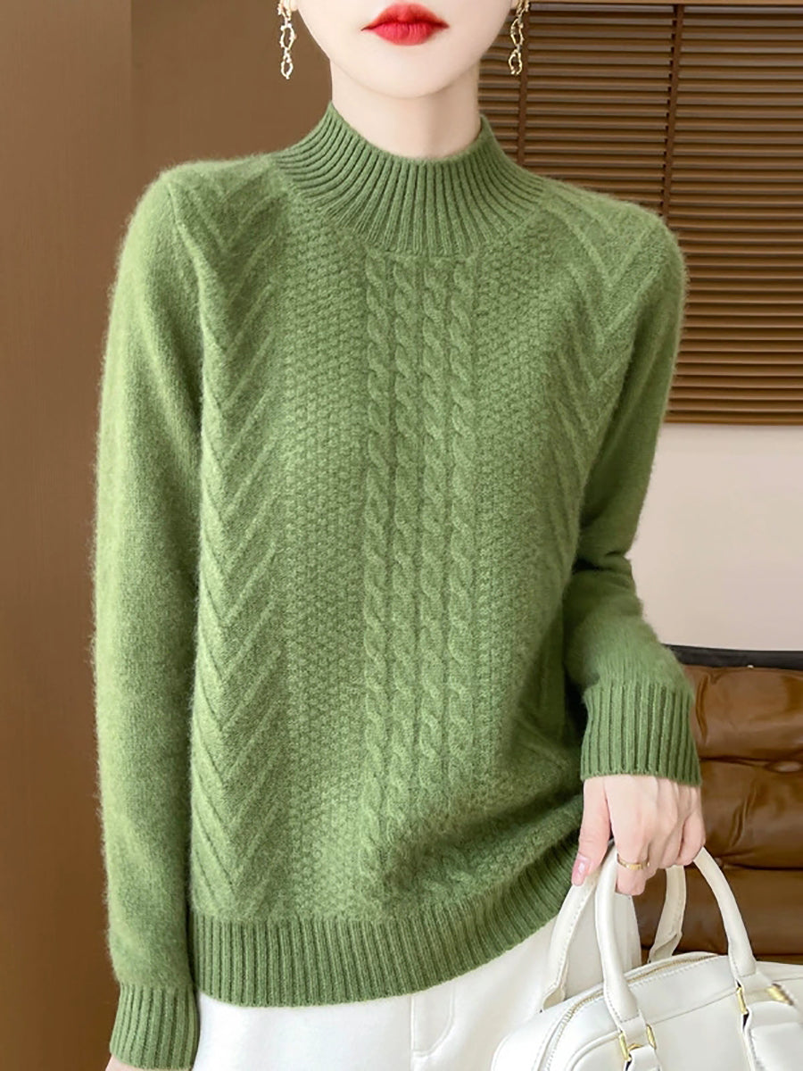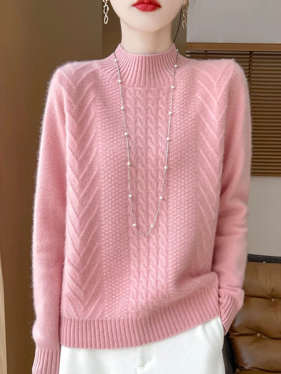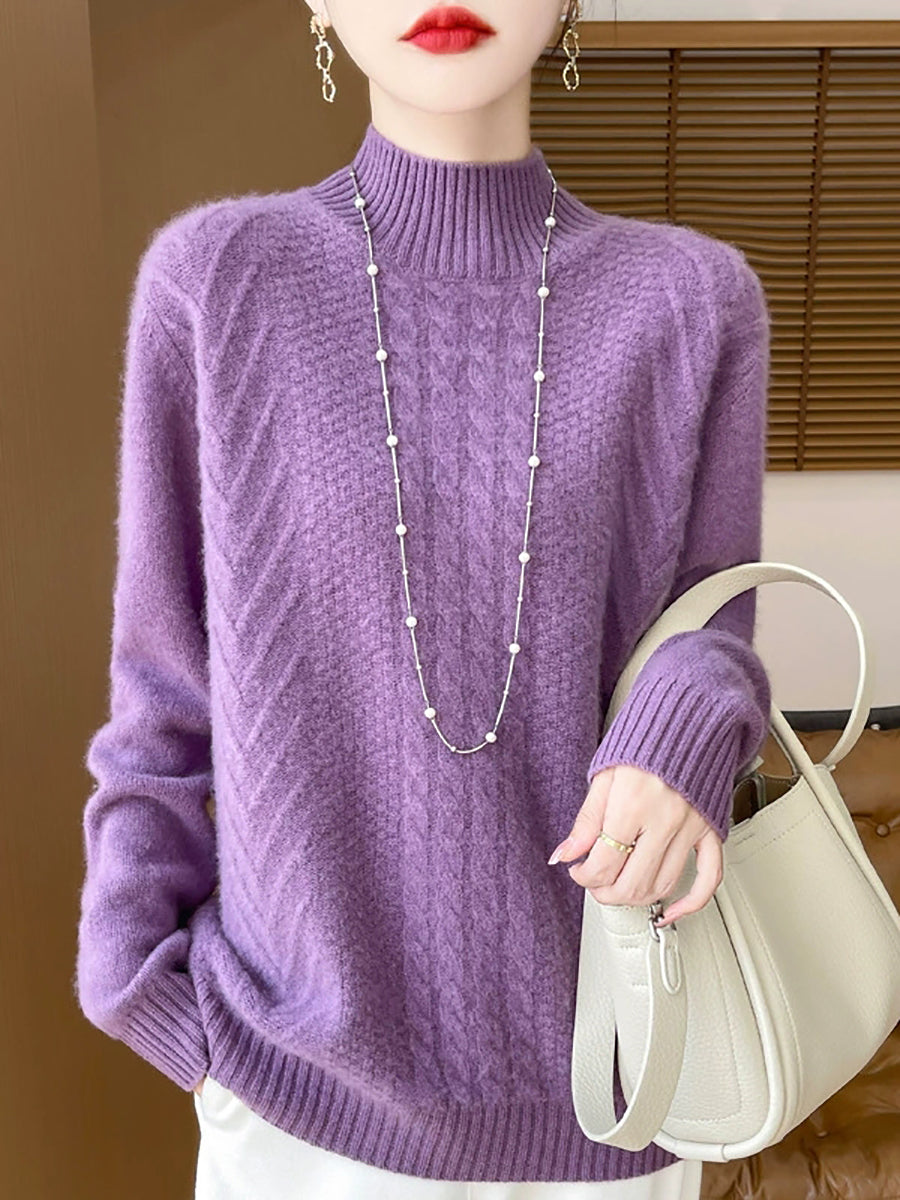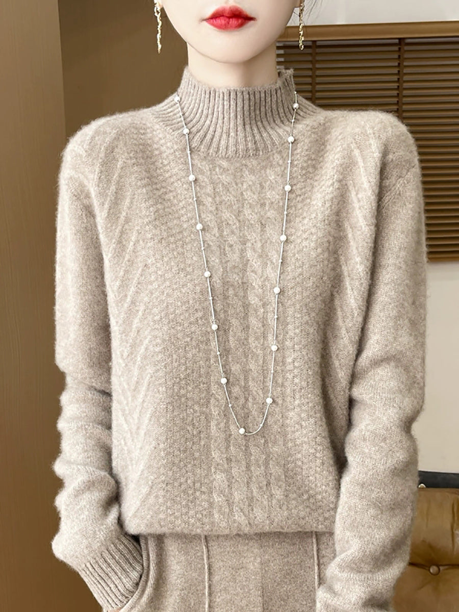 Ženski ležerni proljetni pleteni pulover s polu-rolkom