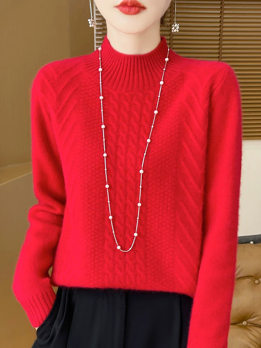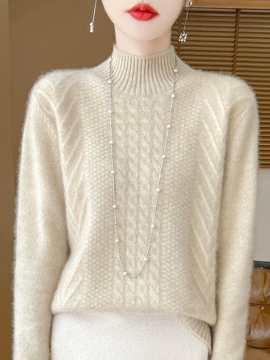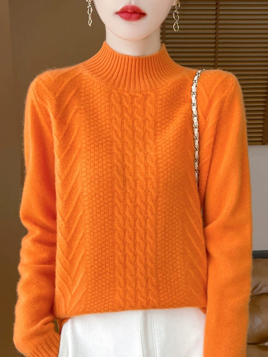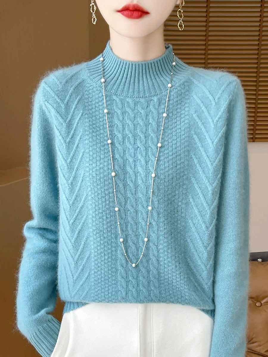 Ženski ležerni proljetni pleteni pulover s polu-rolkom
