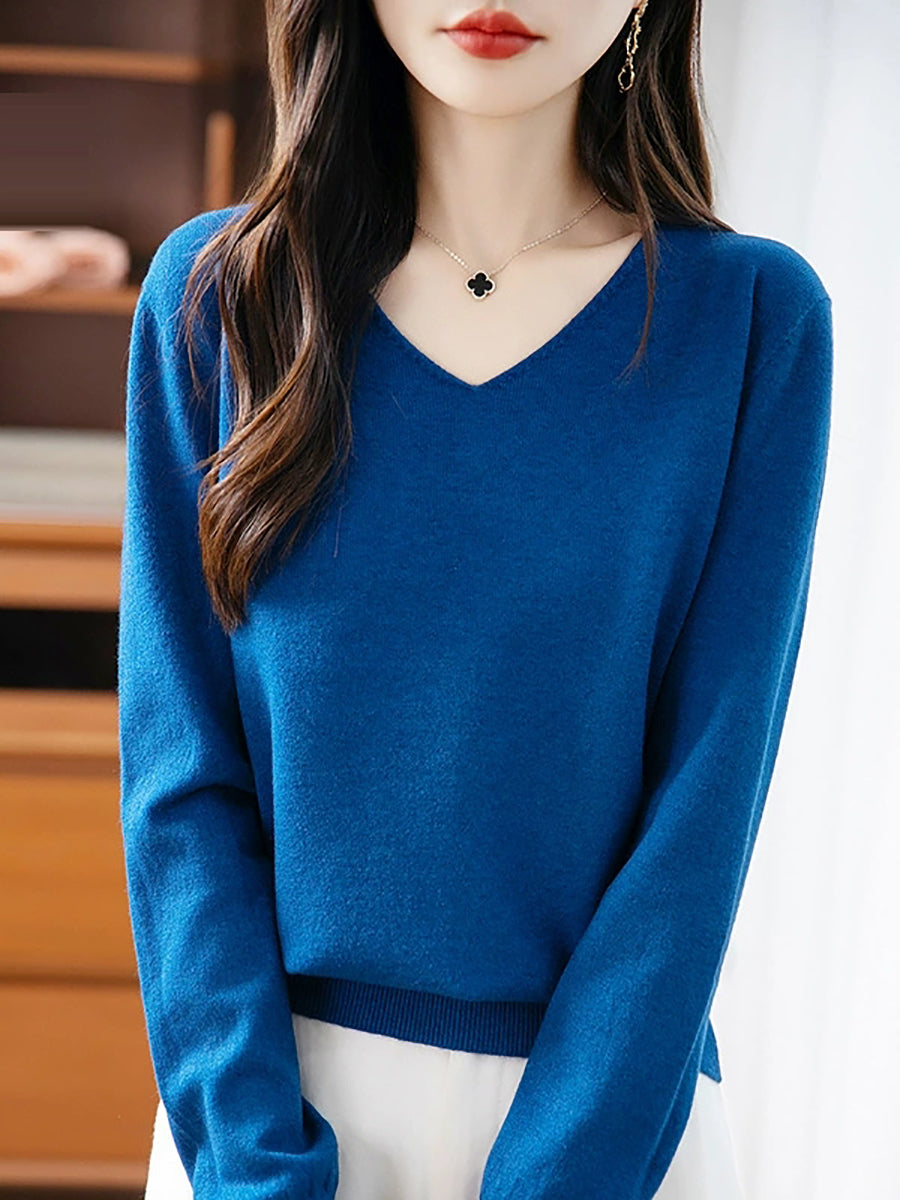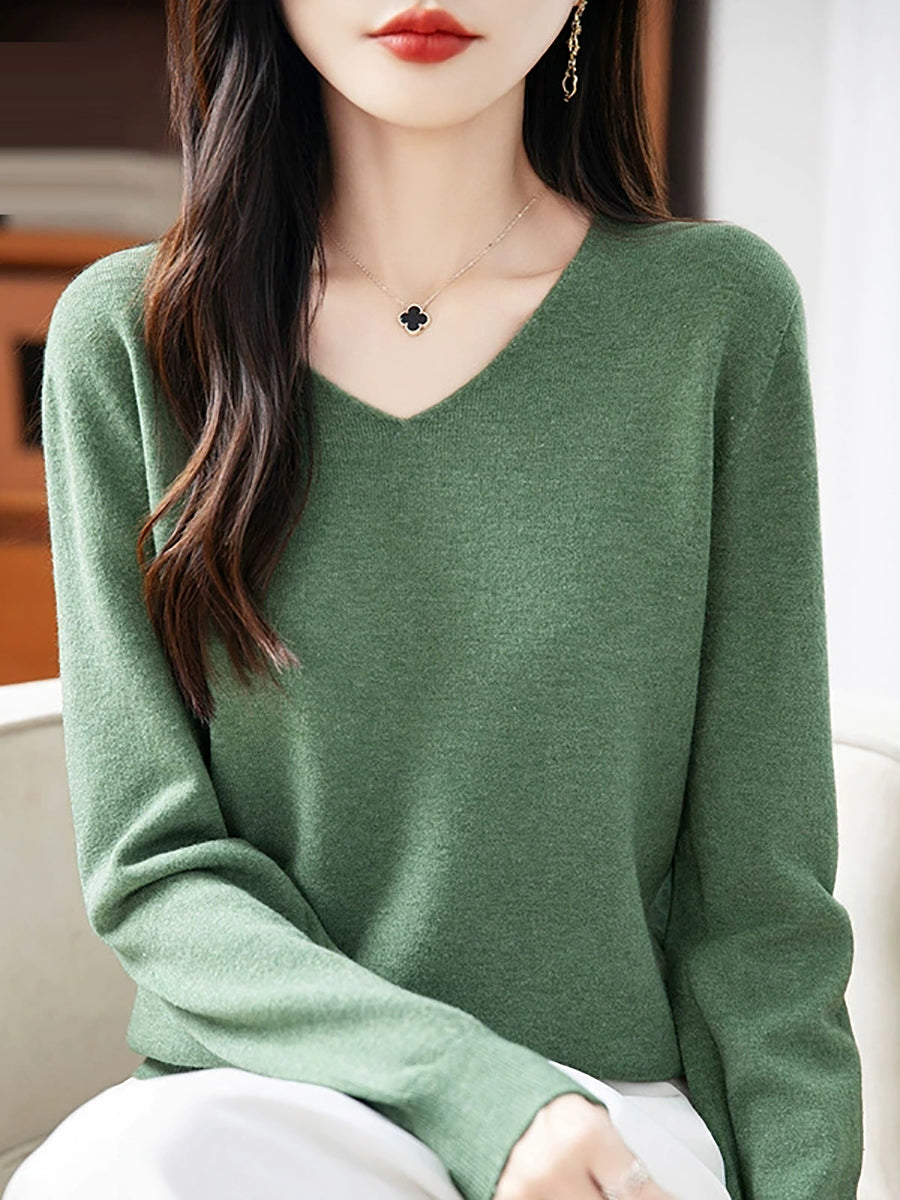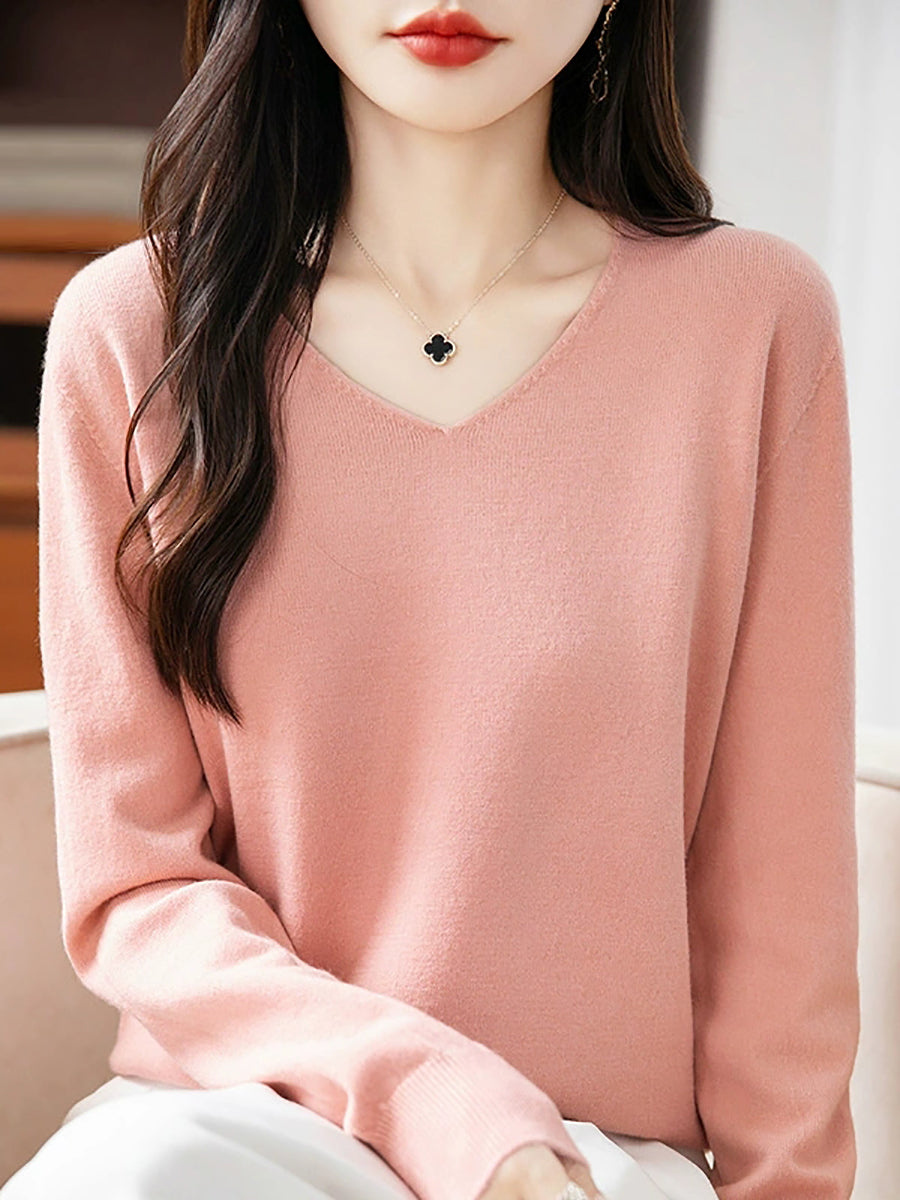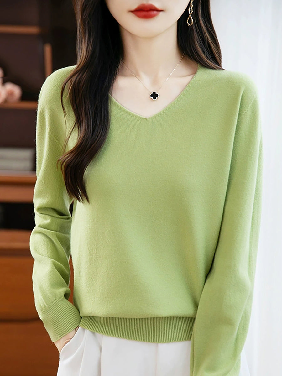 Ženski proljetni ležerni pulover s V-izrezom u čistim bojama